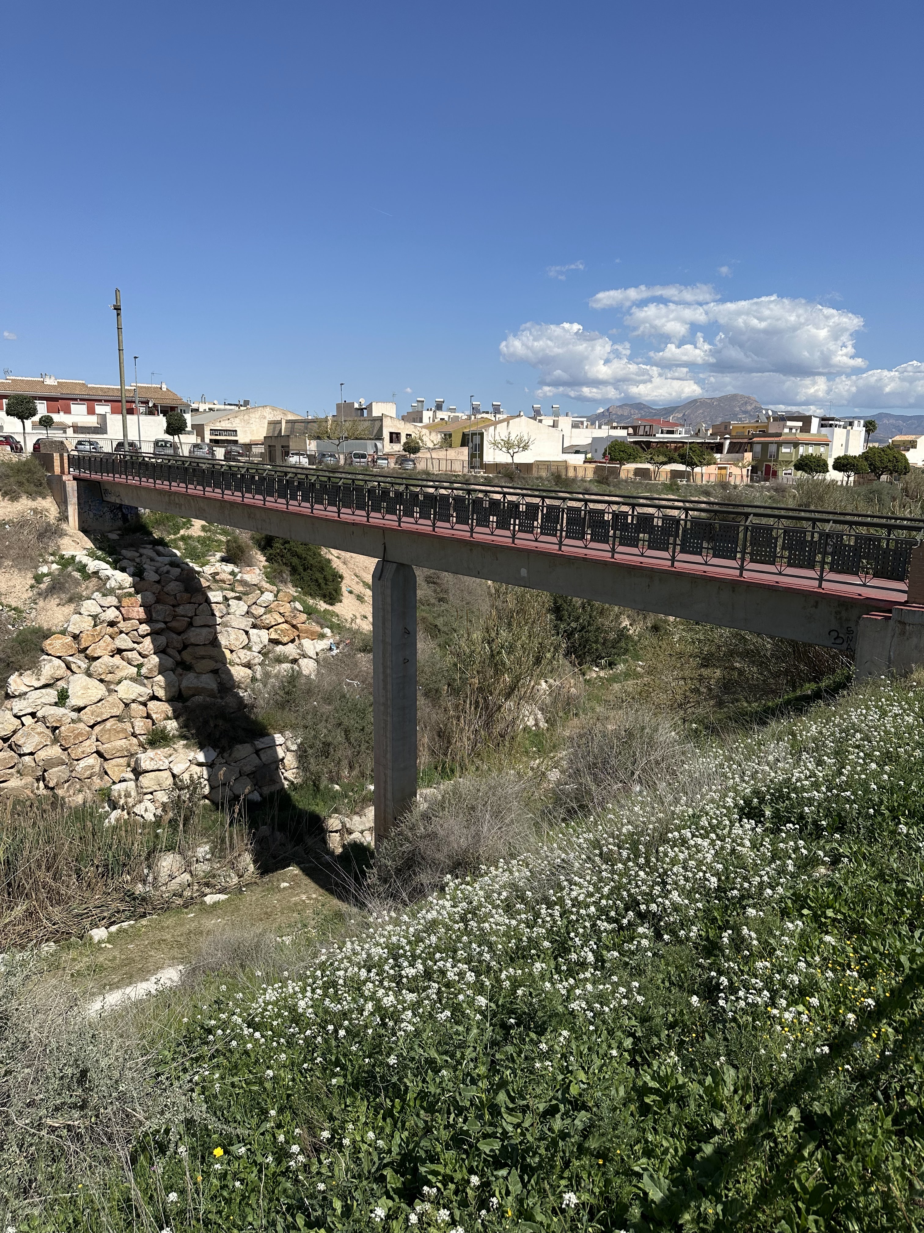 El camino Viejo de Hondón es el siguiente del recorrido, es la vía utilizada en la romería de la Virgen de las Nieves, patrona del municipio, celebrada en los años pares. La primera área de descanso da acceso a la senda cicloturista habilitada en la restauración ambiental del río Tarafa realizada por la Confederación Hidrográfica del Júcar. El itinerario continúa por esta senda hasta la segunda área de descanso junto al camino Sierra de Ors, volviendo al cauce al cruzar el camino del Tolomó Bajo. Destaca la Canal de Hierro (s.XIX), construida el año en que se inauguró la Torre Eiffel, en pleno esplendor del hierro como material constructivo. El itinerario sigue por la rambla, pasa el túnel de la carretera de Elche (CV-84) y llega al Hondo de Las Fuentes, lugar de reunión en fechas como el “Día de La Mona” y “La Jira”.