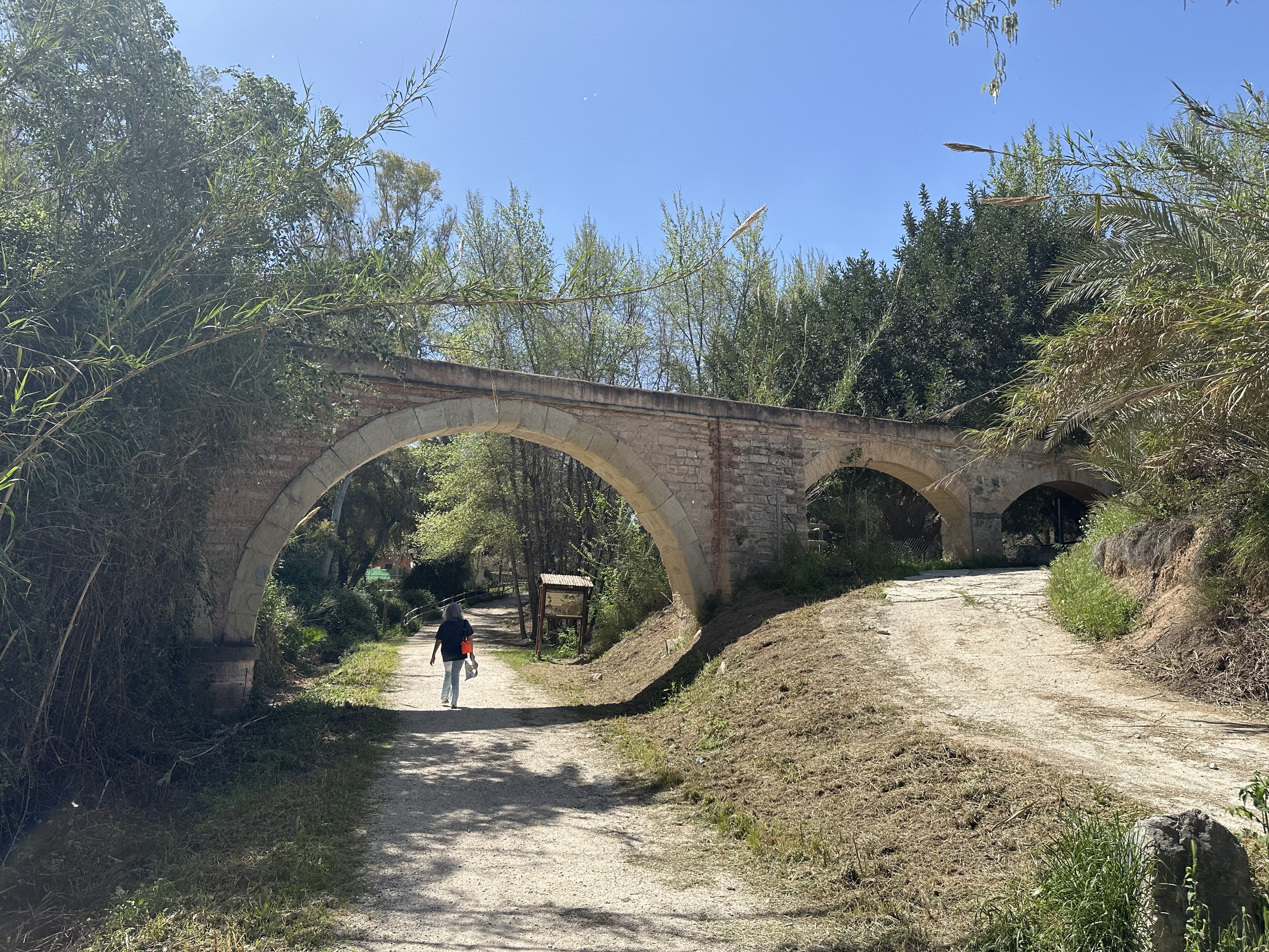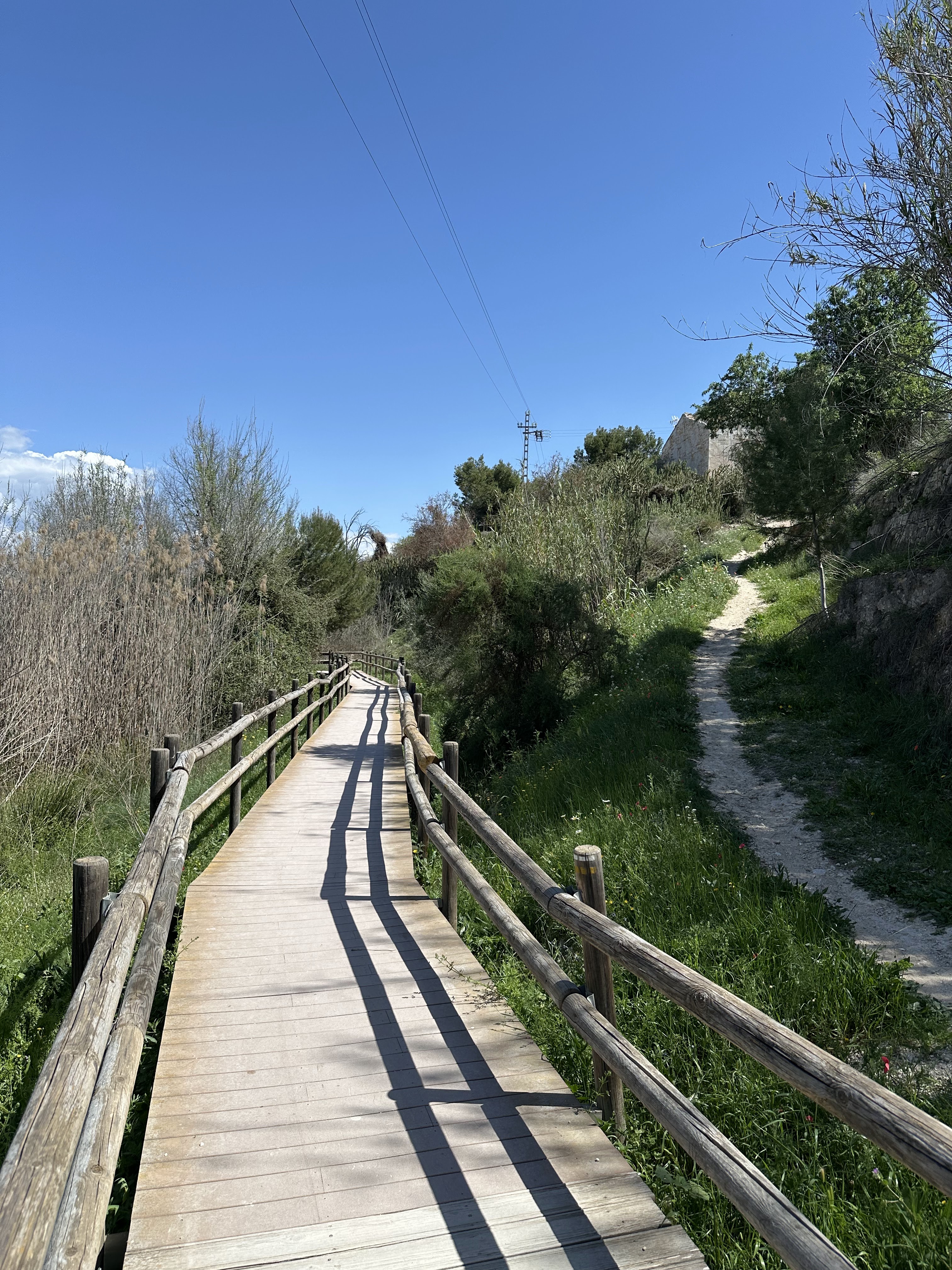 El recorrido sigue paralelo al río donde, aguas abajo de la depuradora de Aspe, se ubica la Rafa de Perceval (s. XIX), azud construido para aprovechar las aguas del río para riego. La Fuente de Barrenas destaca por ser origen del abastecimiento de agua potable a Elche a través de la conducción de agua de la que forman parte los puentes de los Cuatro y Cinco Ojos (s. XVIII). El tramo final, hasta el paraje de Quincoces, aún presenta algunas ruinas de los molinos harineros que existían en el lugar, entre los que destaca el de Meseguera. Aquí finaliza el sendero de pequeño recorrido, al alcanzar el camino de Quincoces.»