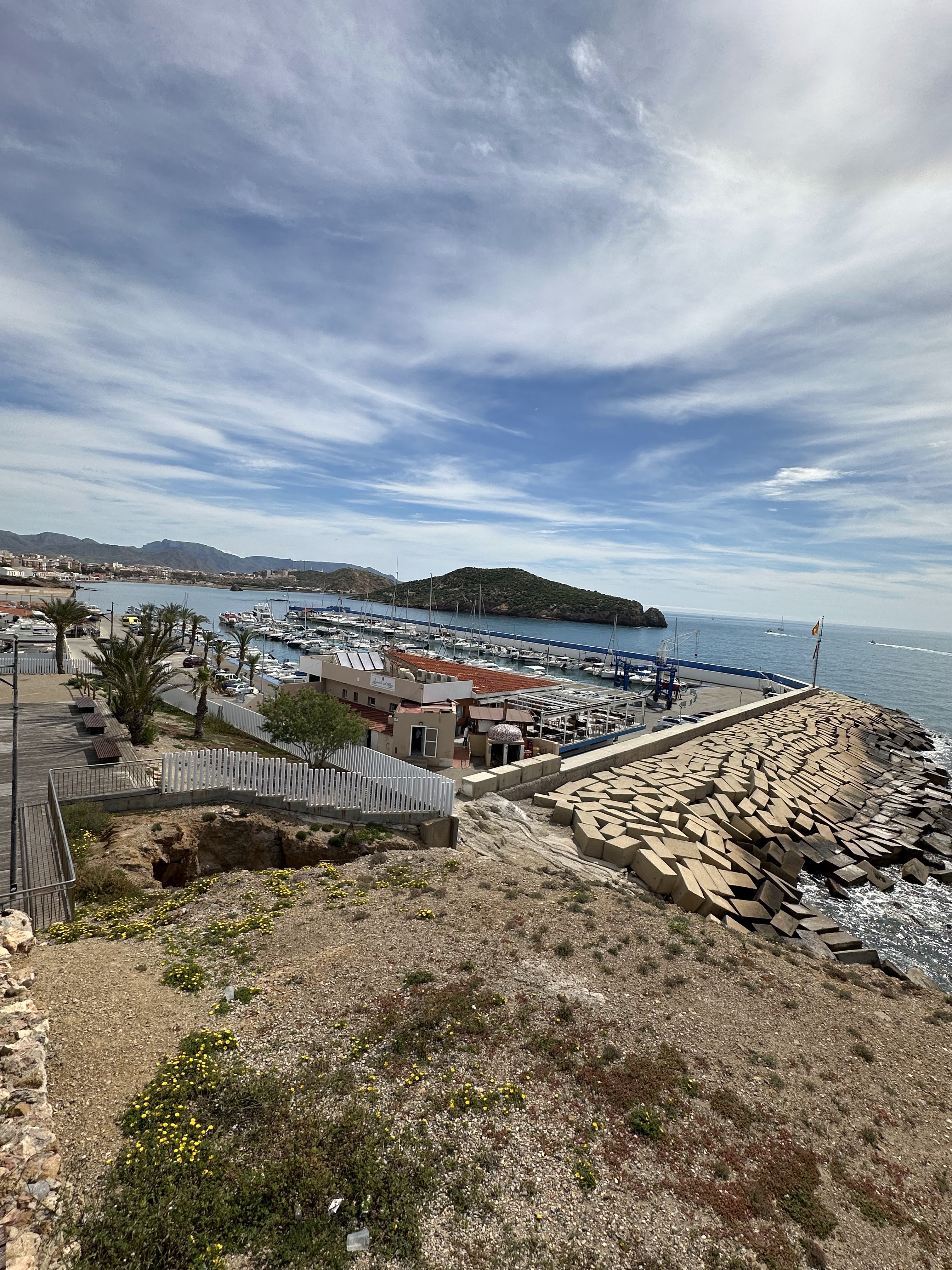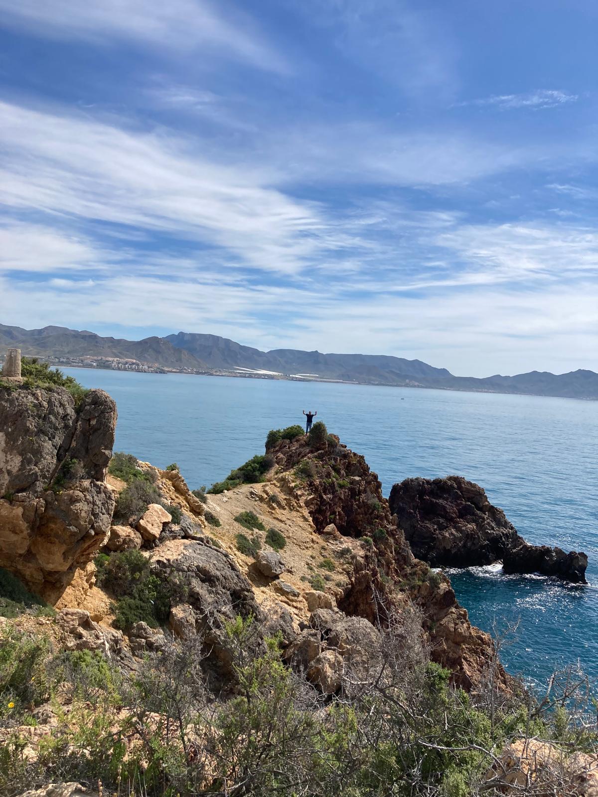 Aparcados en la calle Argentina y tras atravesar una parte de la playa de la Reya y entre la playa de la Pava también, se encuentra el Pico del Águila (Mirador del Cabezo de Gavilán):