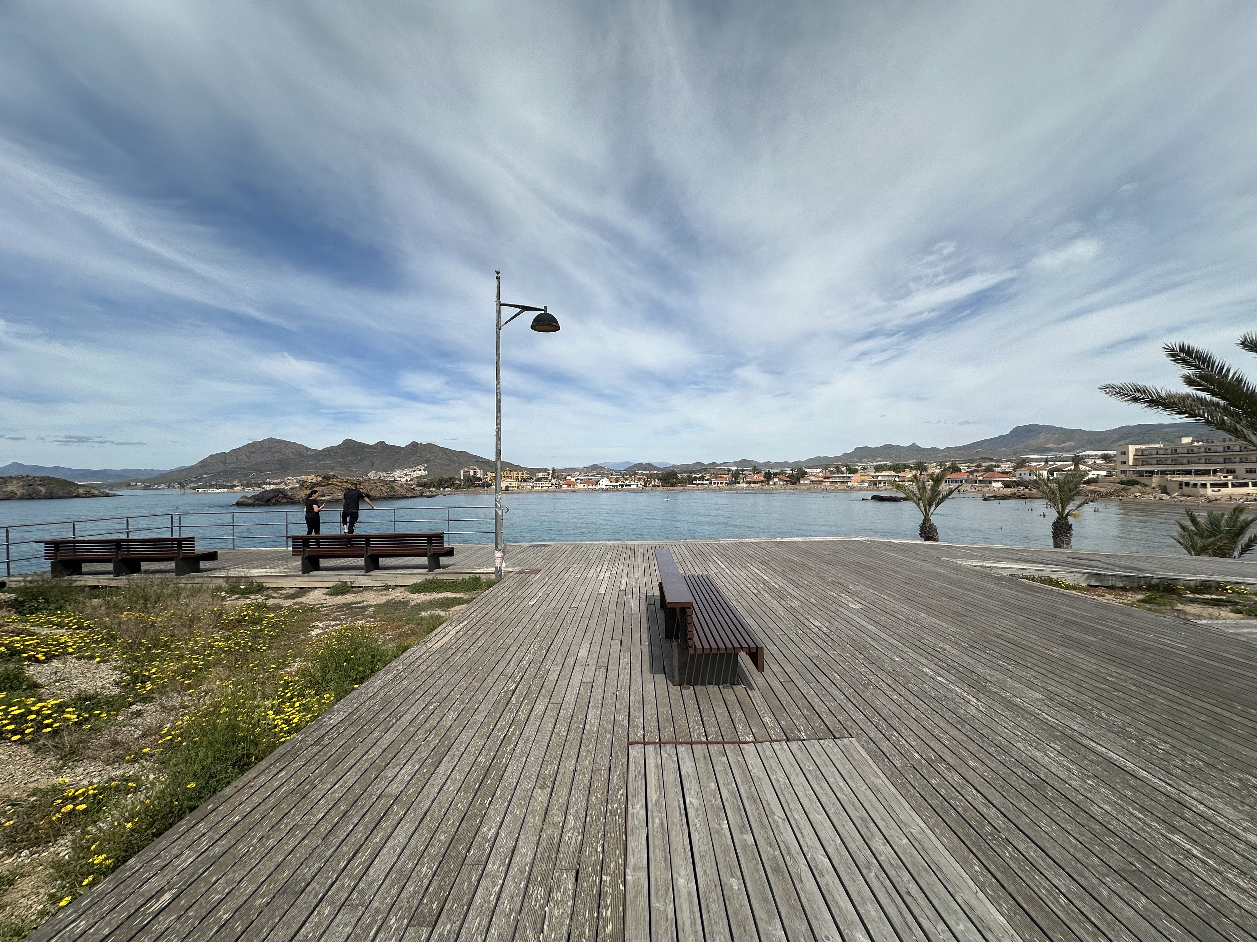 «Tras unos cuantos pasos por el bonito paseo Agustín López Cano, llegamos a una estructura de madera que conforma este mirador donde podremos sentarnos a contemplar el mar o subir a lo más alto desde donde podremos ver el club náutico, la playa de la Isla, la de la Reya o simplemente perder nuestra vista en el mar contemplando el horizonte.