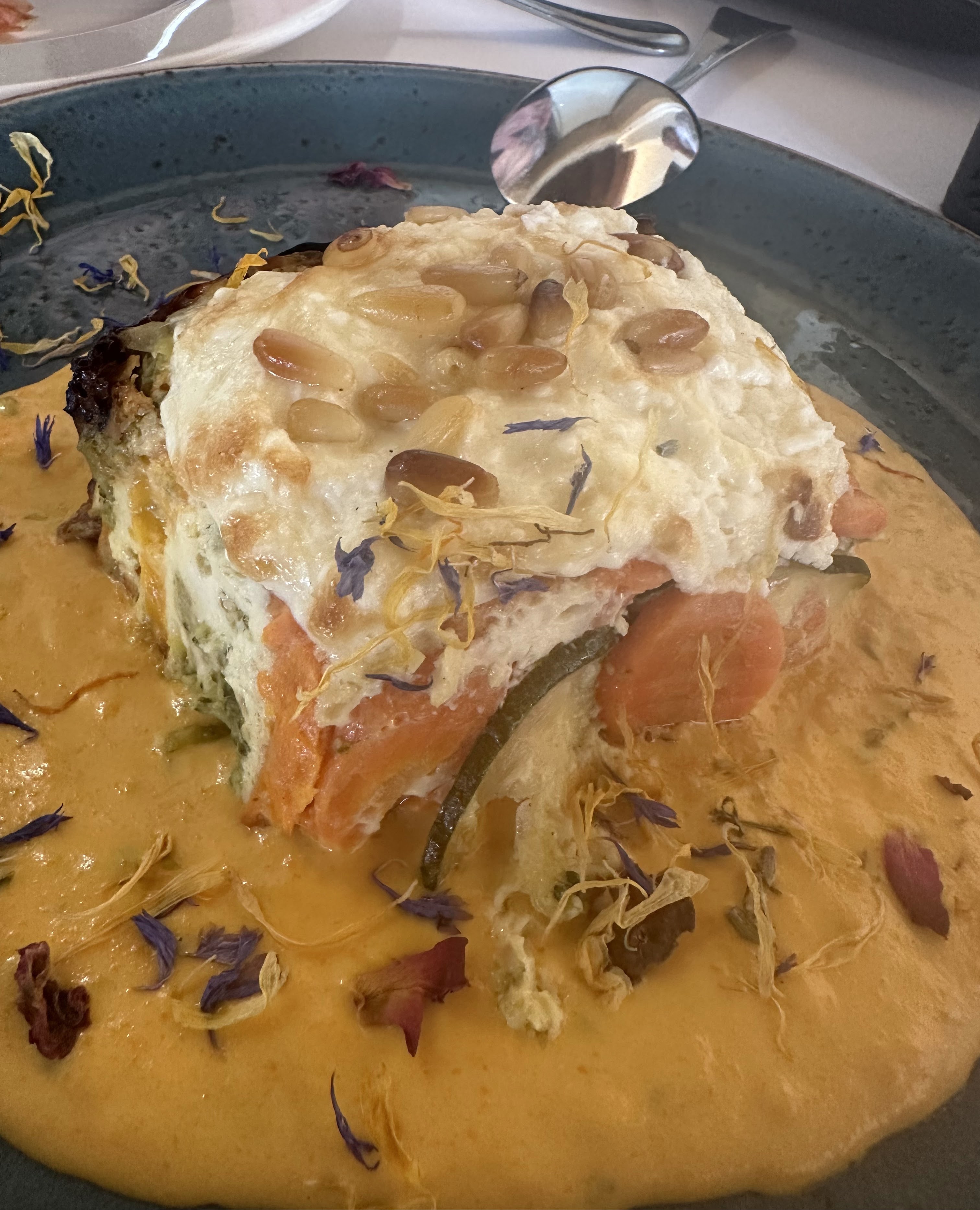 Pastel de verduras estilo la Siesta, suave y muy bueno también. Una tortita de camarón, bien de sabor pero habiendo probado las de Cádiz tiene mucho que mejorar, claro, jeje.