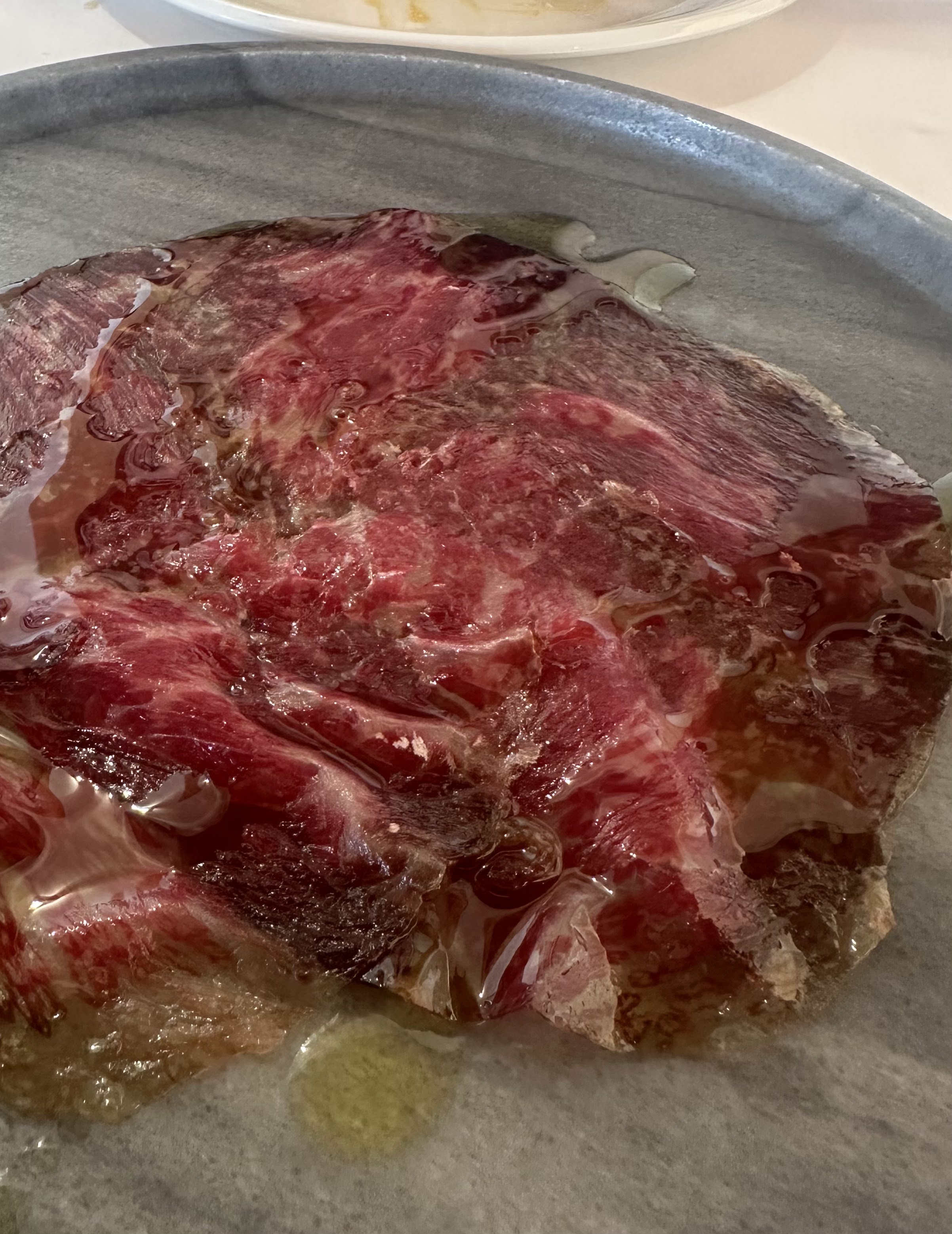 ½ ración de cecina de Waygu japonés; exquisita. Ya habíamos probado alguna así en rest.JotaEle de Murcia.