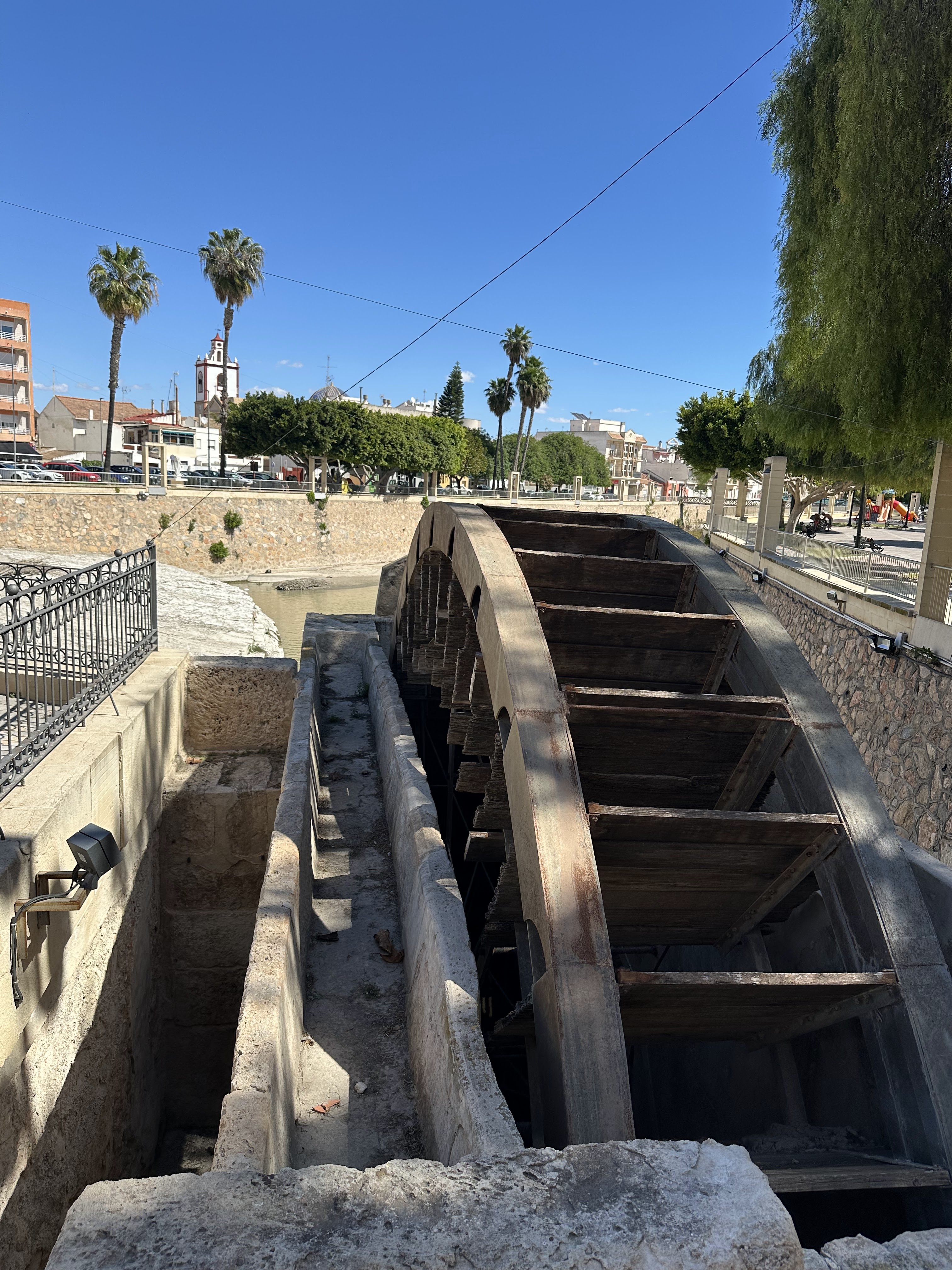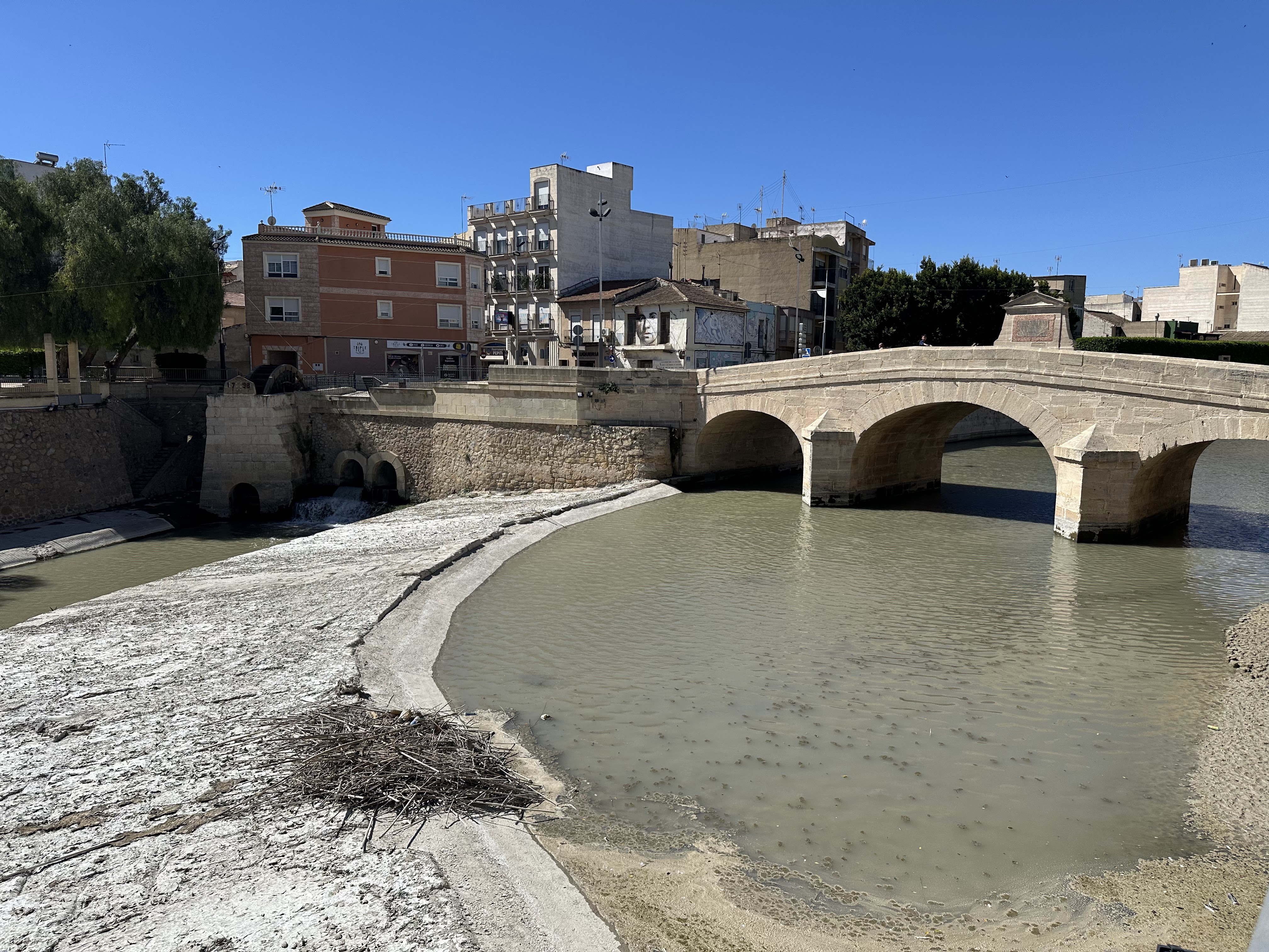 Justo al otro lado se puede contemplar el azud y la noria de Rojales…hoy estaba parada.
