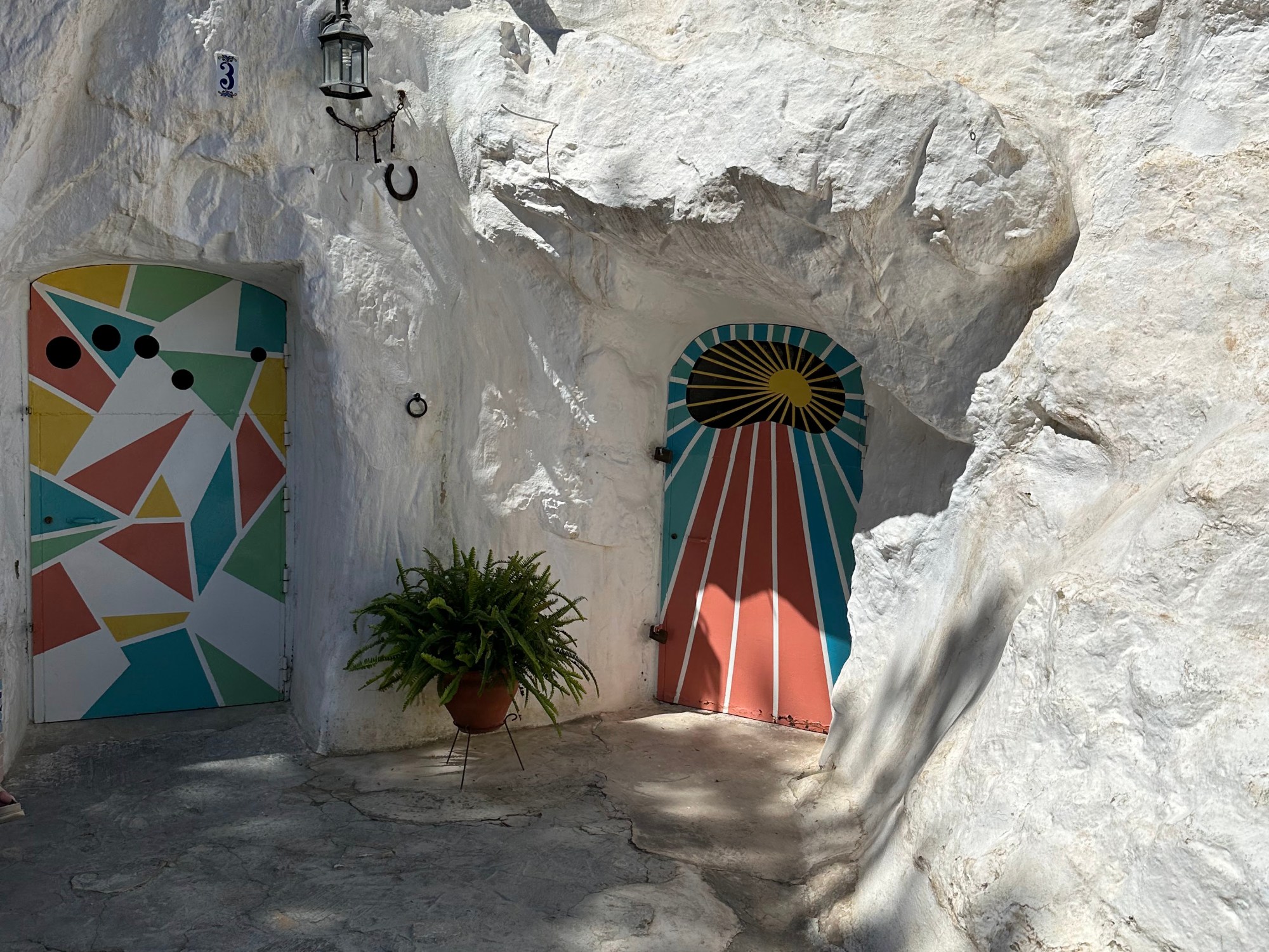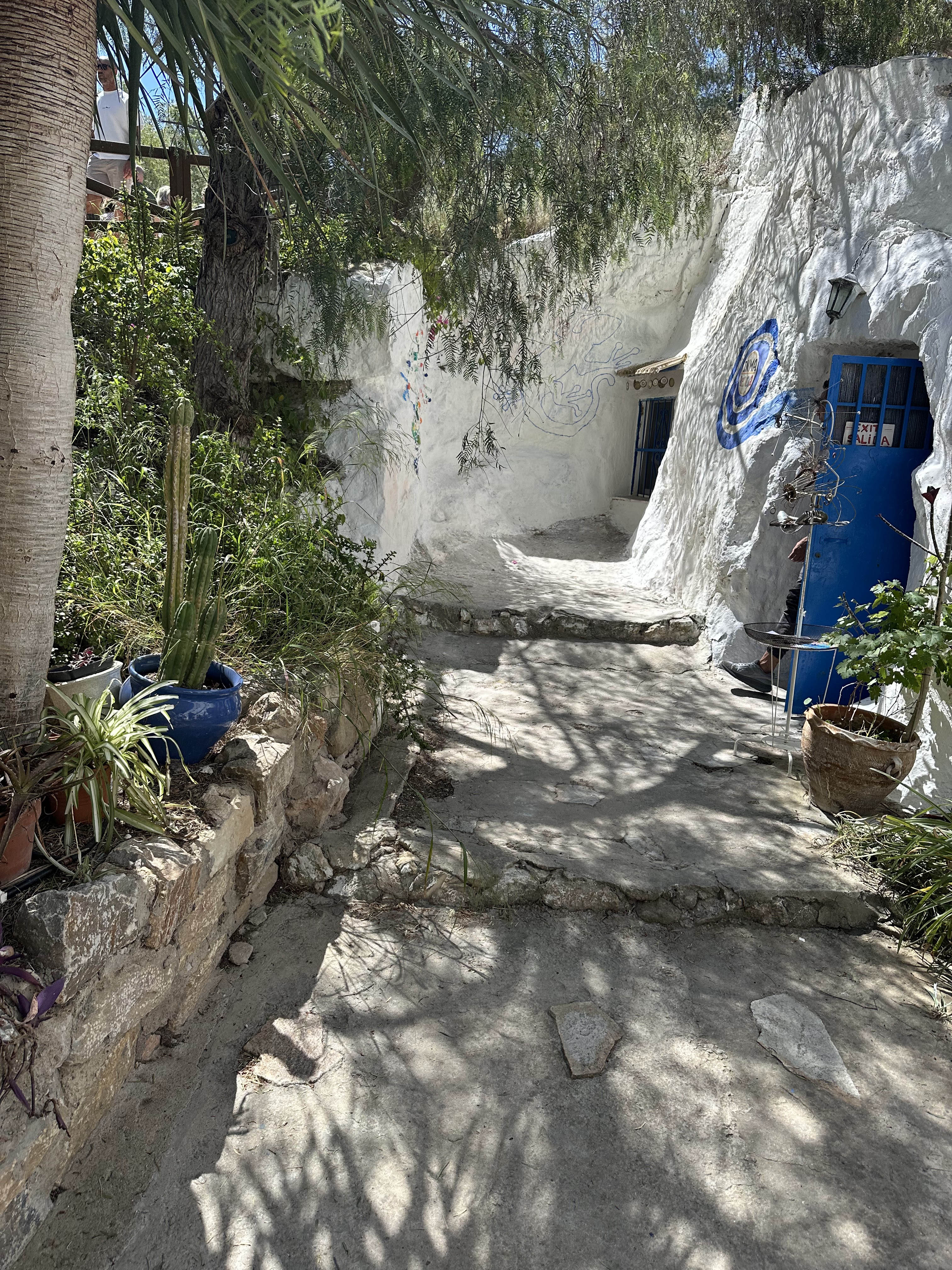 En vez de acceder a las Cuevas del Rodeo por la calle del mismo nombre…la de las escaleras de madera que veréis en cuanto entréis, accedimos por la calle Rodeo donde está dicha casa y rodeamos/vimos en sentido «contrario» las cuevas, el montaje en ellas y fuera de ellas que hoy había.