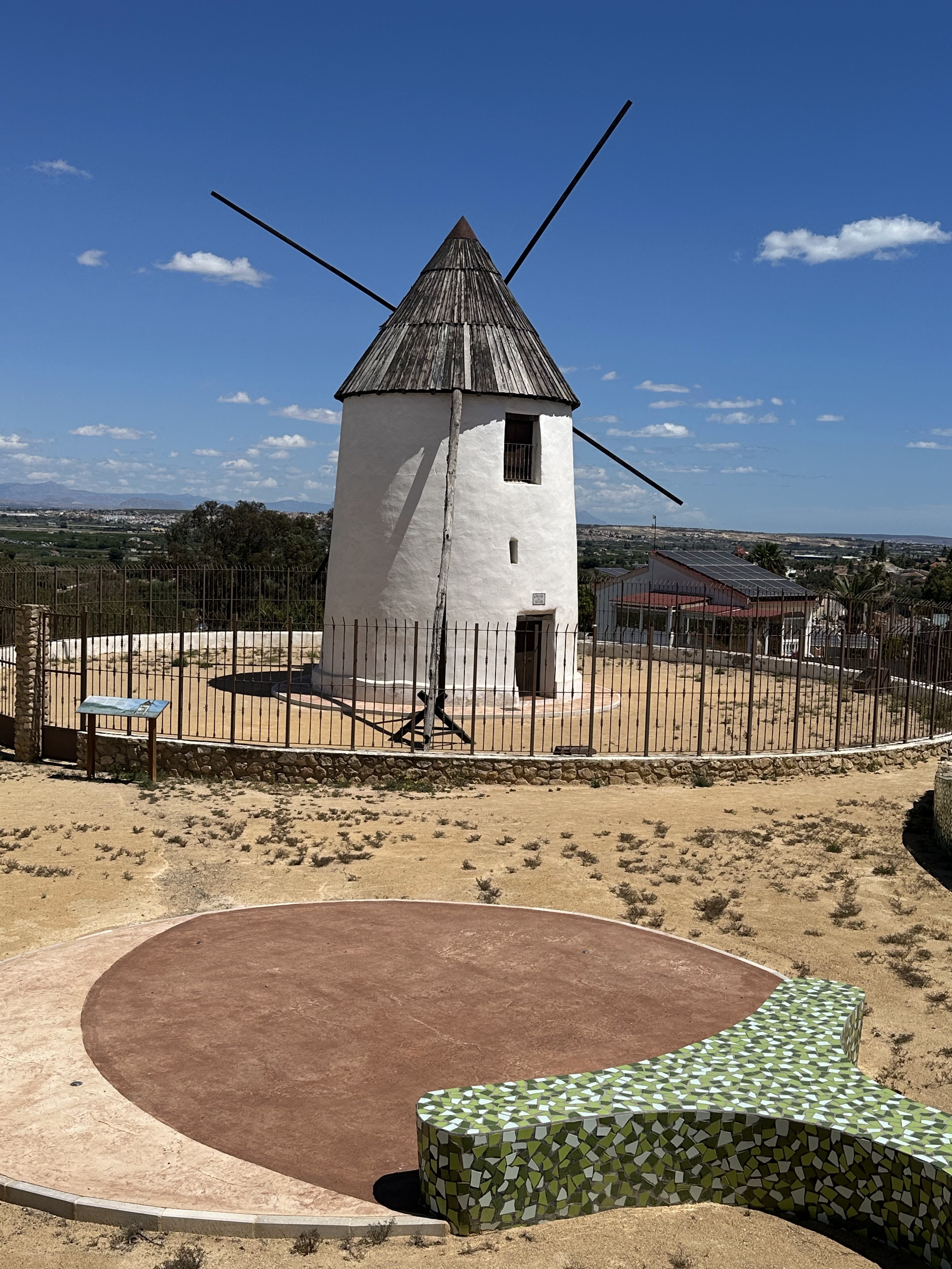 Terminado nuestro recorrido por las cuevas y más breve por el pueblo, cogimos el coche y subimos (Paseo de Bo Astrom) a ver el Molino de Viento. (foto más abajo)