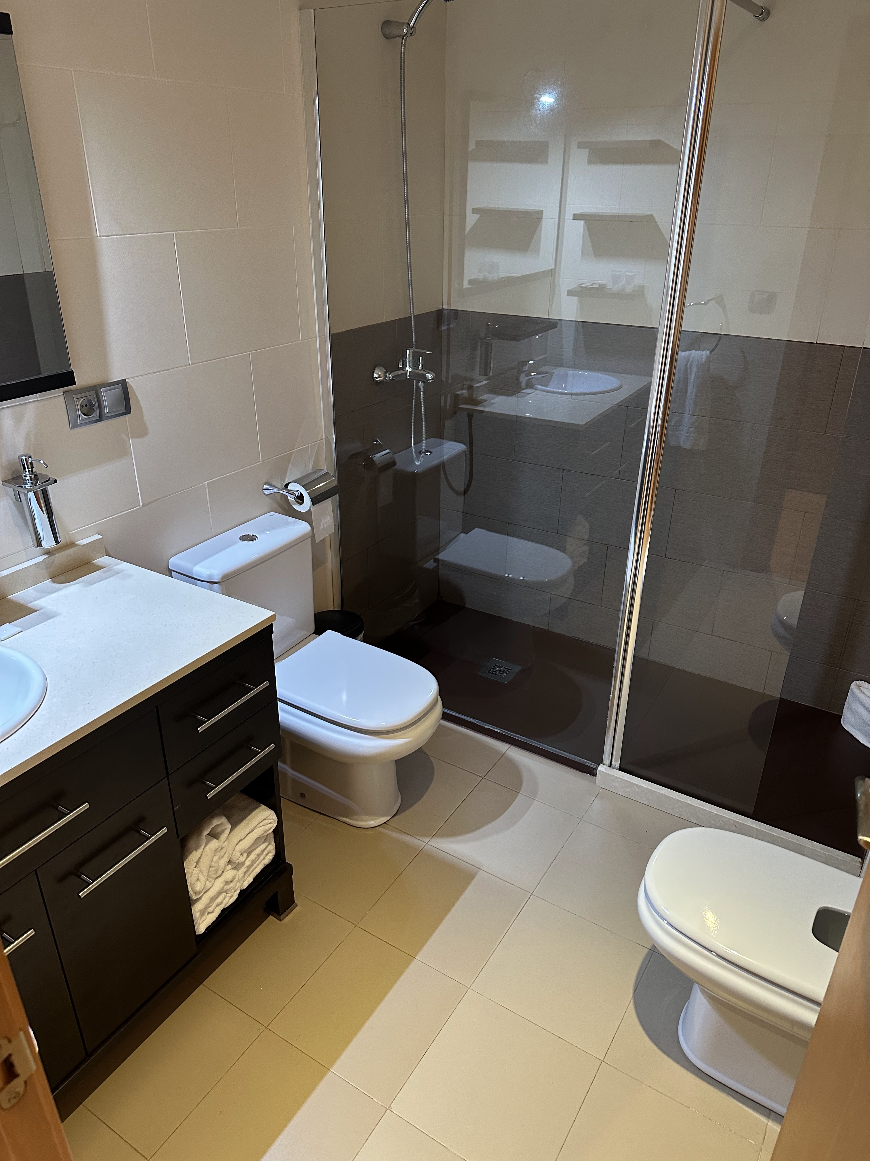 Lo más destacable es la buena situación del apartamento y en cuanto a tamaño, está bien para alojarse 4 personas. El nuestro estaba en la 2a.planta (el número nueve) y necesita urgente un cambio de colchón, al menos en una de las dos habitaciones se hundía hacia el centro de la cama y no se pudo descansar bien; asimismo, los somieres de ambas habitaciones hacían ruido. La televisión al encenderla y durante bastante tiempo salía imagen con molestas rayas horizontales de arriba a abajo. La ubicación lateral de ésta (TV) y no frente al sofá (éste por cierto, no muy cómodo tampoco) no es lo más práctico para verla.