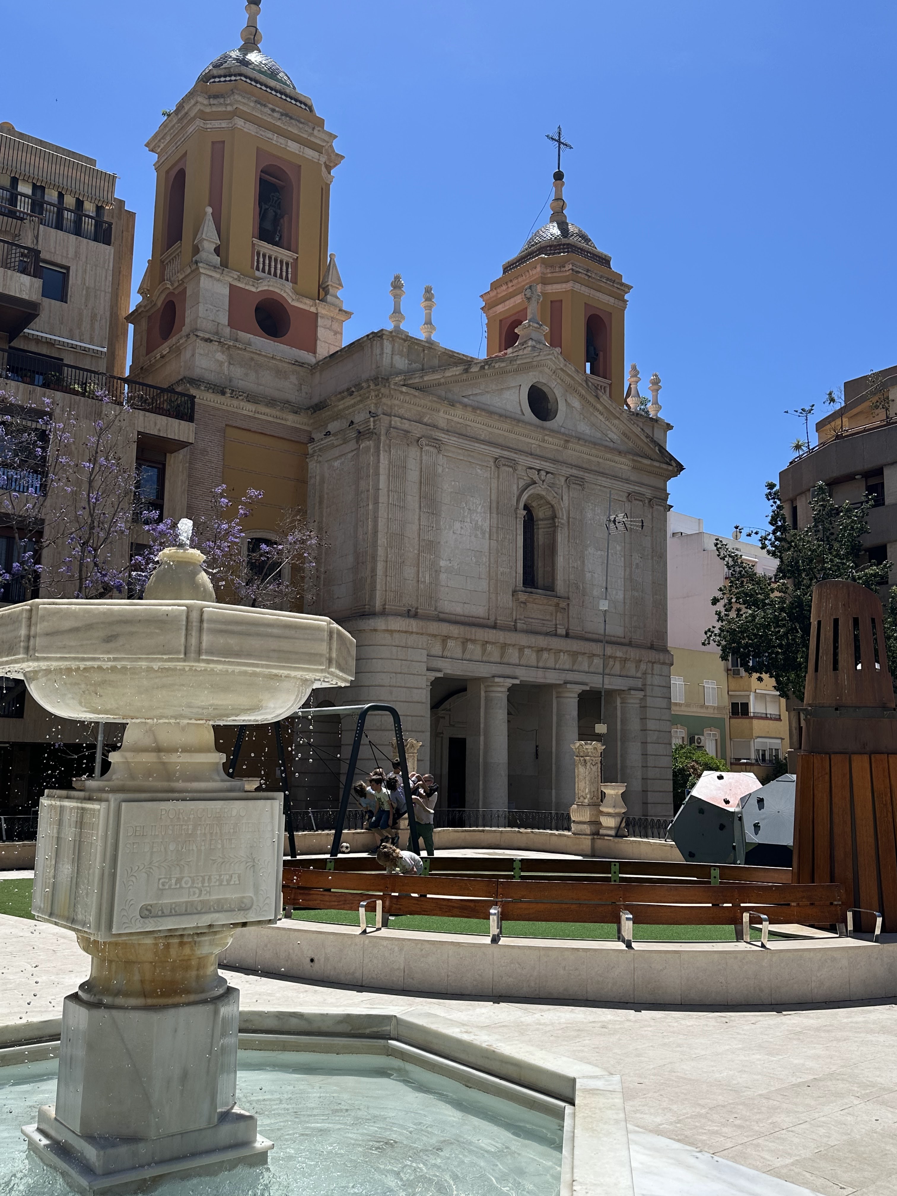 Aunque algo «alejado» del apto. (800 m/10 min.andando), bajamos por la calle Real hasta el Parque Nicolás Salmerón; bonita fachada la de la Casa Ferrera en la misma esquina ambas calles…. y a desayunar a La Favorita. https://grupolapita.es/la-favorita/