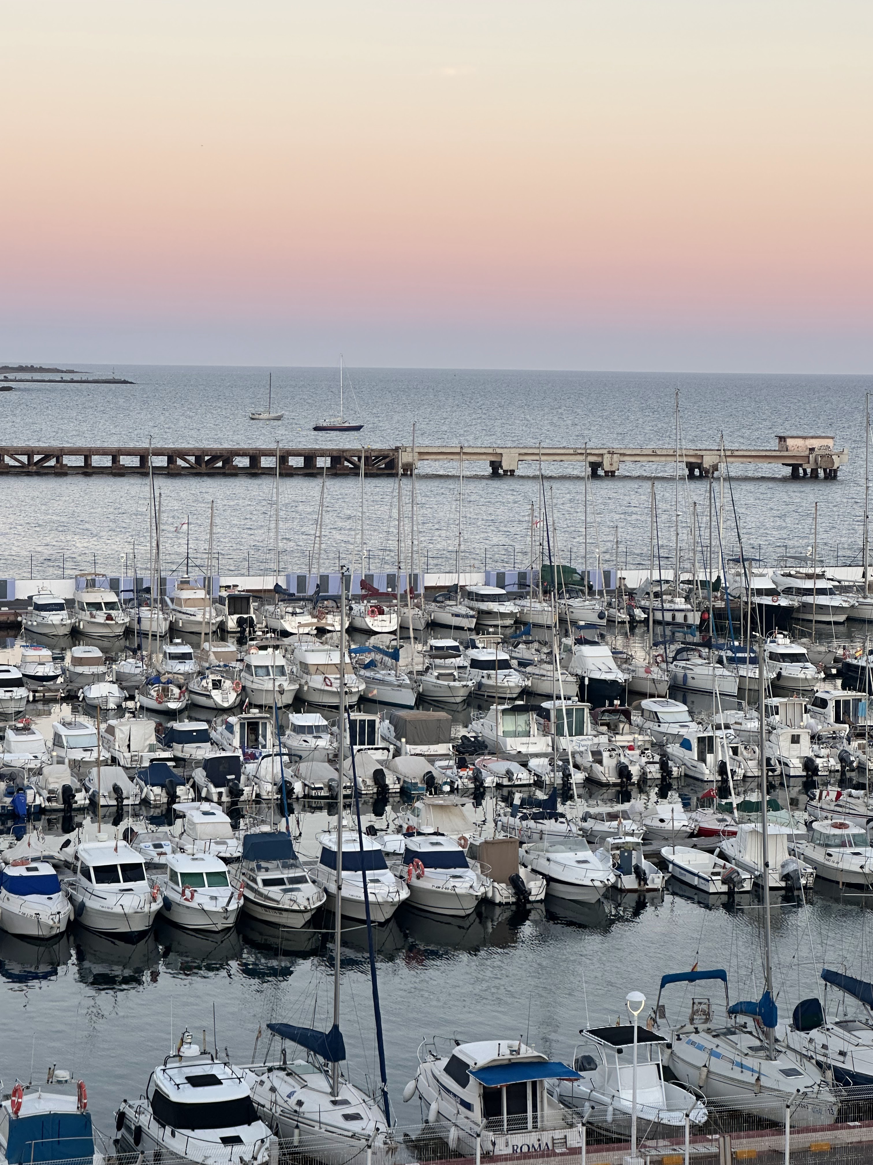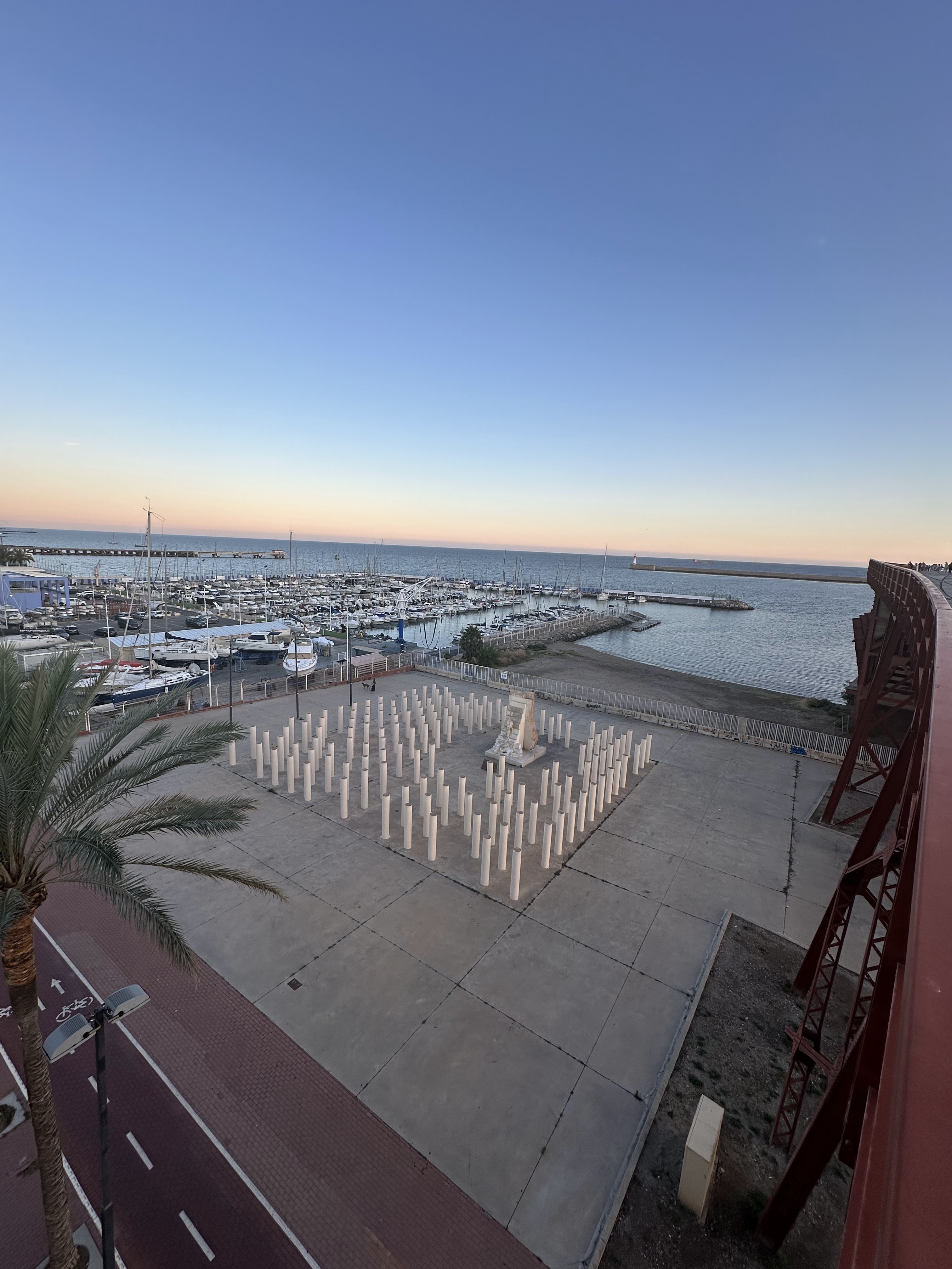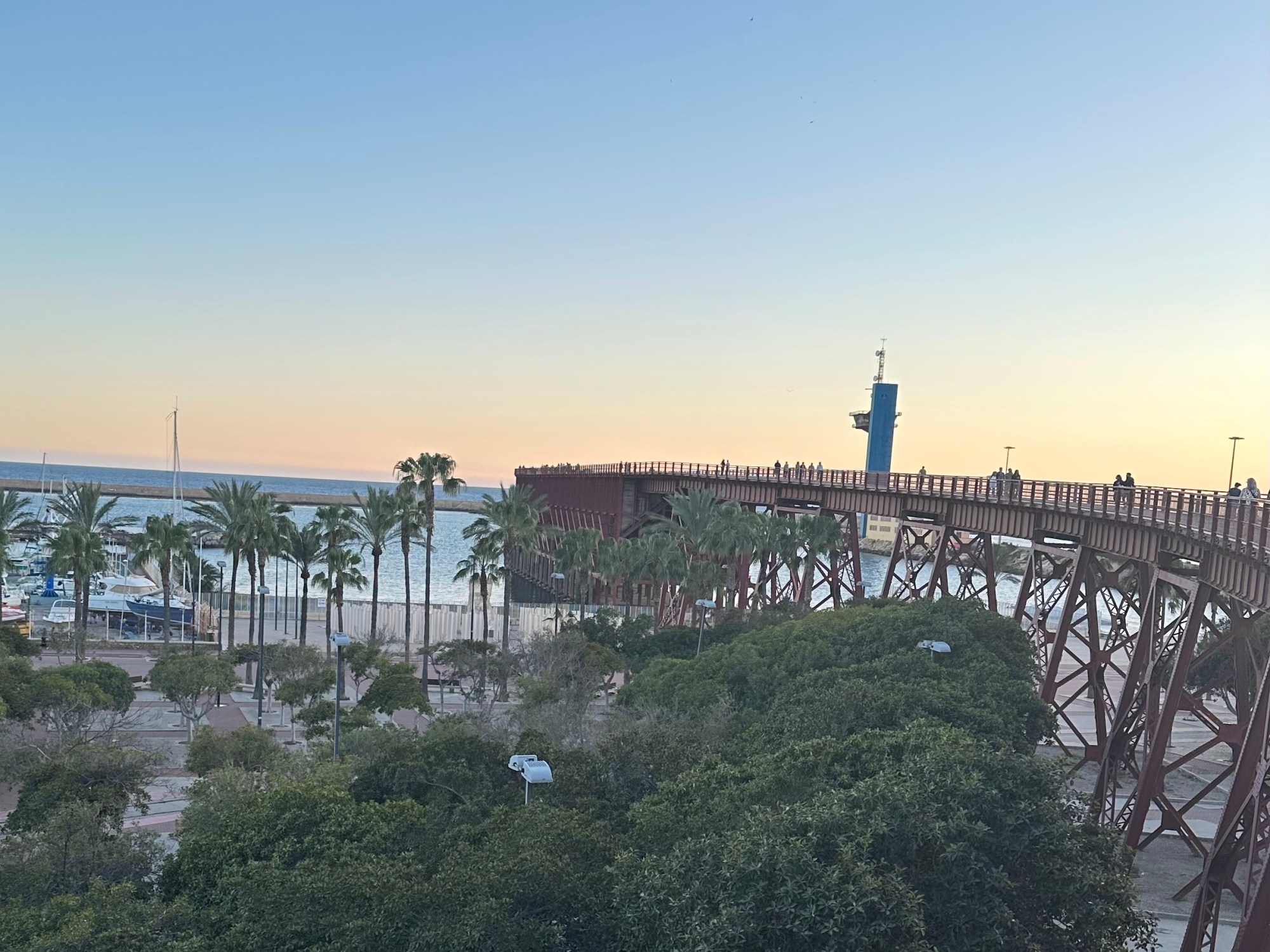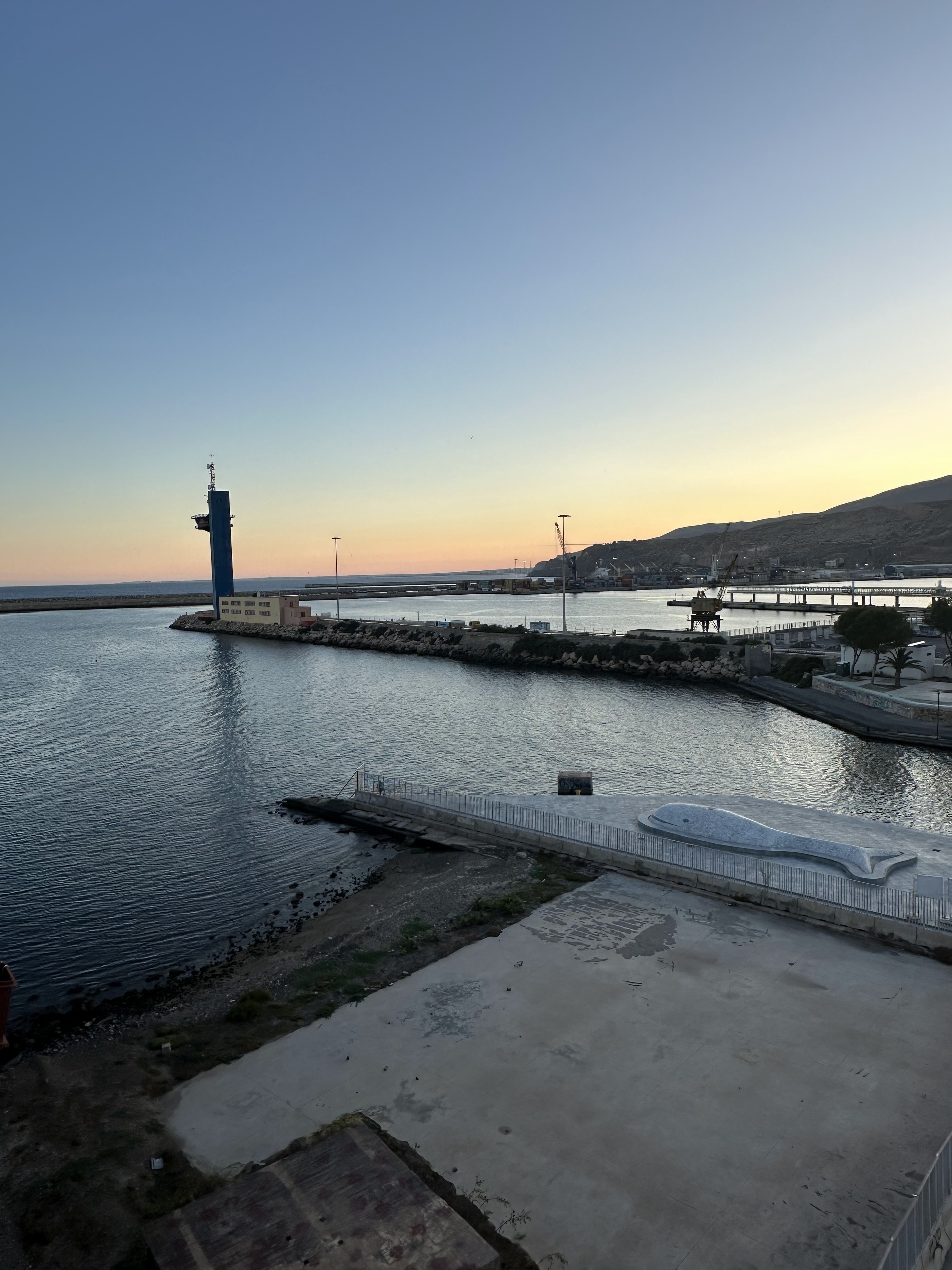 Toca descansar un poco y salimos con idea de ver la puesta de sol desde el mar, exactamente en la plataforma de El Cable Inglés, junto a la playa y parque Las Almadrabillas.