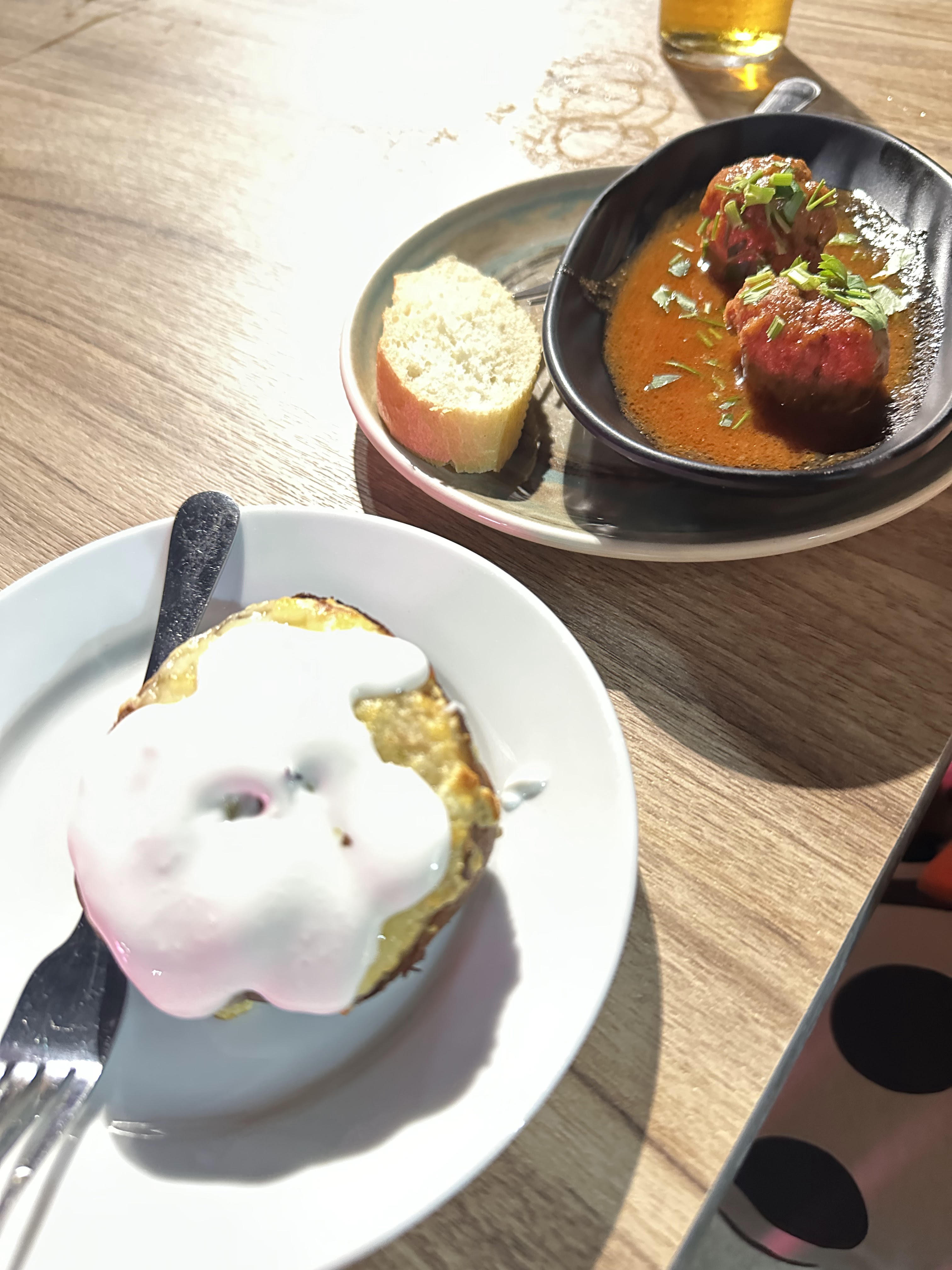 A parte pedimos fuera de las tapas, un crèpe relleno de carne con arroz (normal); phenovani khachapuri (relleno de queso-bueno ) y una ración de surtido de carne (p/2 personas-normal).