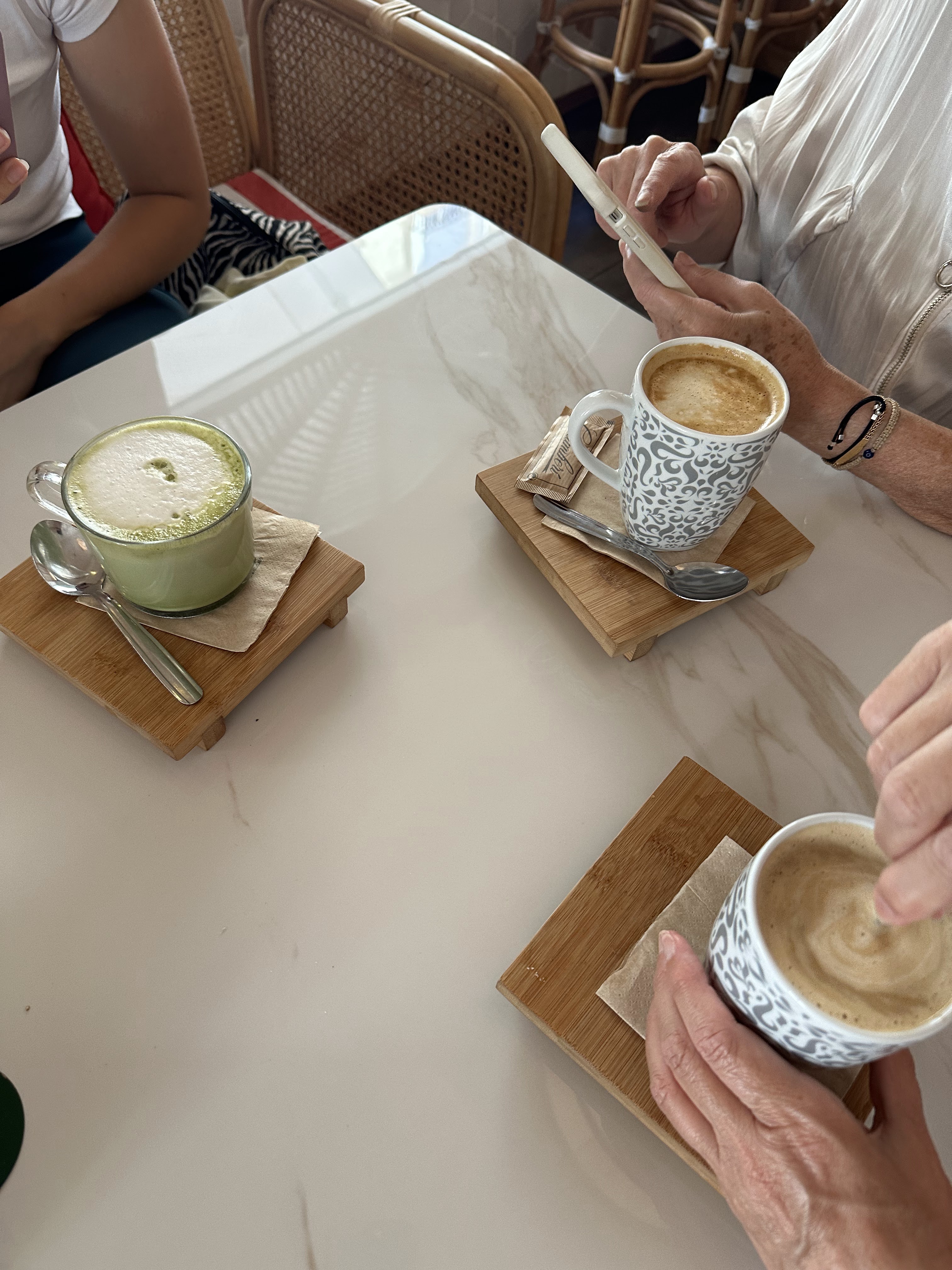 Cafés con leche, croisant rellenos, bagel idem, y tostadas básicamente fue lo que tomamos.