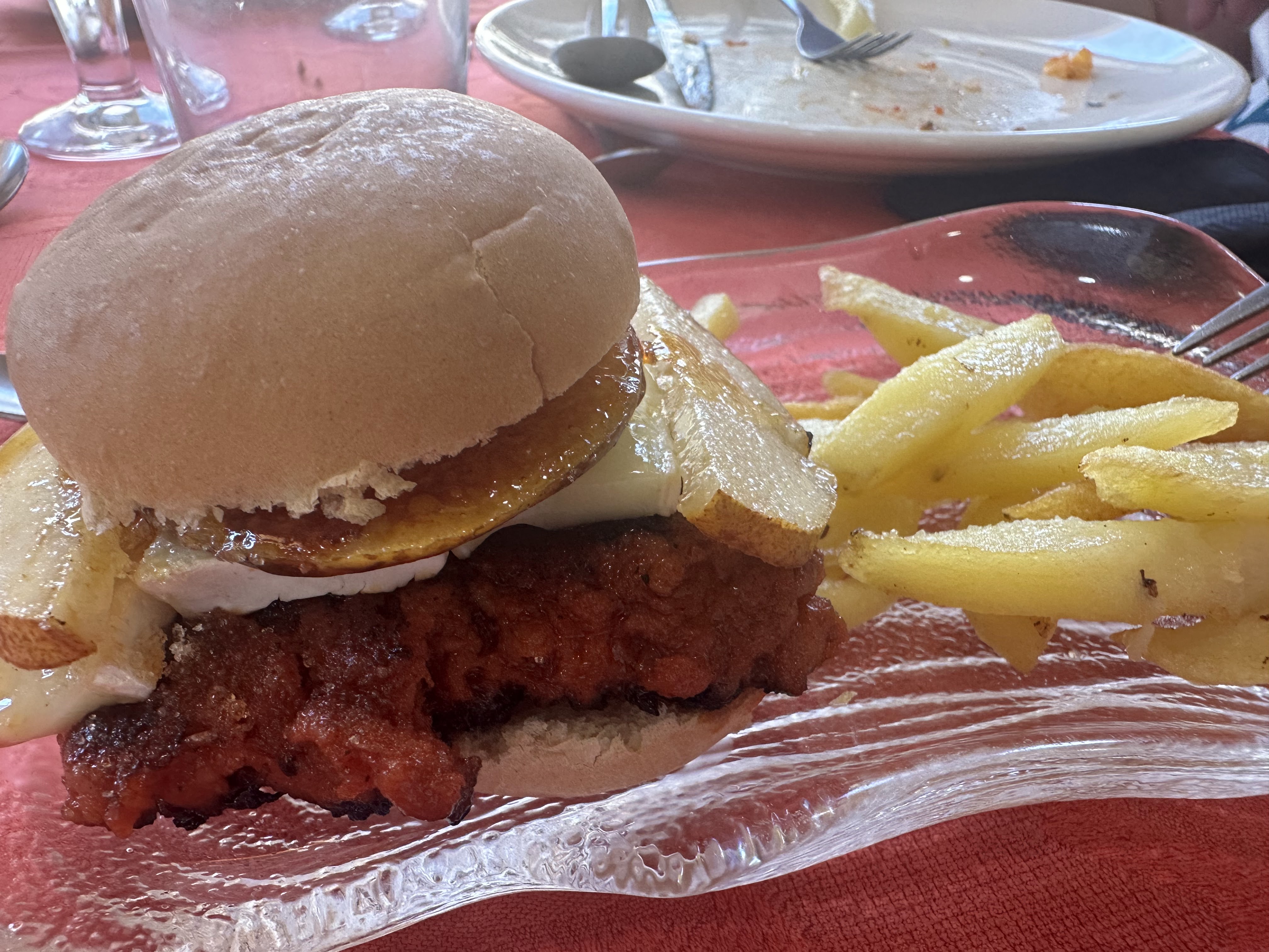 1 hamburguesita de chorizo casero, briè y pera caramelizada