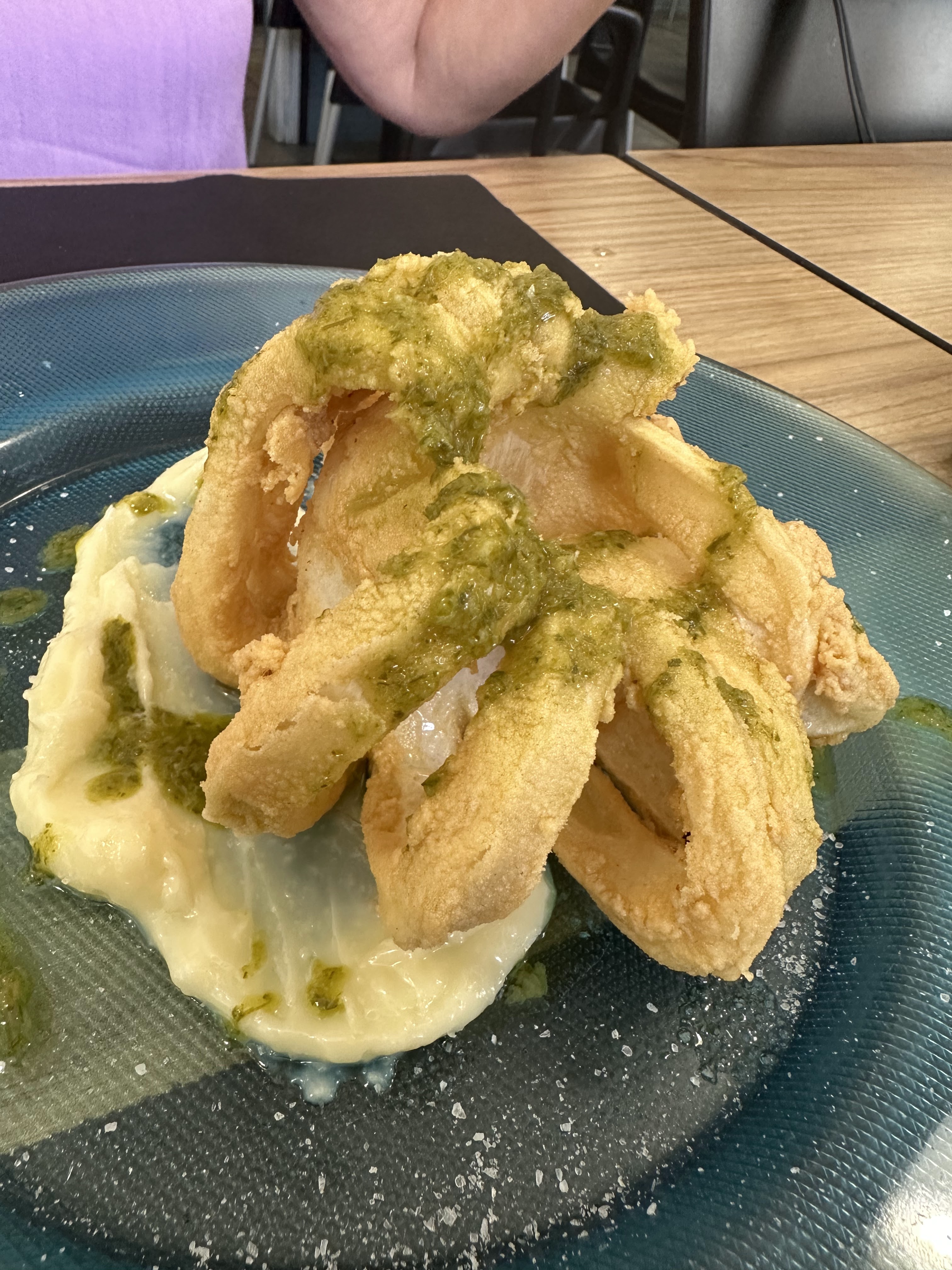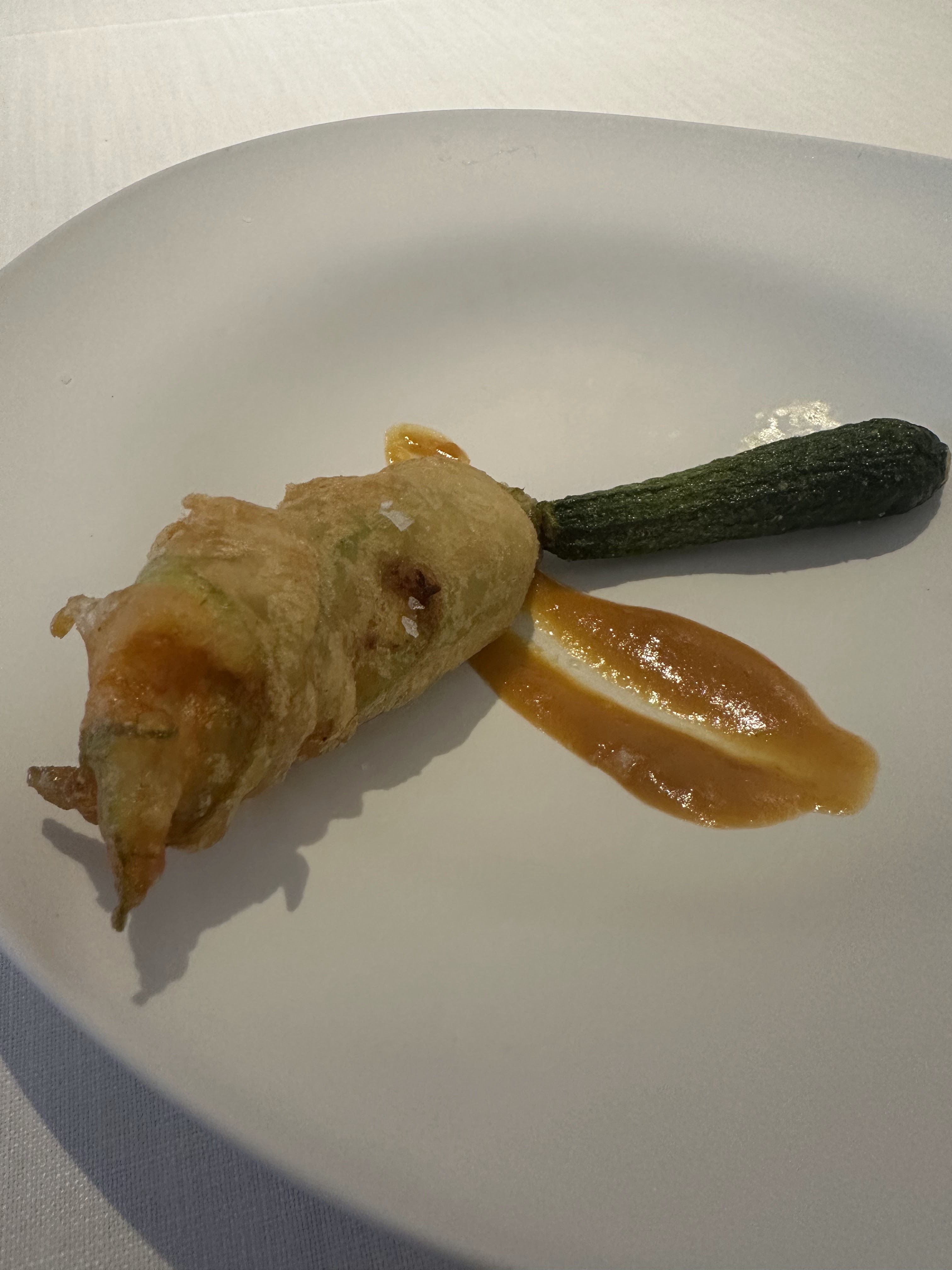 -Flor de calabacín rellena de calamar