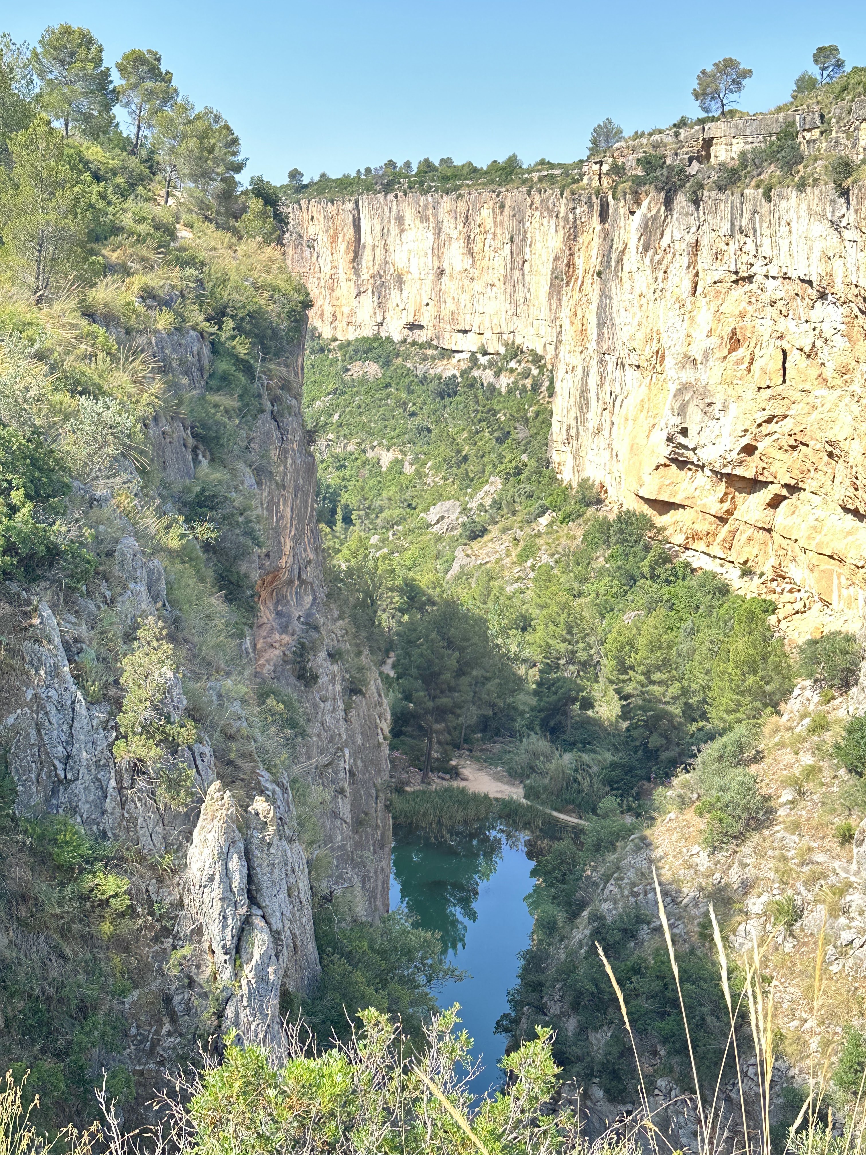A medida que vayamos caminando y dejando atrás el núcleo urbano nos encontraremos con una perspectiva que nos dejará asombrados, El Cañón del Turia. Paredes rectas formadas por la erosión del río. En este punto se pueden ver las numerosas vías y zonas de escalada que hay en Chulilla, una de las mejores zonas de escalada de la Comunidad Valenciana.