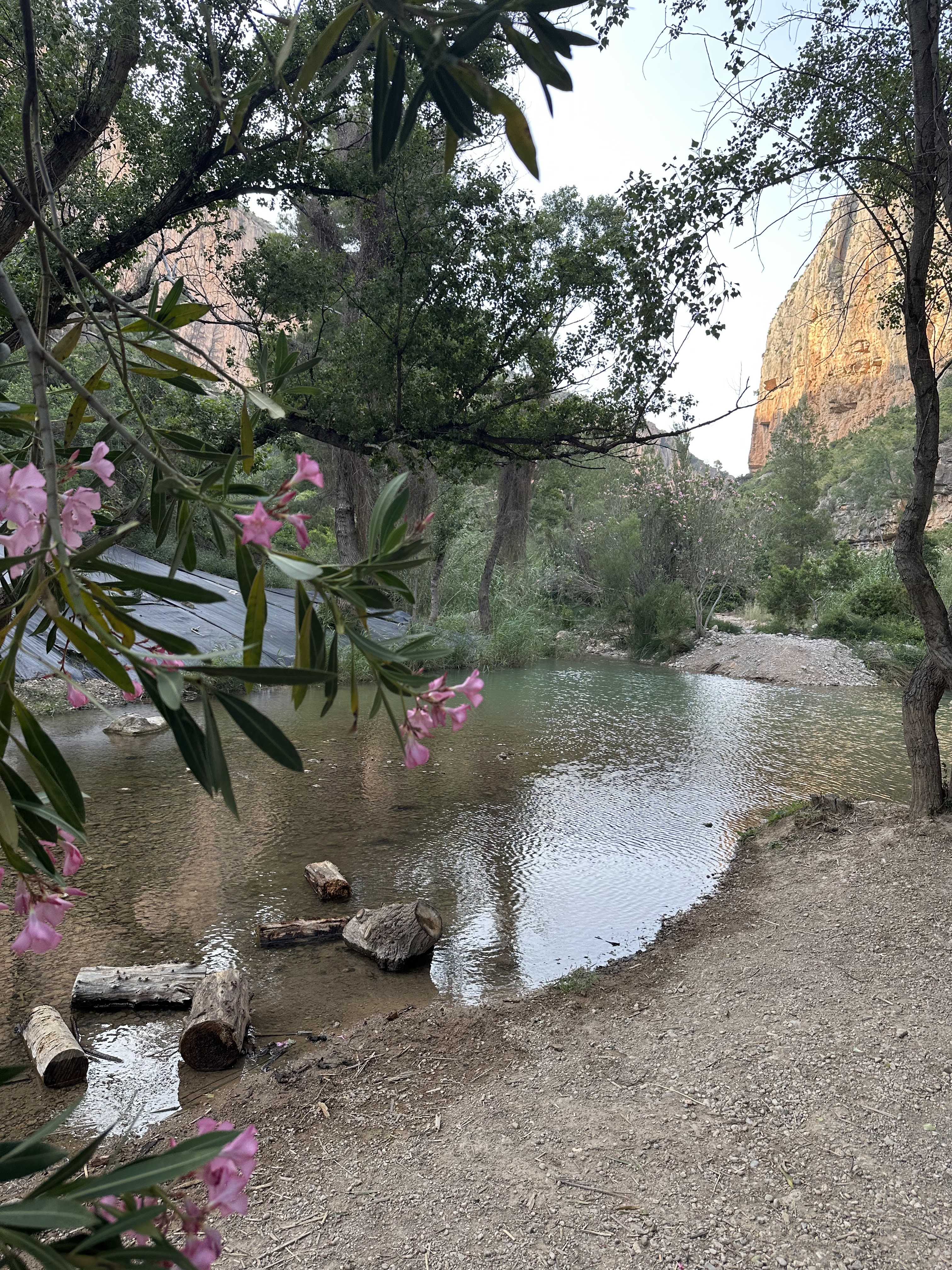 De vuelta a nuestro punto de partida la imagen que el paisaje nos ofrece es distinta a la de bajada de vuelta. Pasaremos por otros remansos donde poder disfrutar de sus aguas: La Peña La Judía, el Remanso las Mulas y las Canales. Sobre este último, observaremos “La Cueva del Gollisno” y encima de esta cueva veremos el barranco que nos llevaría a otra cueva: “La Cueva del Tesoro”.