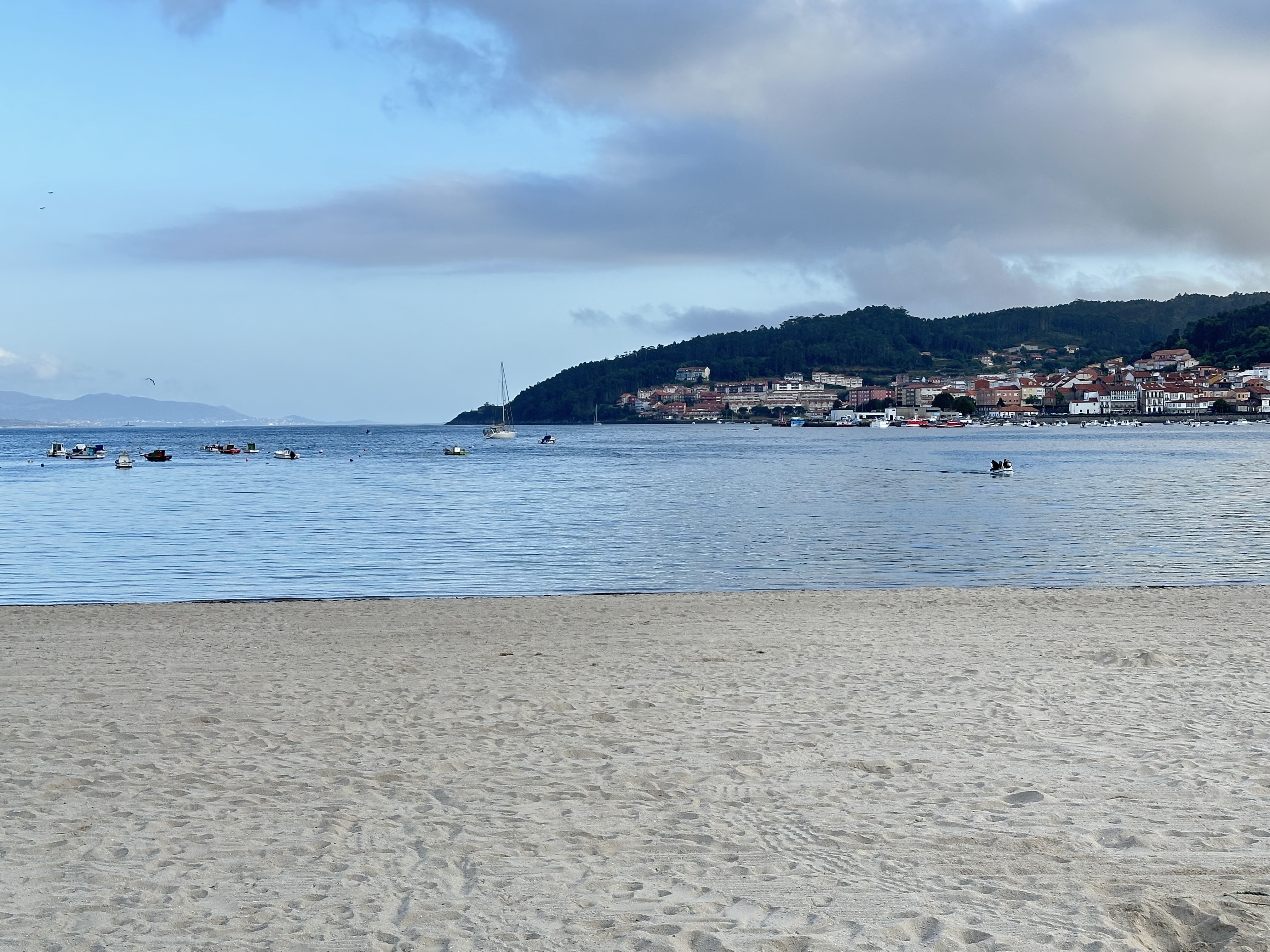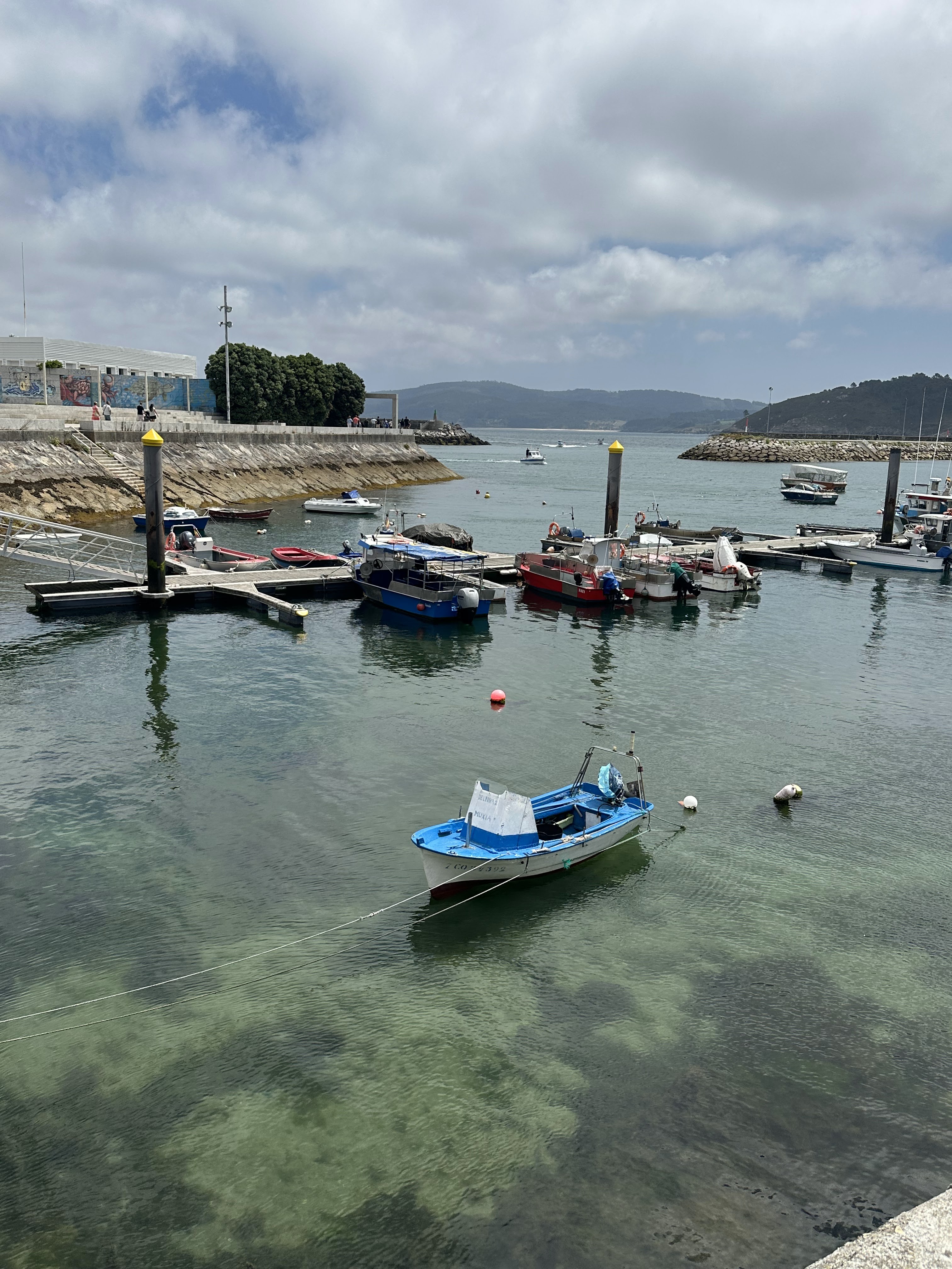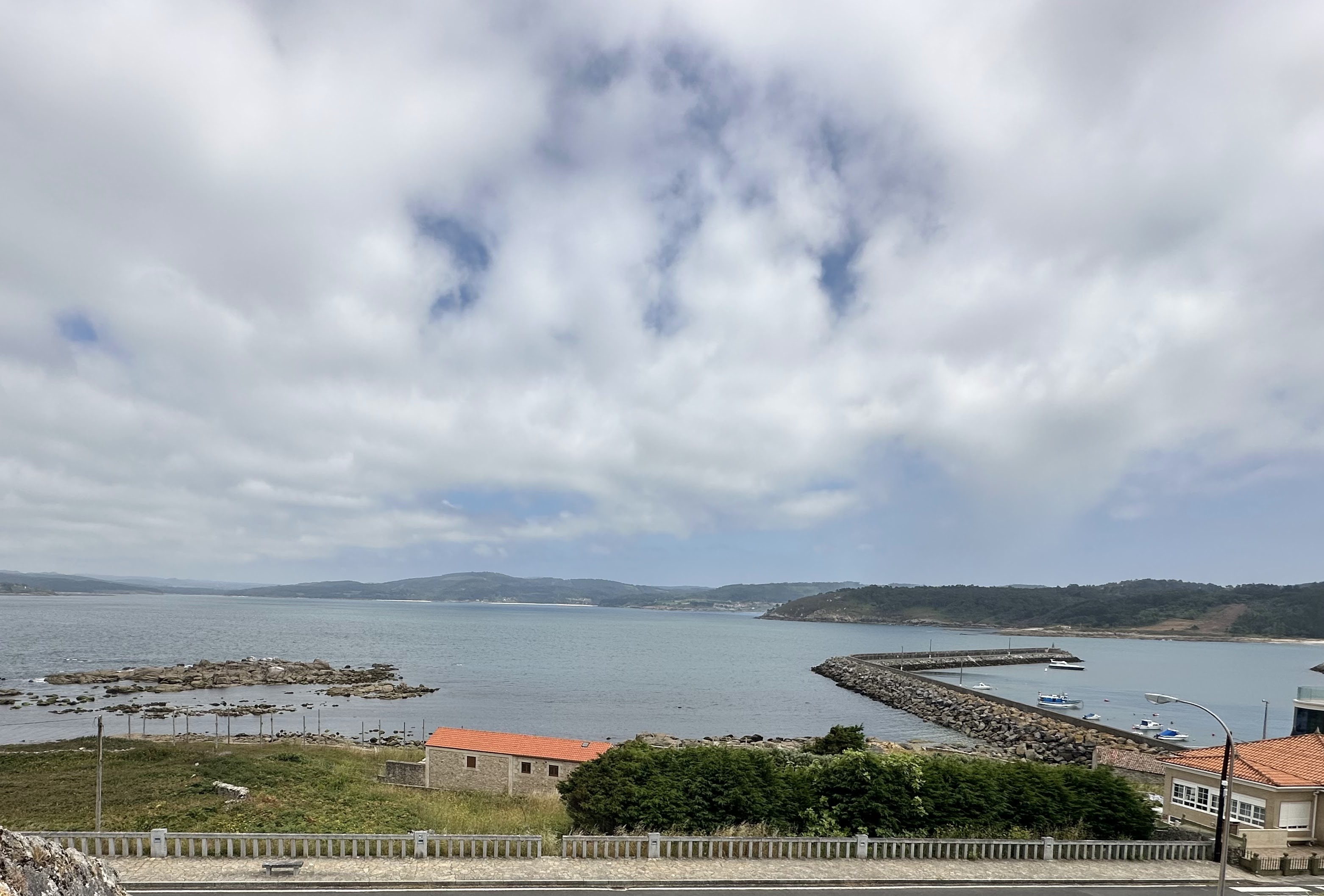 Foto del puerto con nubes por toda la ría y enseguida a comer. Ya vendríamos de nuevo a Corcubión,el último día de nuestra estancia galega.