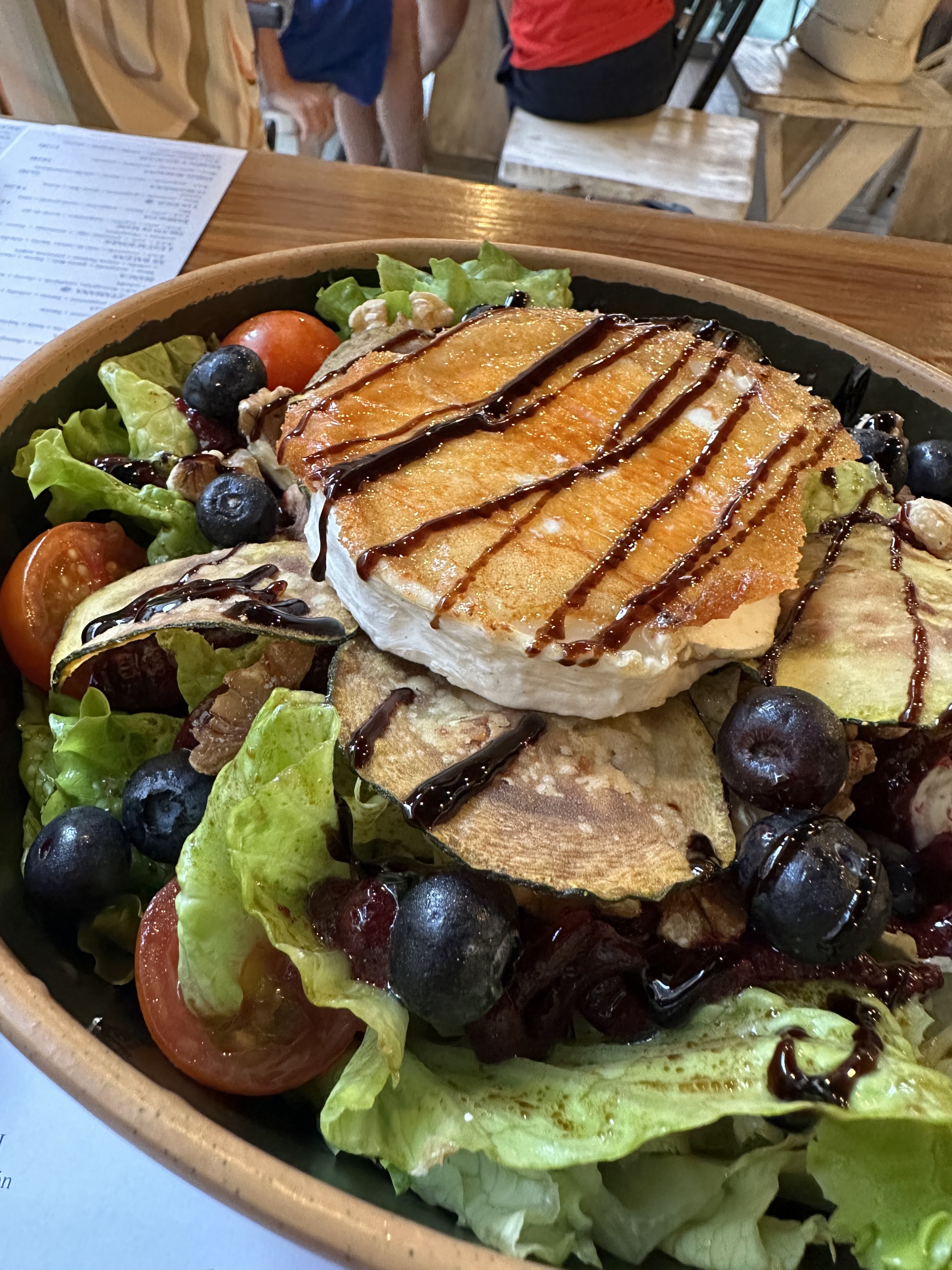 *Ensalada de queso de cabra; cachopo y una foccacia. Para compartir los tres.