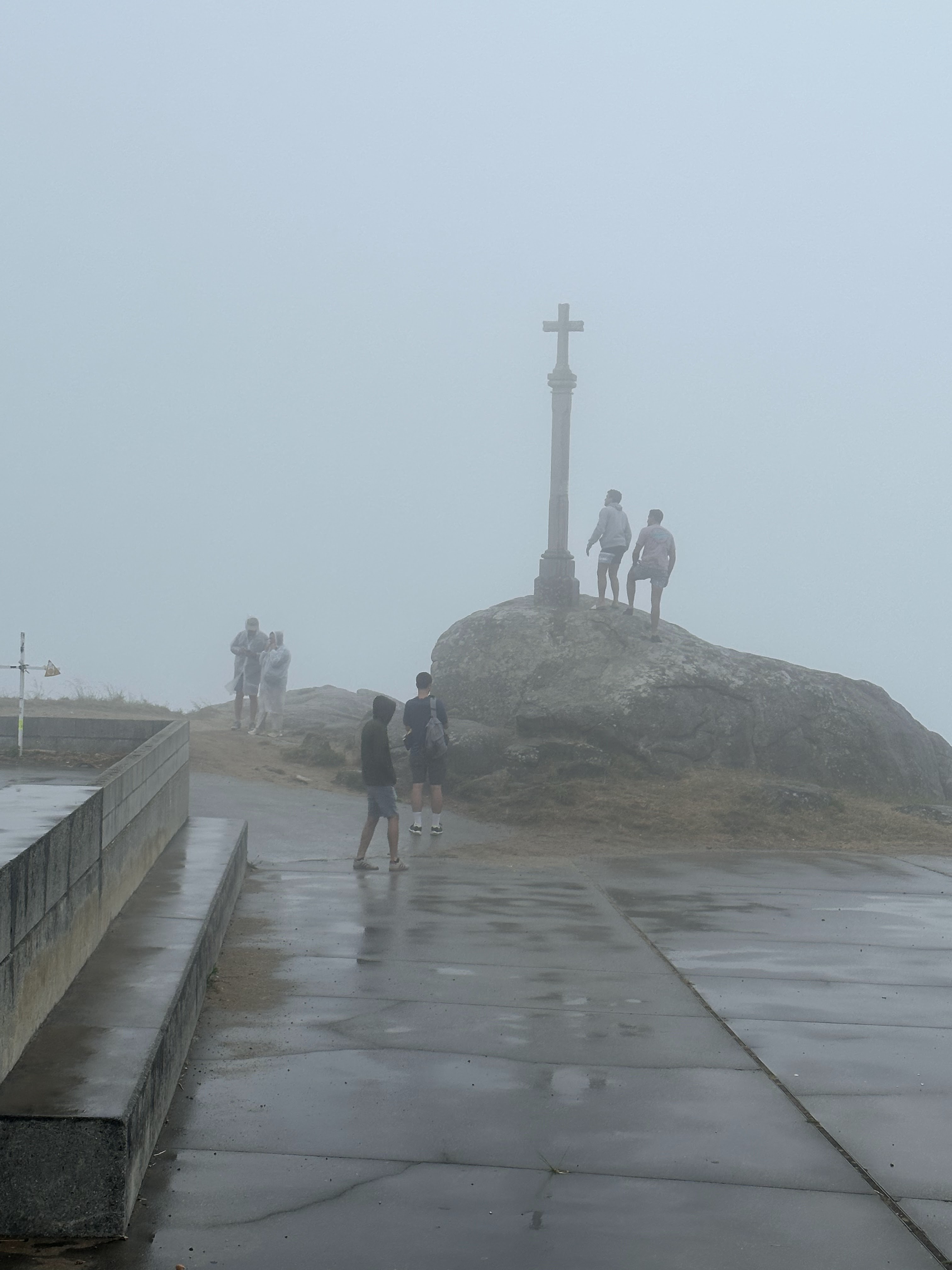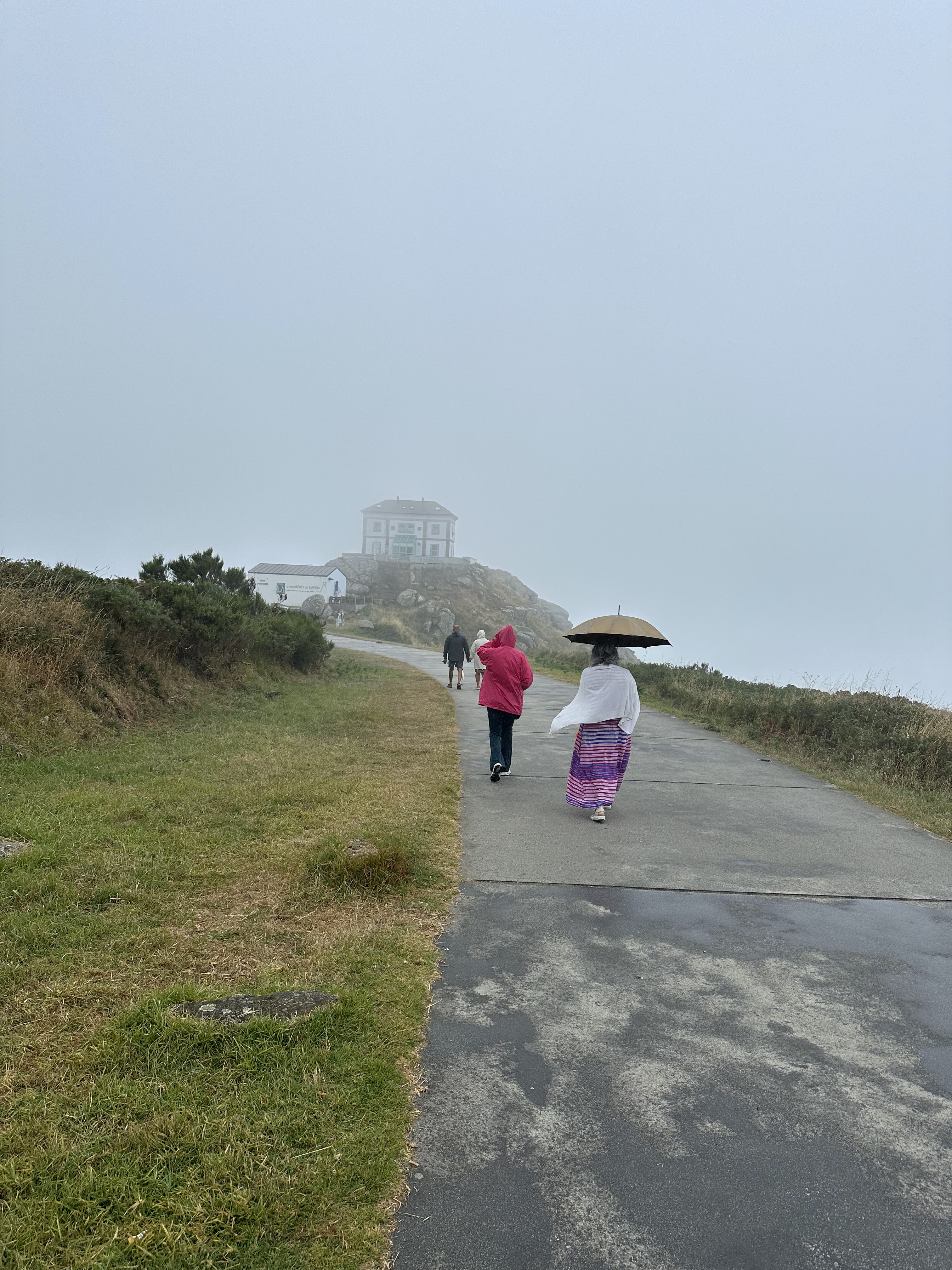 Visita rápida al Cabo/Faro de Finisterre. Y digo rápida, no porque lo conocíamos que también, si no porque las nubes y la niebla no dejaban ver nada, acompañado de una lluvia fina que calaba bien.