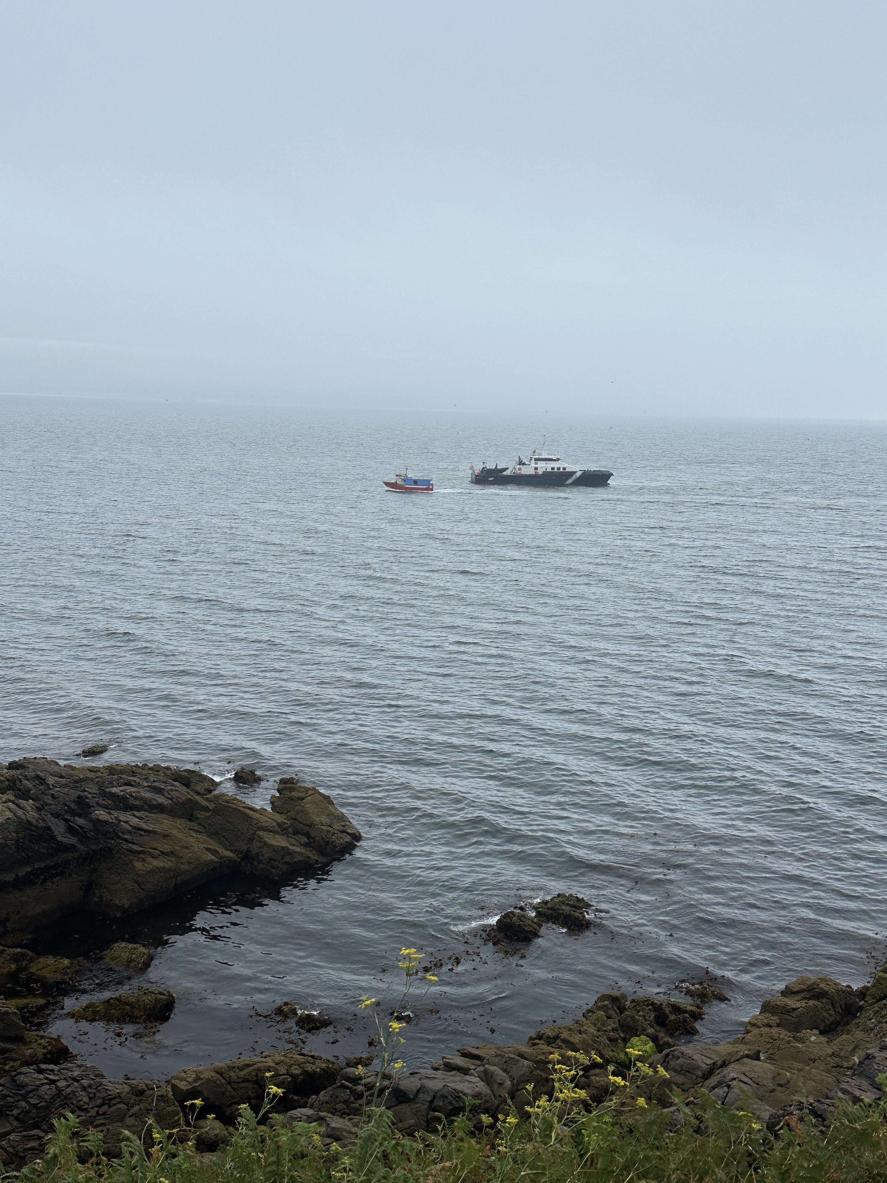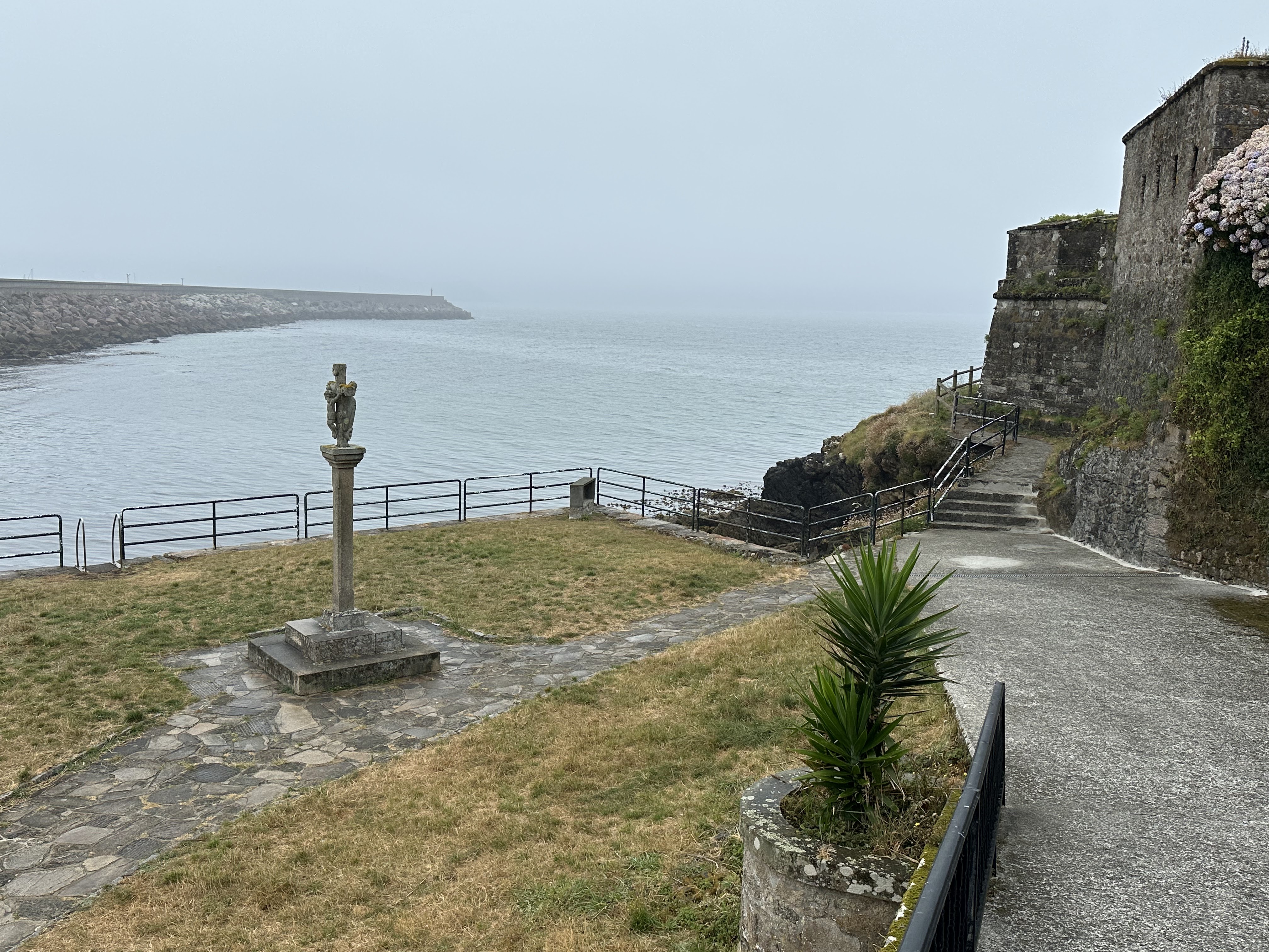 Por el paseo Corveiro, hacia arriba del castillo, estuvimos un rato intersados en que pasaba con un barco justo enfrente que daba vueltas y vueltas pequeñas, y al parecer los parroquianos que también observaban, nos dijeron que era algo que habían dejado allí señalado con una boya y ellos (el barco era la policía costera) estaban quitando o recogiendo. Droga, redes pesca, no sabemos.