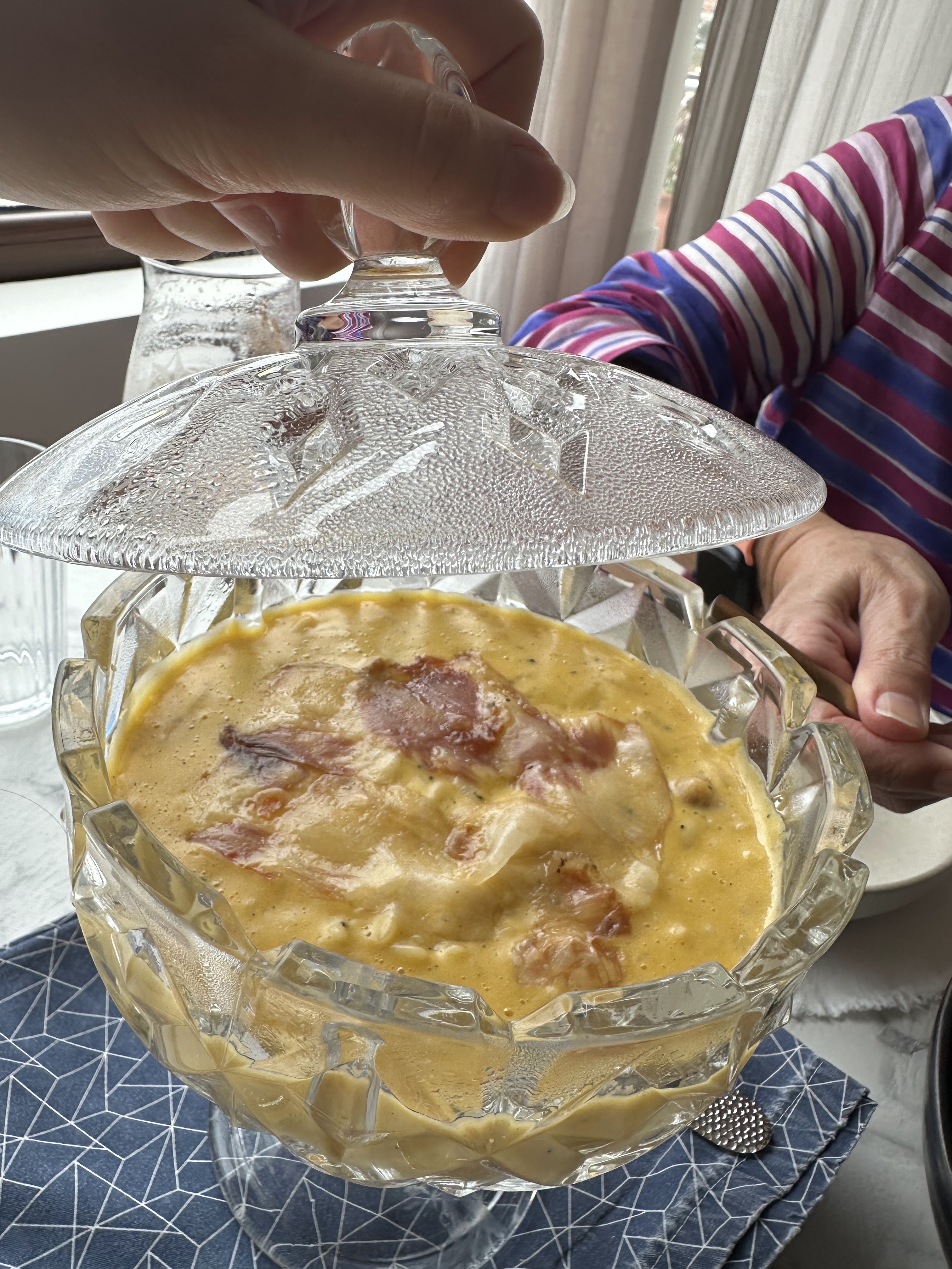 *Carbonara de semi de orzo (pasta) con berberechos y papada ibérica (idem…aunque aquí ya estábamos basante llenos)