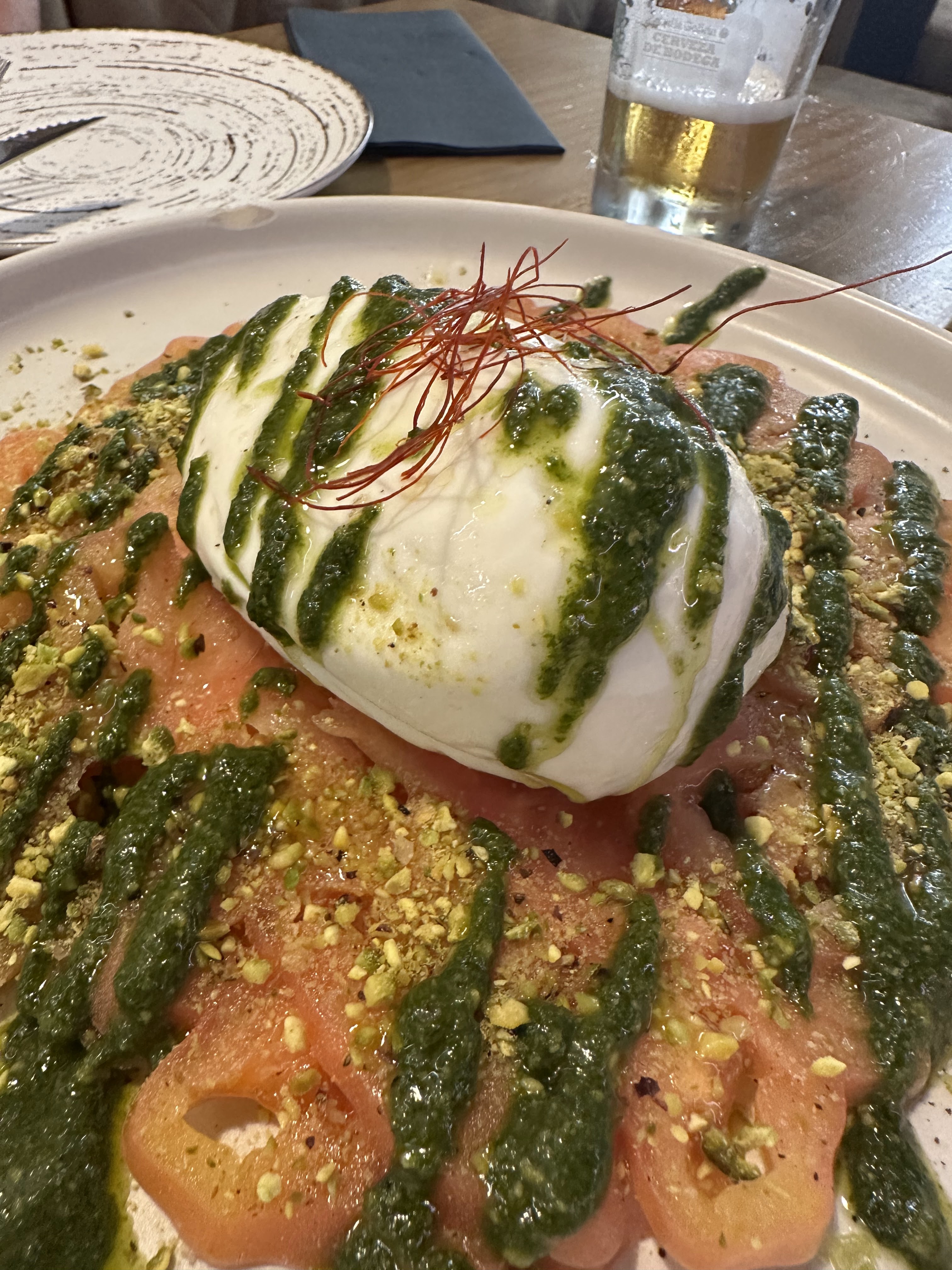 *cecina con «lascas» de foie, que en realidad era un poco de éste rallado por encima; estaba bueno también.