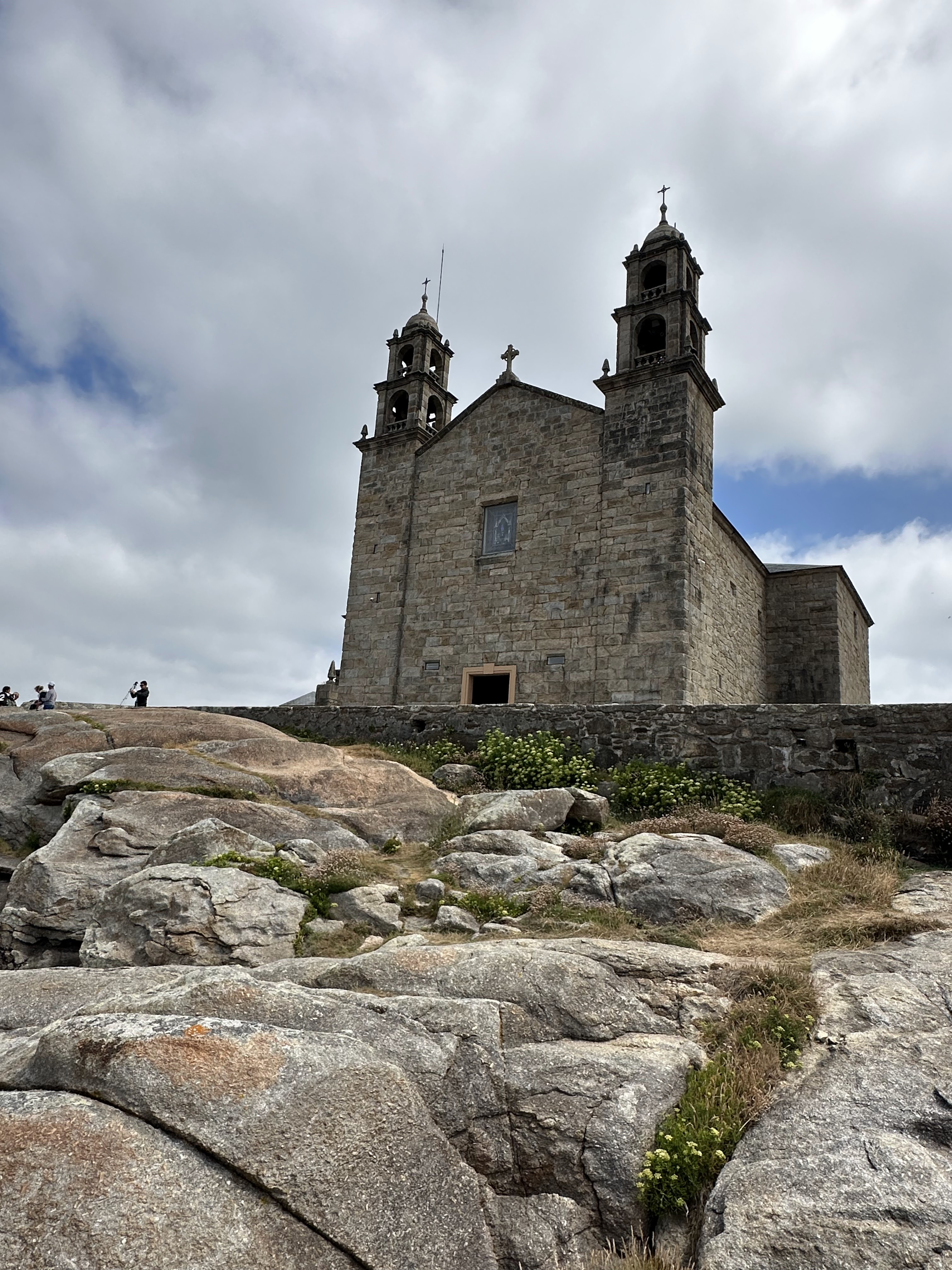 El lugar es espectacular. El propio recinto religioso y el atrio que se extiende más allá del murete, hacia donde están las piedras «mágicas», con propiedades curativas y adivinatorias: la Pedra de Abalar (oscilar), la Pedra de Os Cadrís (Riñones), Pedra dos Namorados (enamorados) y la Pedra de O Temón (timón). Son los restos de la embarcación en la que, cuenta la leyenda, llegó la Virgen por mar para alentar al apóstol Santiago en su evangelio.