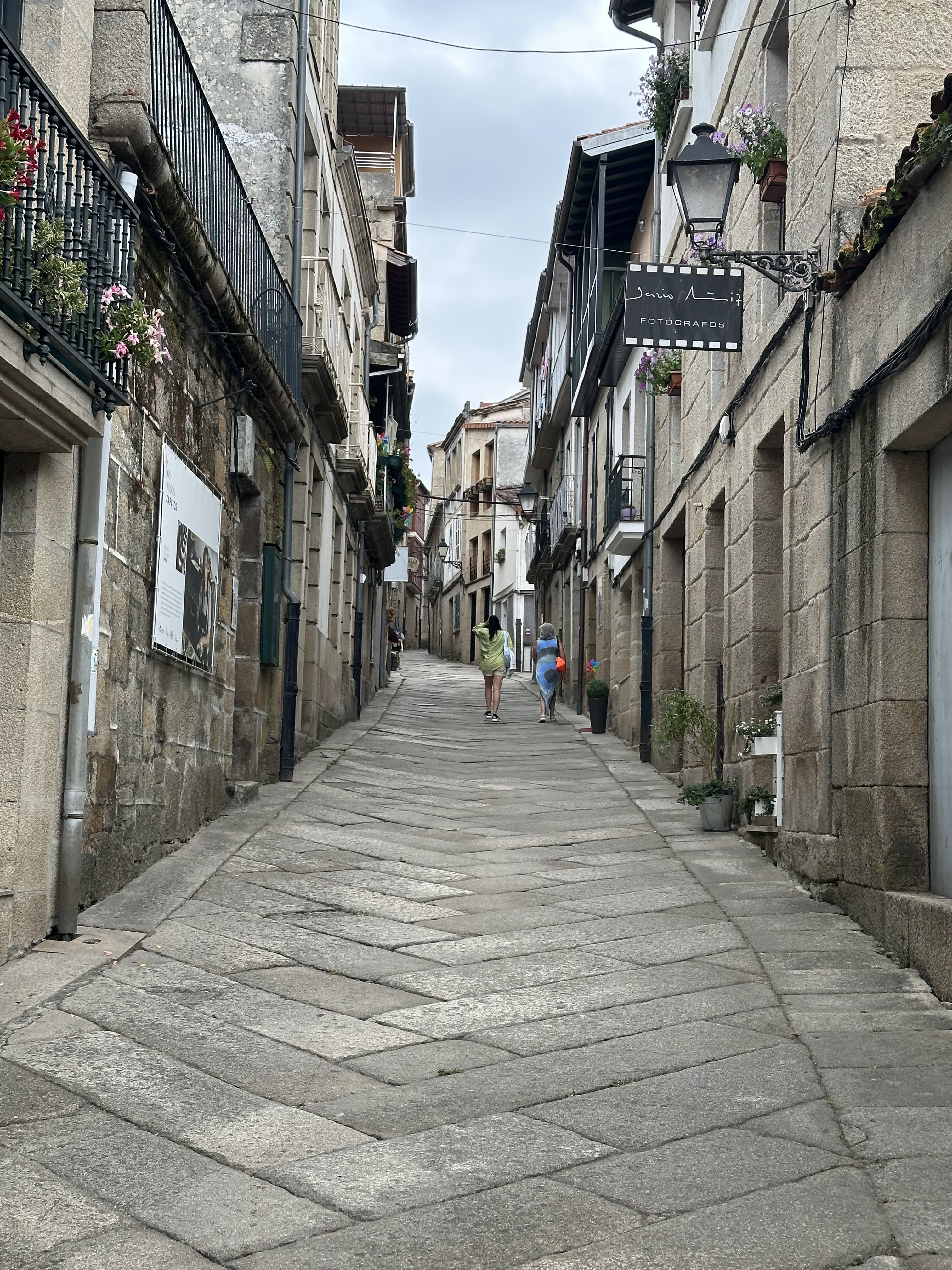 Entramos a tomarnos un tentempié (empanada gallega pequeña y unos refrescos/infusiones) en el Bar Mariquito (Rua Sta.Catalina) y enseguida se puso a llover más fuerte; vaya tela, pero esto es Galicia.