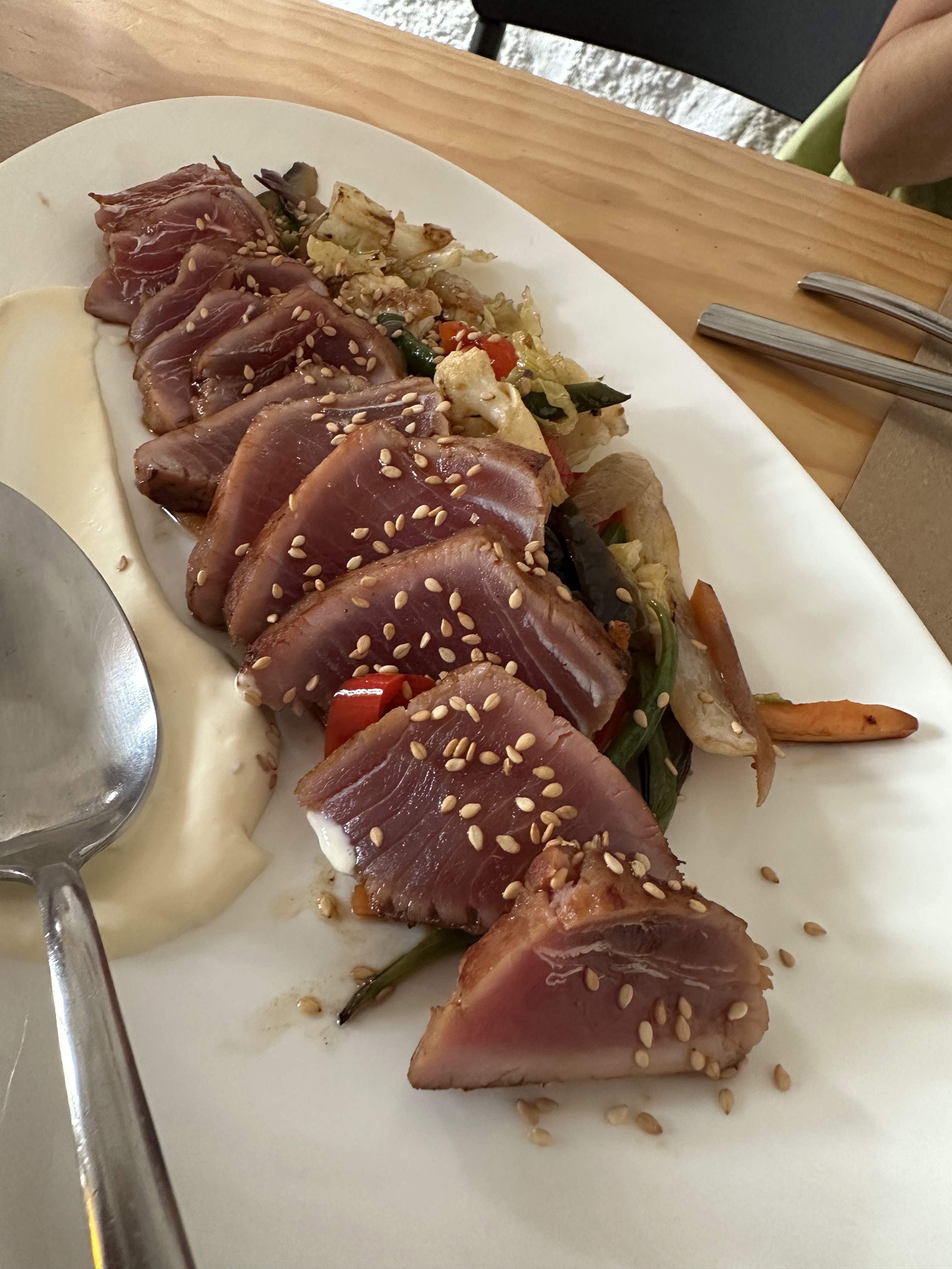 Sabíamos que comiendo pescado salvaje iba a dispararse la cuenta, así como las almejas y el arroz, pero un día es un día; salimos a 47 eur p.p.