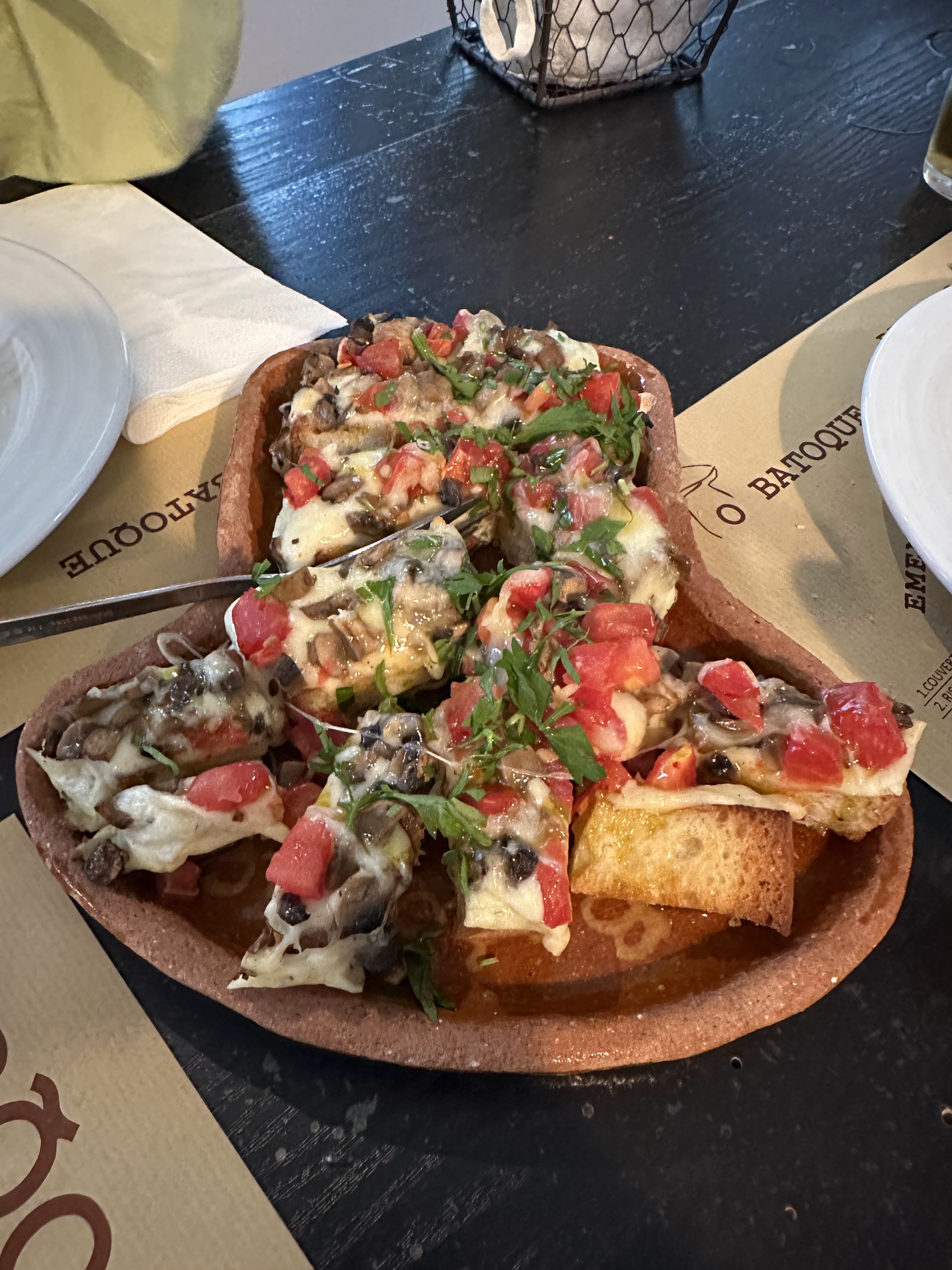 *Una bruschetta (como un pan tostado con champiñones, queso etc.) y unos lombinhos con cugumelos (lomos con champiñones). Es el producto estrella del local, los champis, bueno y en muchos otros sitios también los vimos pero no como aquí, que era todo basado en ello.