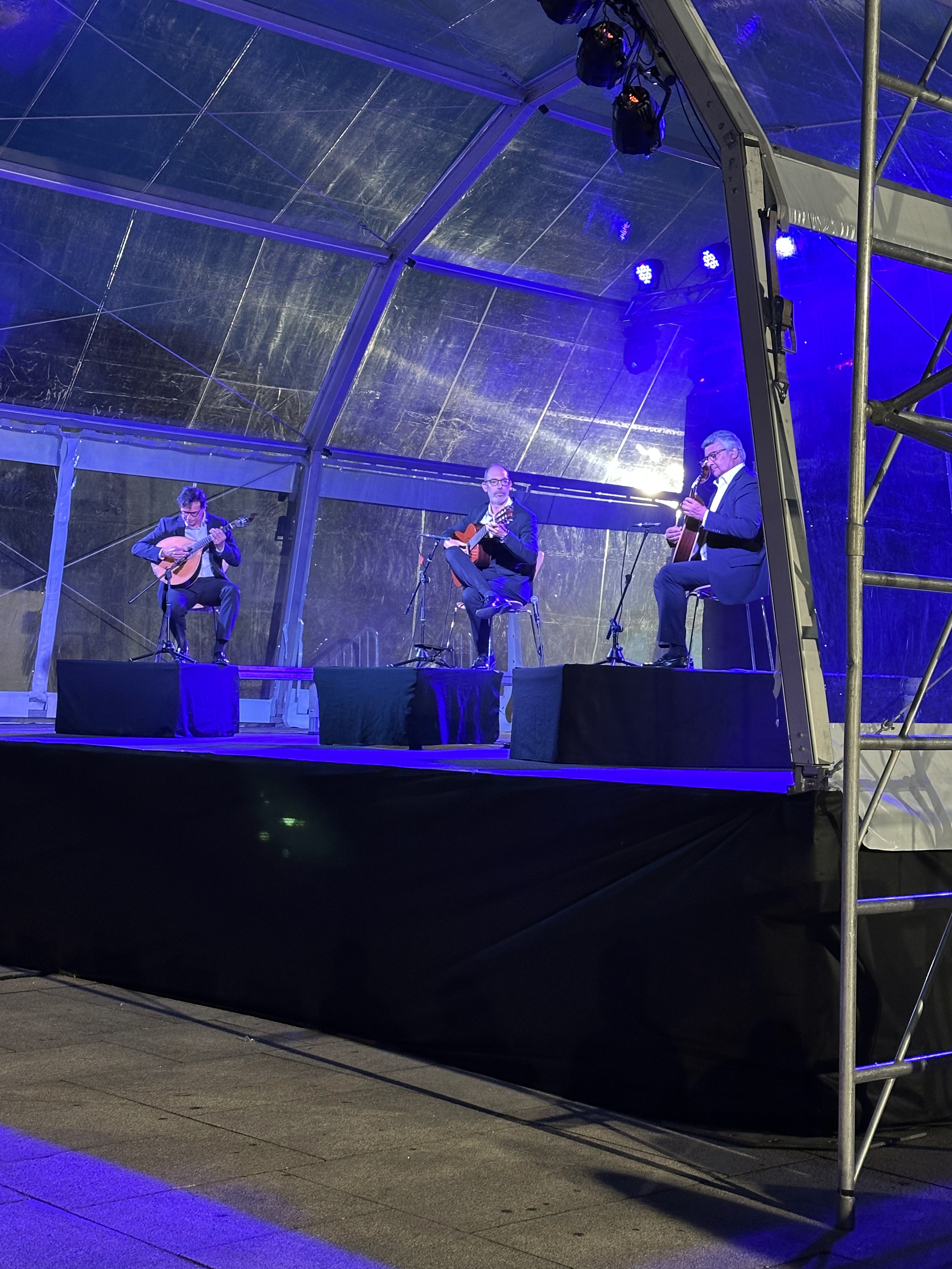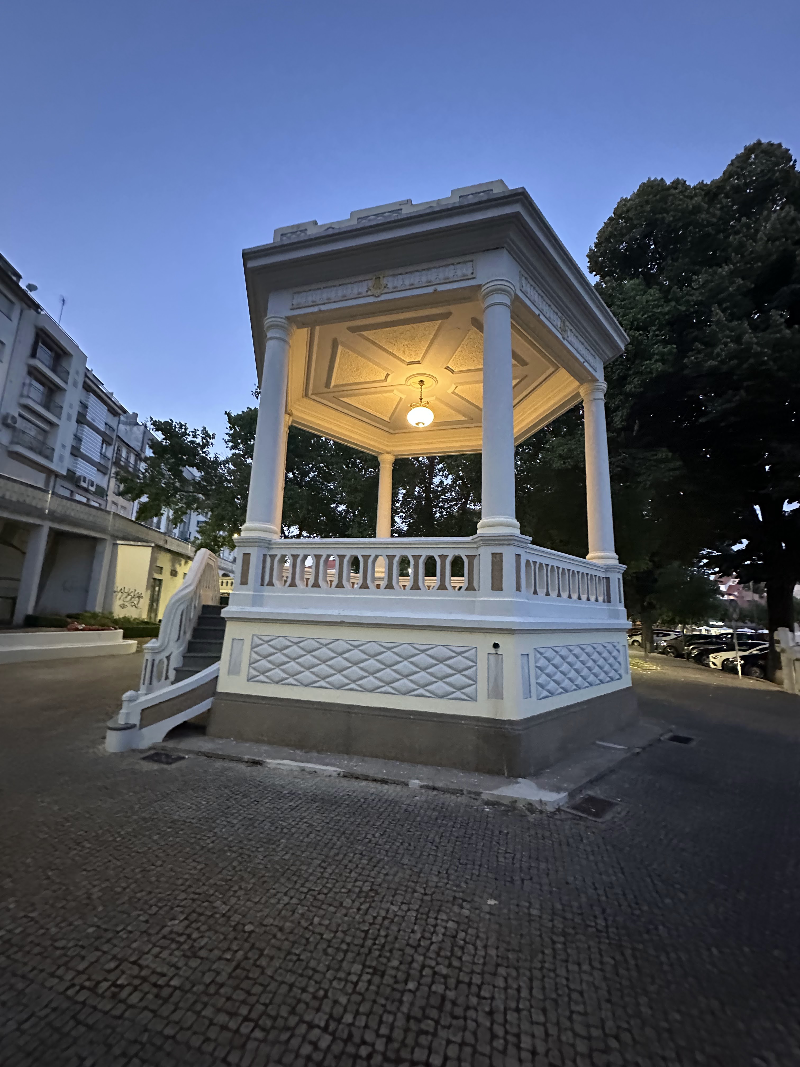 17º grados, chaquetilla en «ristre», alguna fotico nocturna y oímos un poco de música en la plaza Camoes de los conciertos que hoy empezaban.