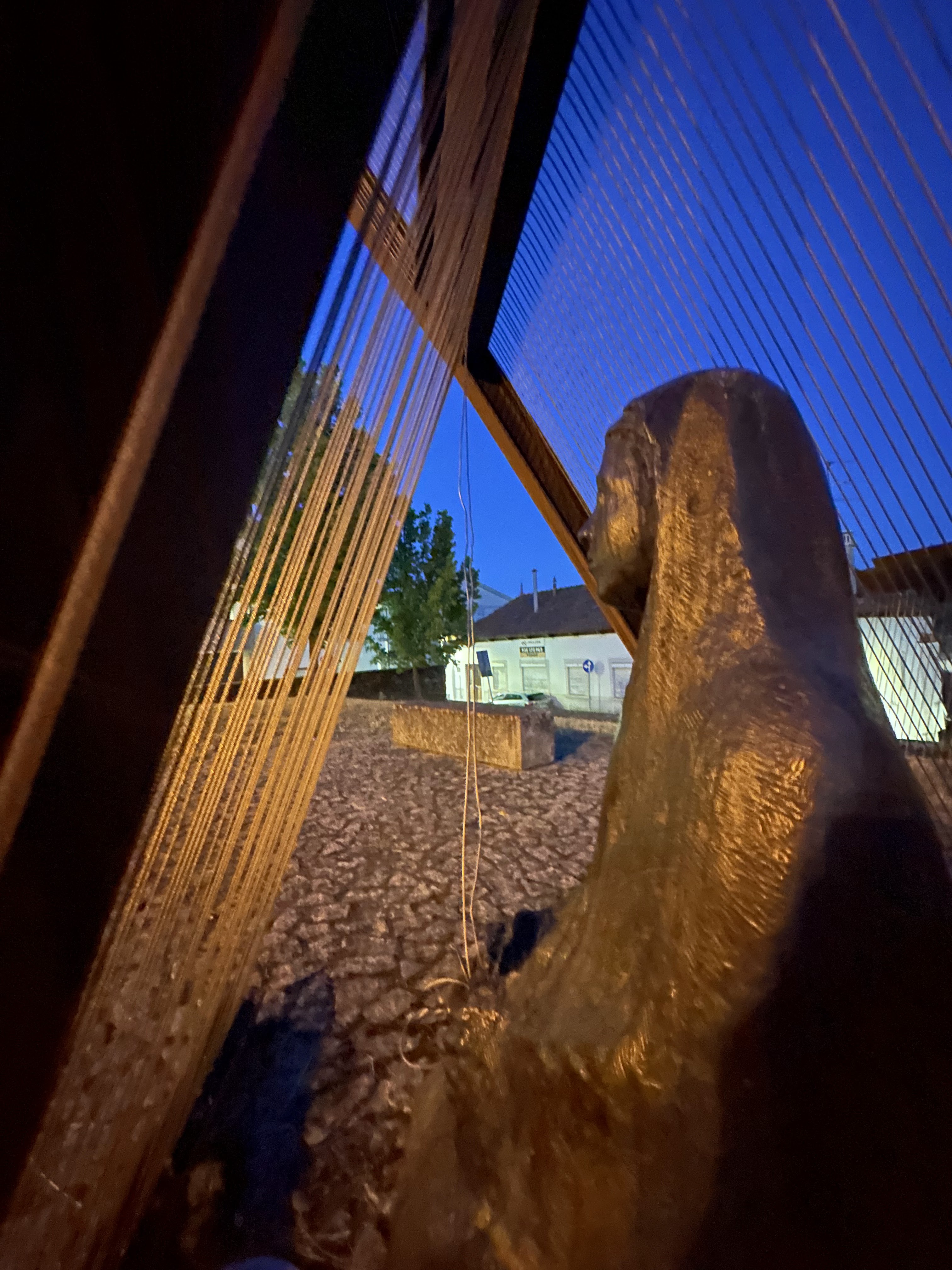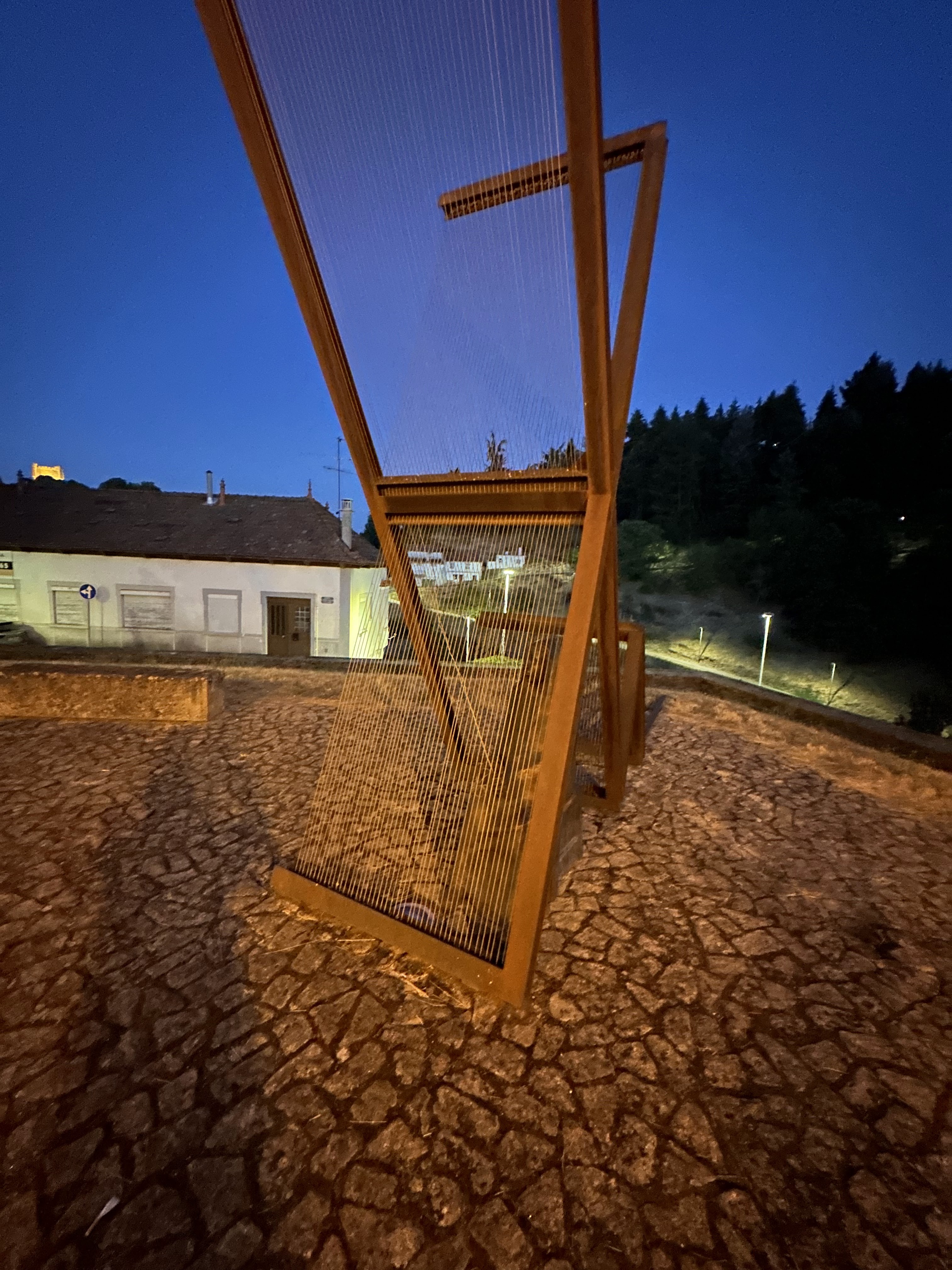La Lágrima, conjunto escultórico instalado en 2004, rinde homenaje a una profesión de gran importancia en la ciudad de Bragança. Consiste en una figura de bronce, la tejedora, con «dos elementos colocados en dos espacios y niveles diferentes», compuestos por estructuras de perfiles de acero corten, cables de acero y pizarras. Fue un encargo de la Sociedad para el Desarrollo del Programa Polis de Bragança. La explicación de José Rodrigues a continuación destaca «la idea de proyección o eco, relacionando la larga permanencia de la actividad en la tradición local con la evocación de una posible aproximación entre el telar y el arpa, donde la tejedora-arpista llena el paisaje con sus nudos y sonidos». En este telar, las cuerdas no son de lana; nuestra tejedora toca los hilos con los dedos como si tocara un instrumento musical, proyectando así al espacio el recuerdo de una profesión muy antigua, fundamental para la economía de Trás-os-Montes. (Soares, 2010:225)