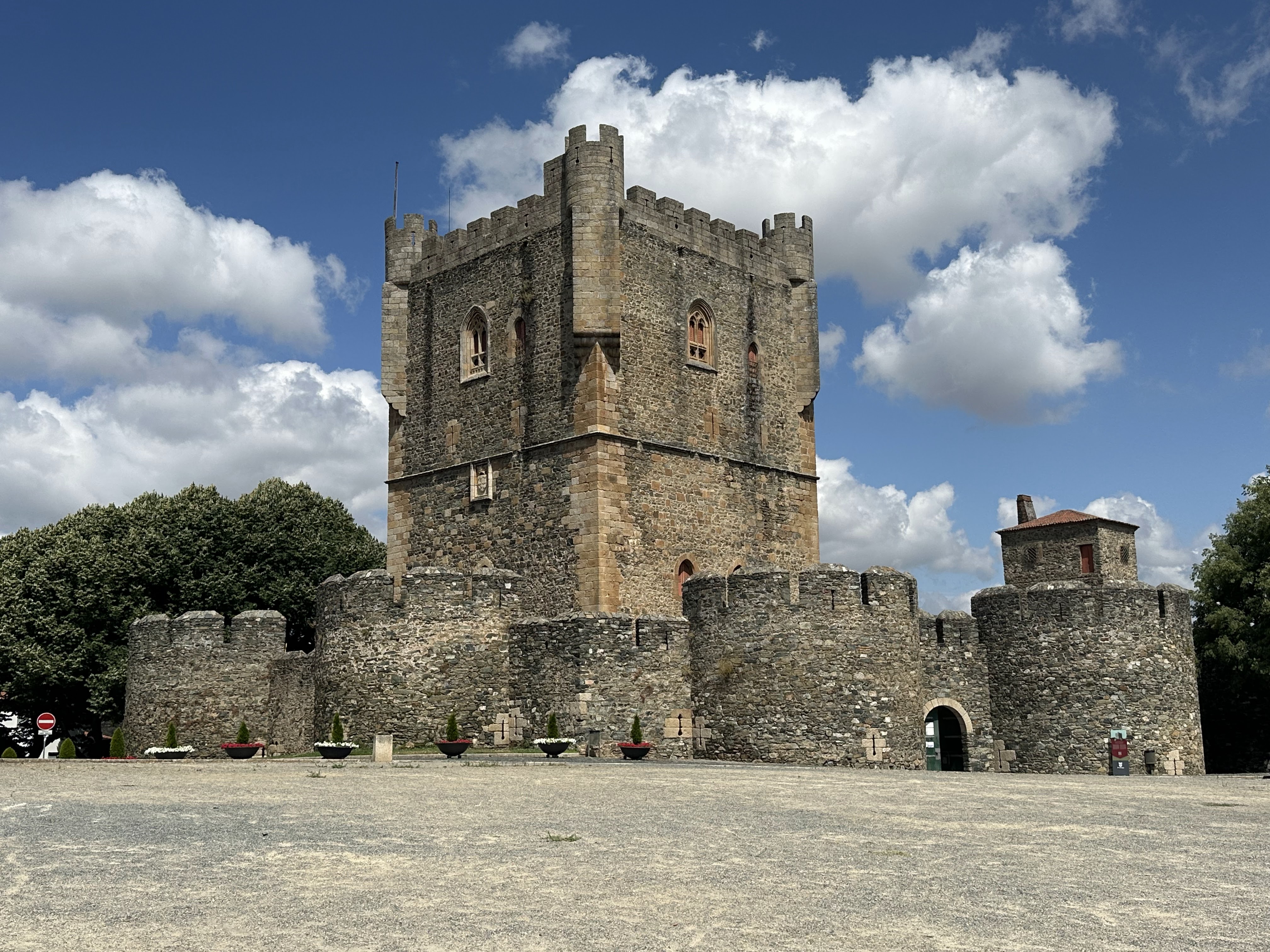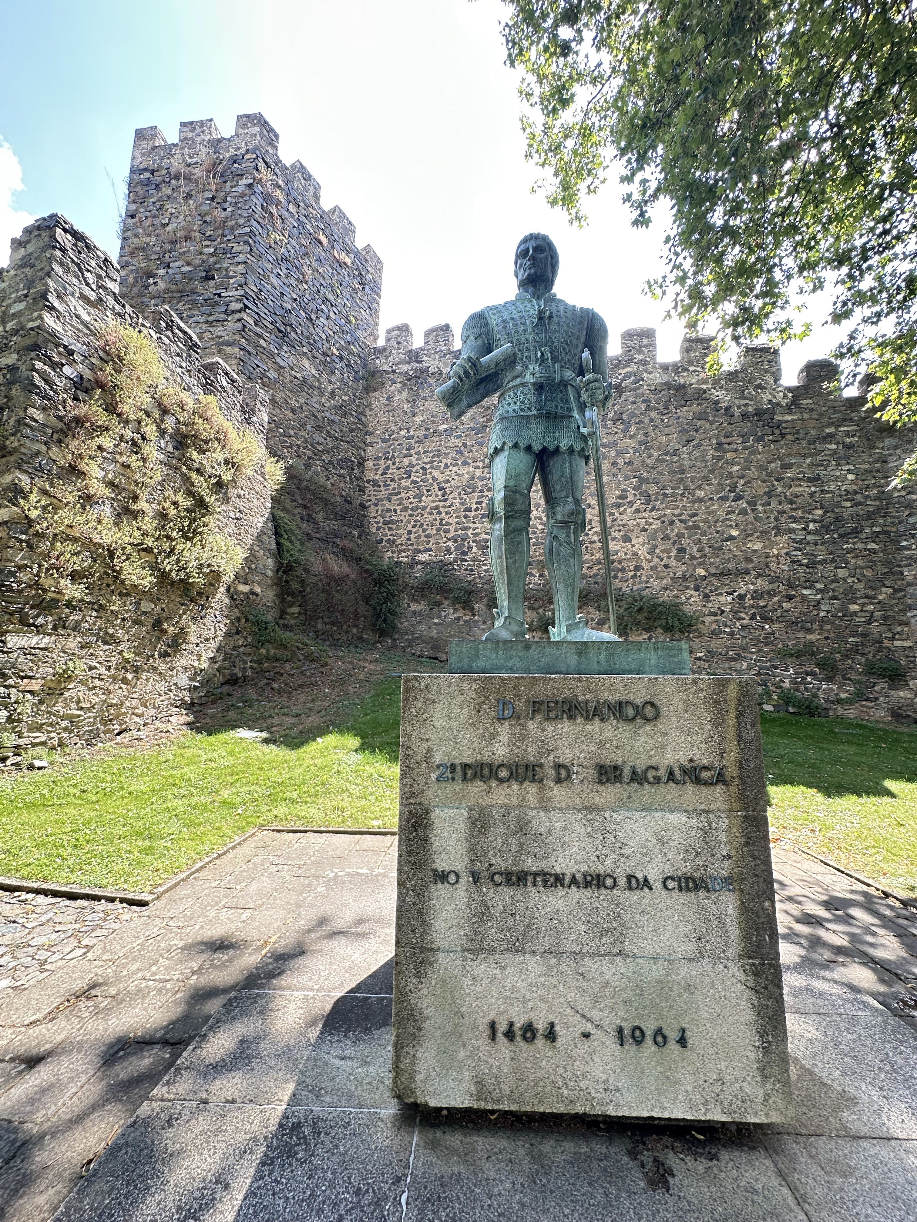 «Anexo al lienzo de la muralla del lado norte de la ciudadela de Braganza se alza su CASTILLO. De estilo gótico, es uno de los castillos más representativos de la Edad Media en Portugal. En el s. XIV el primer abuelo del futuro Enrique el Navegante y primer Duque de Lancaster, Juan de Gante, introdujo novedades constructivas en las fortificaciones portuguesas. La torre del homenaje de planta cuadrada, el recinto rectangular y los torreones cilíndricos defensivos del Castillo de Braganza reflejan perfectamente estas novedades.