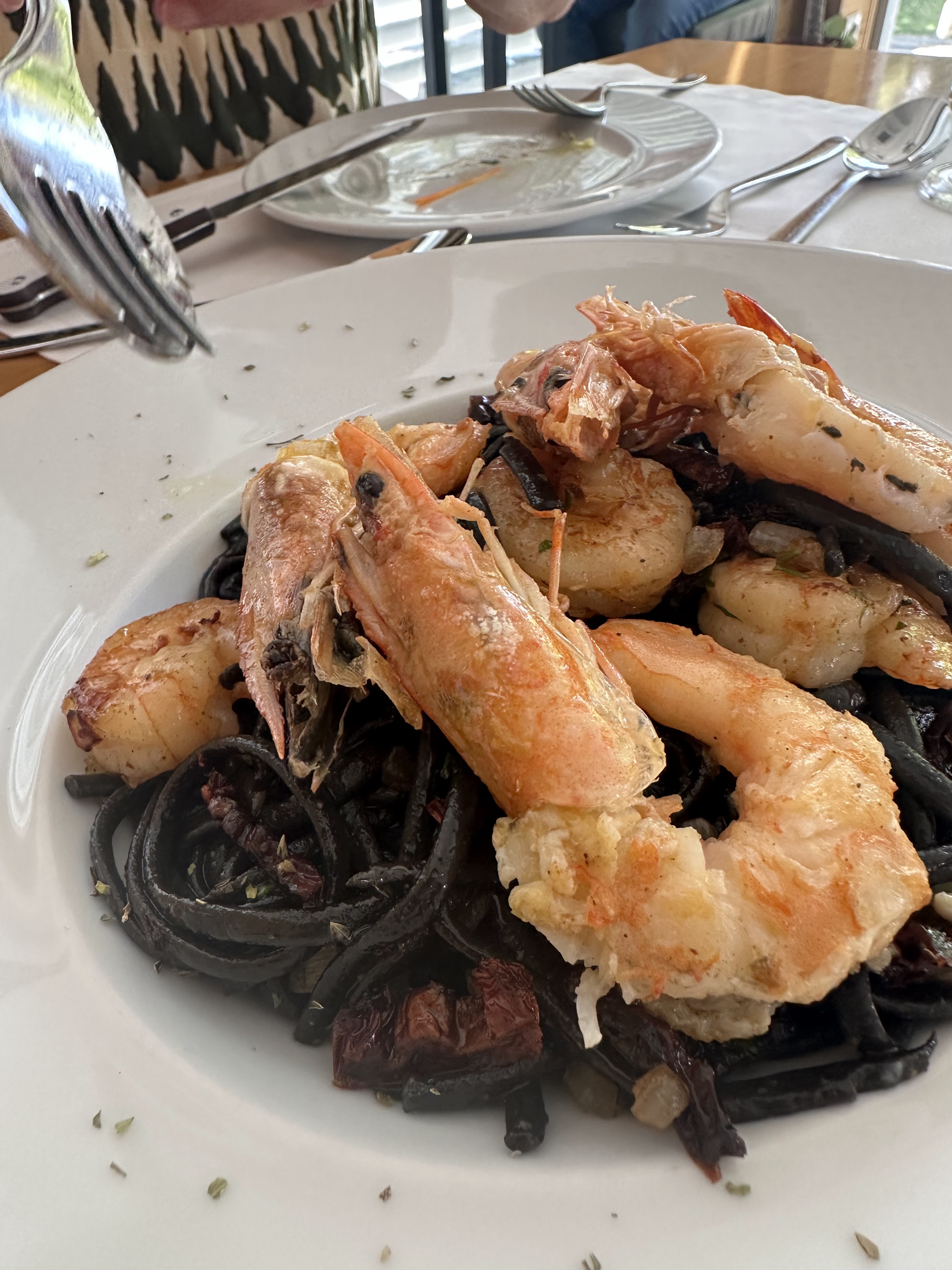 *Linguini (pasta) de gambas con tomate seco. Muy bueno también.