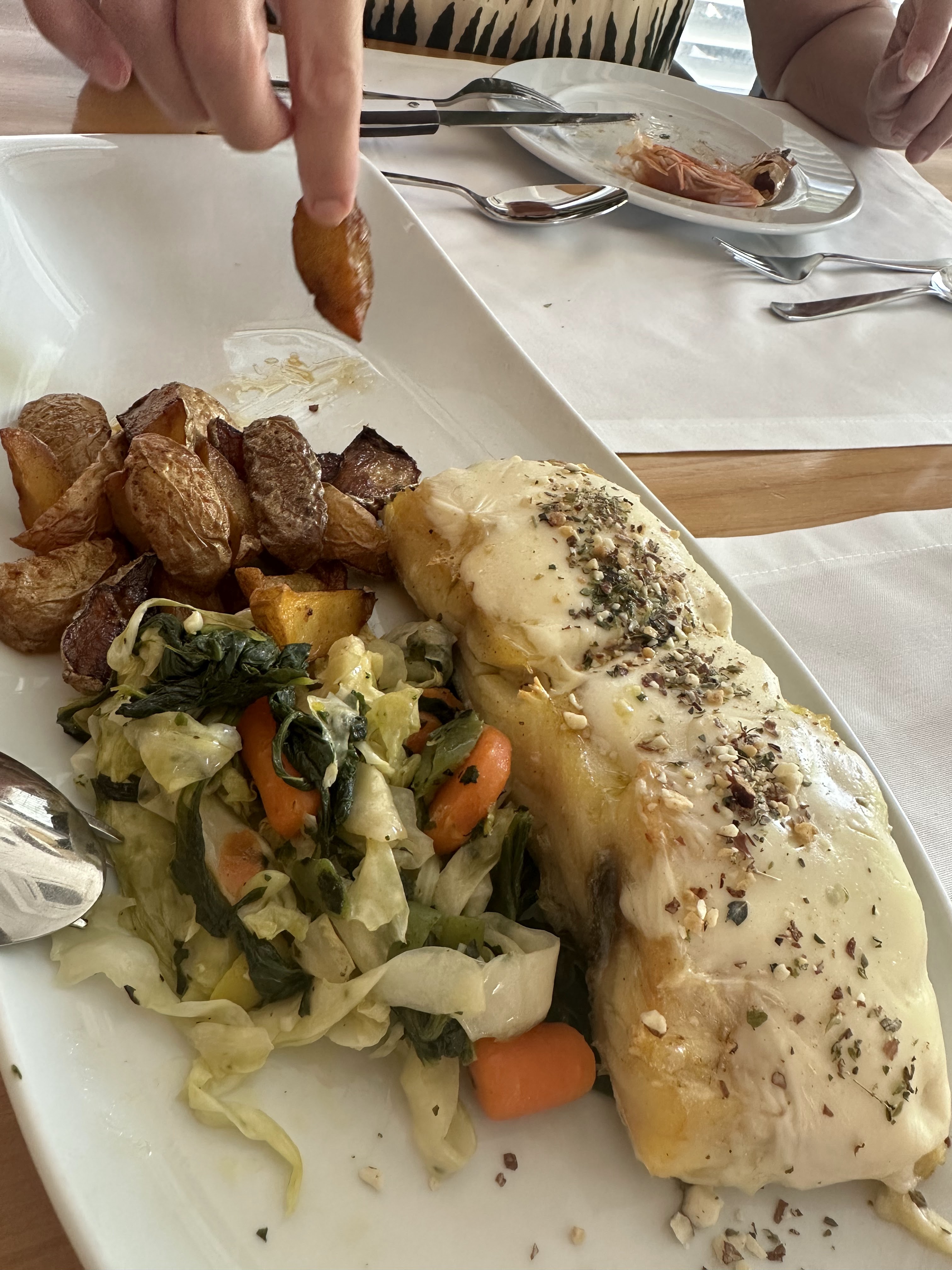 *Lombo de Bacalhau com gratinado de Maça assada e Oregaos (lomo de bacalao gratinado con manzana y orégano). Idem.
