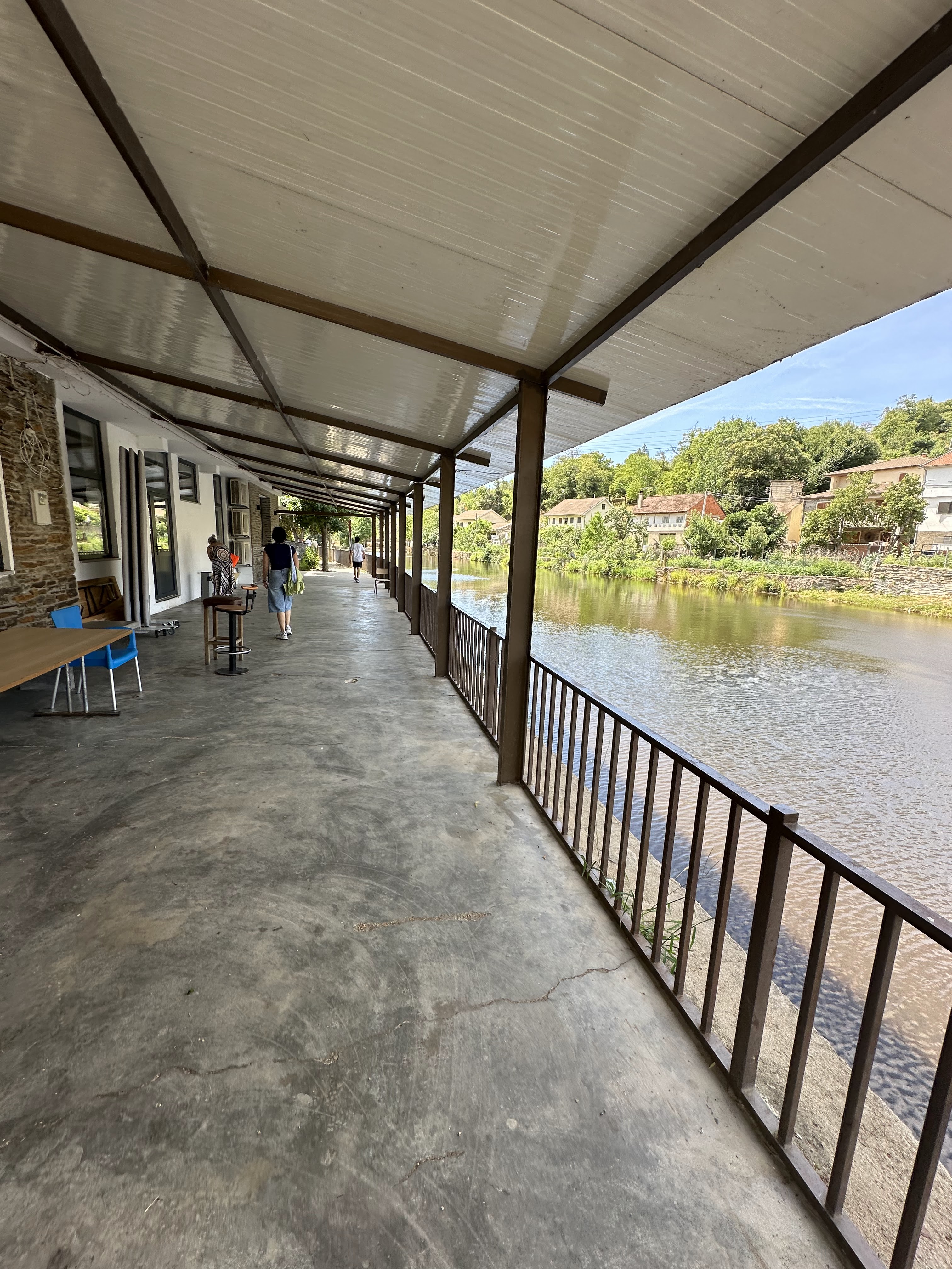 Helado de máquina en Café Almeida, justo en la esquina antes de entrar a nuestra calle (Rua Dos Batoques), y paseo junto al río llegando a la Casa de la Seda, el Centro Ciencia Viva y el Monumento ao Tecelao.(monumento a la industria de la seda. Monumento al tejedor/a)