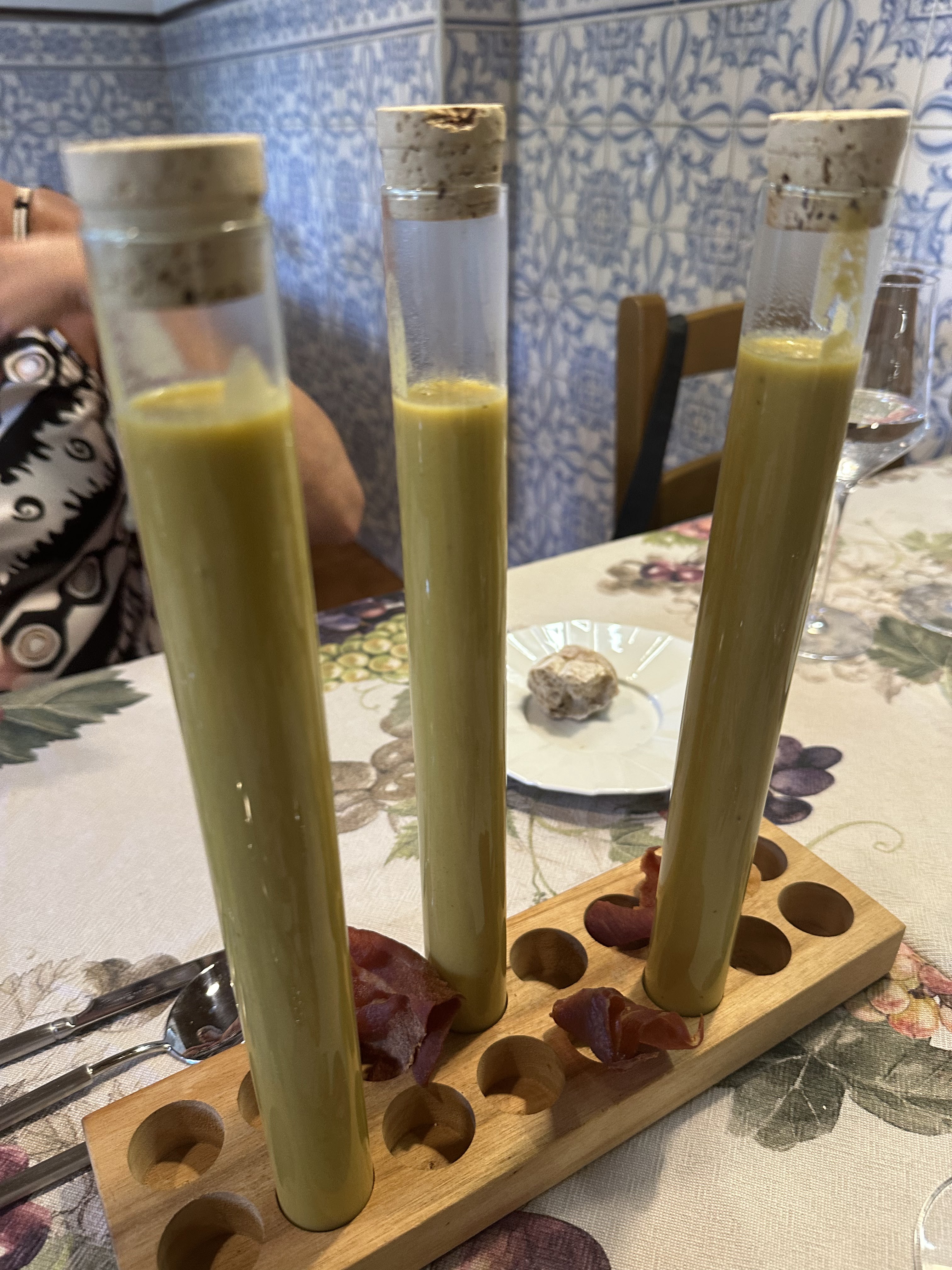 *y caldo de cogumelos para los tres. Es realmente una crema presentada en «tubos de ensayo» para beber.