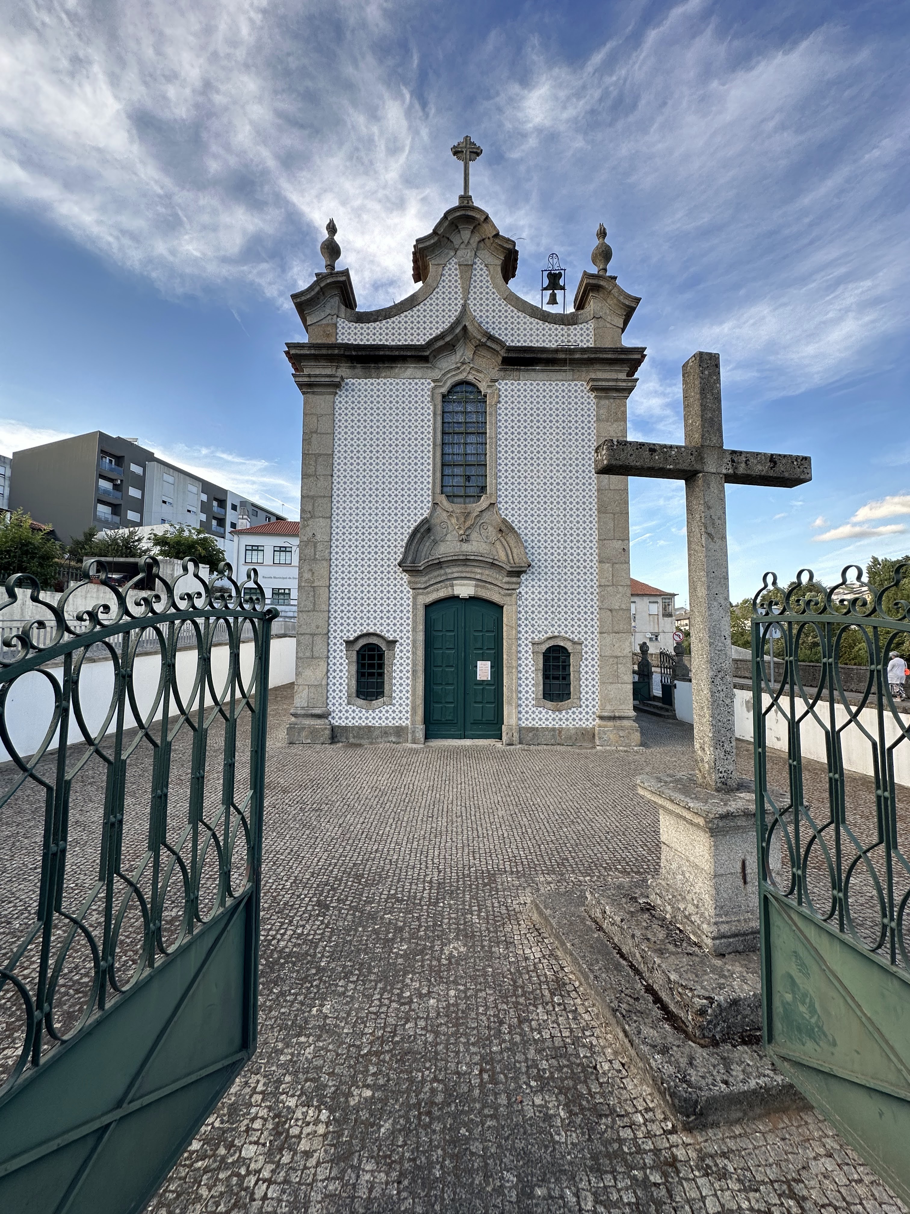 Desde el puente se ve «la Iglesia Parroquial de Varge / Iglesia de San Miguel, ofrece una encantadora vista de la misma. Situada en el centro de la ciudad, esta pequeña iglesia cuenta con una puerta verde y un valioso azulejo santificado en la parte superior, lo que la convierte en un imperdible para los turistas.»