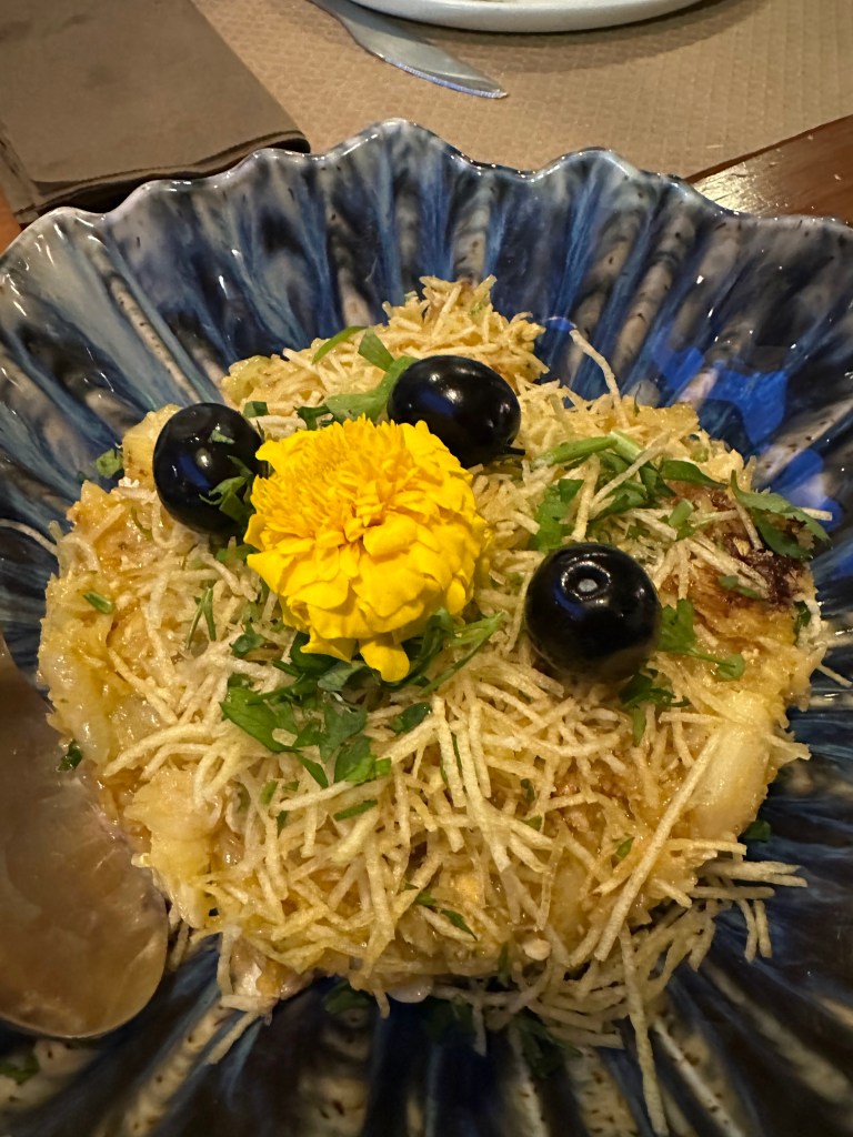 *Bacalhau confitado com puré de Tremoços (altramuces)