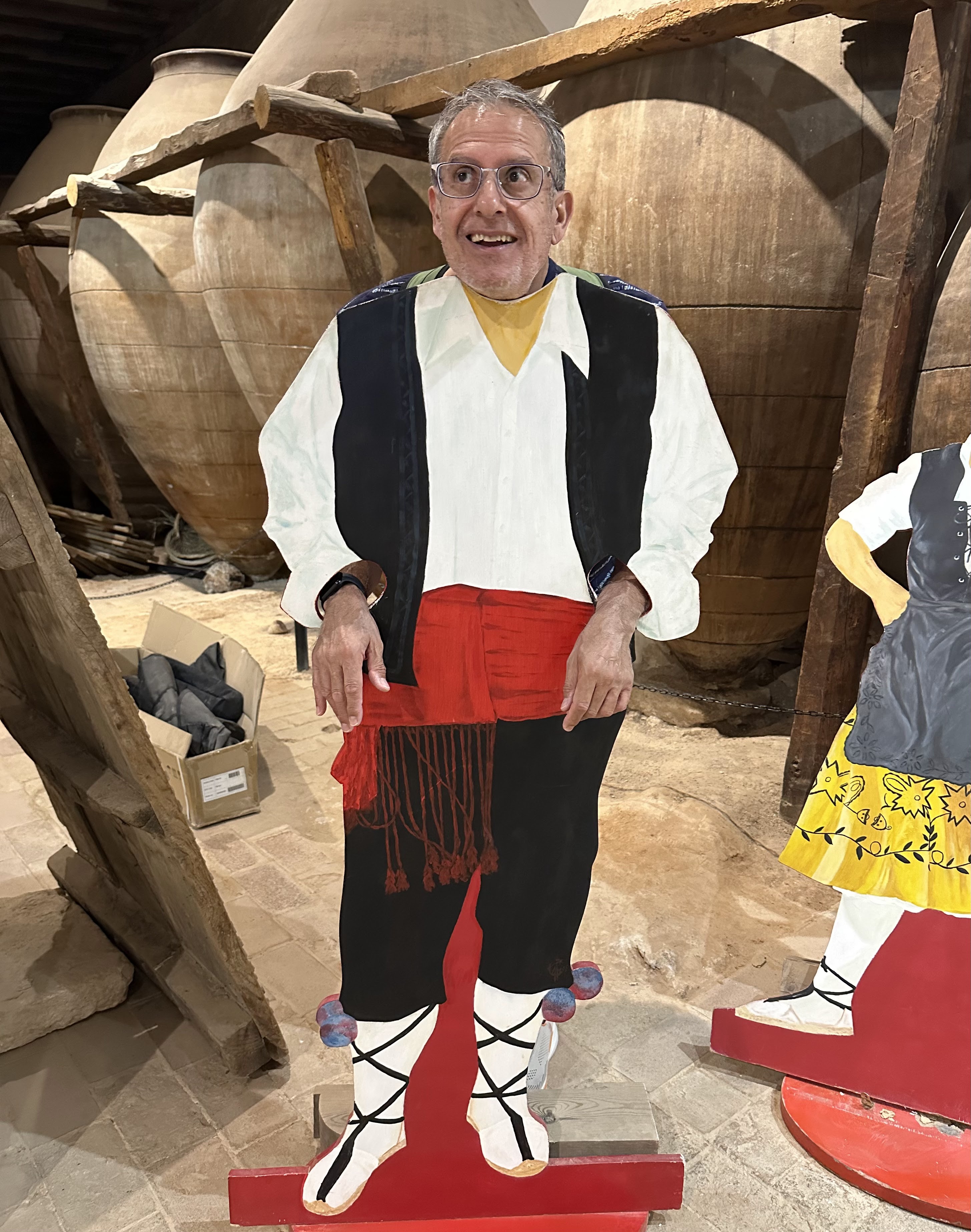 A parte de las grandes tinajas que -como podemos ver en una inscripción conservada en la pared- son de la última reposición en 1763, sin duda la joya de este espacio es el suelo del lagar de vino blanco (hoy día sala de audiovisuales del museo). Construido con sillares irregulares de granito, presenta una pequeña rampa para hacer el pisado de la uva por la que el mosto se escurría hasta el sumidero que va a dar a una de las muchas tinajas soterradas que se pueden apreciar irrumpiendo en el suelo de la bodega. Unas arcadas de medio punto separan los dos lagares. Aunque el lagar de vino tinto no conserva el suelo original ni la ventana por la que se tiraba la uva desde la calle, sabemos que en este espacio se construyó una prensa de uva, de la que aún quedan restos en las vigas de madera, un espacio que fue modernizado para agilizar el proceso.»