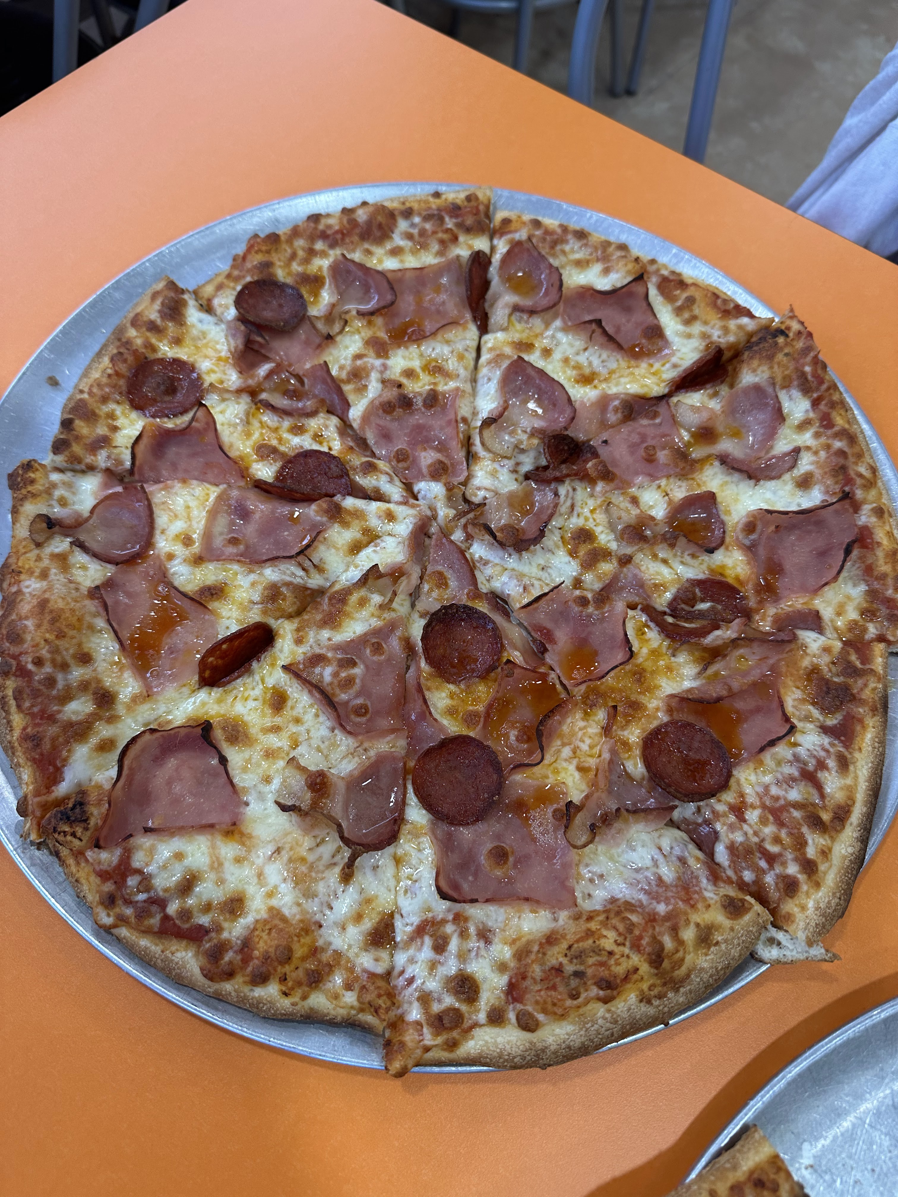 Con un par de pizzas (de 40 cm c.u.) nos apañamos, y son más que suficiente para 3 pers. La Super Tito`s muy rica.