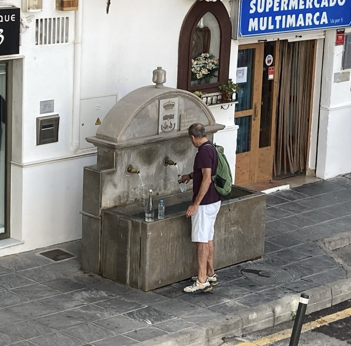 Desayunando en apto.con lo comprado; y bajada a llenar nuestras botellas de agua en la fuenteeeee.