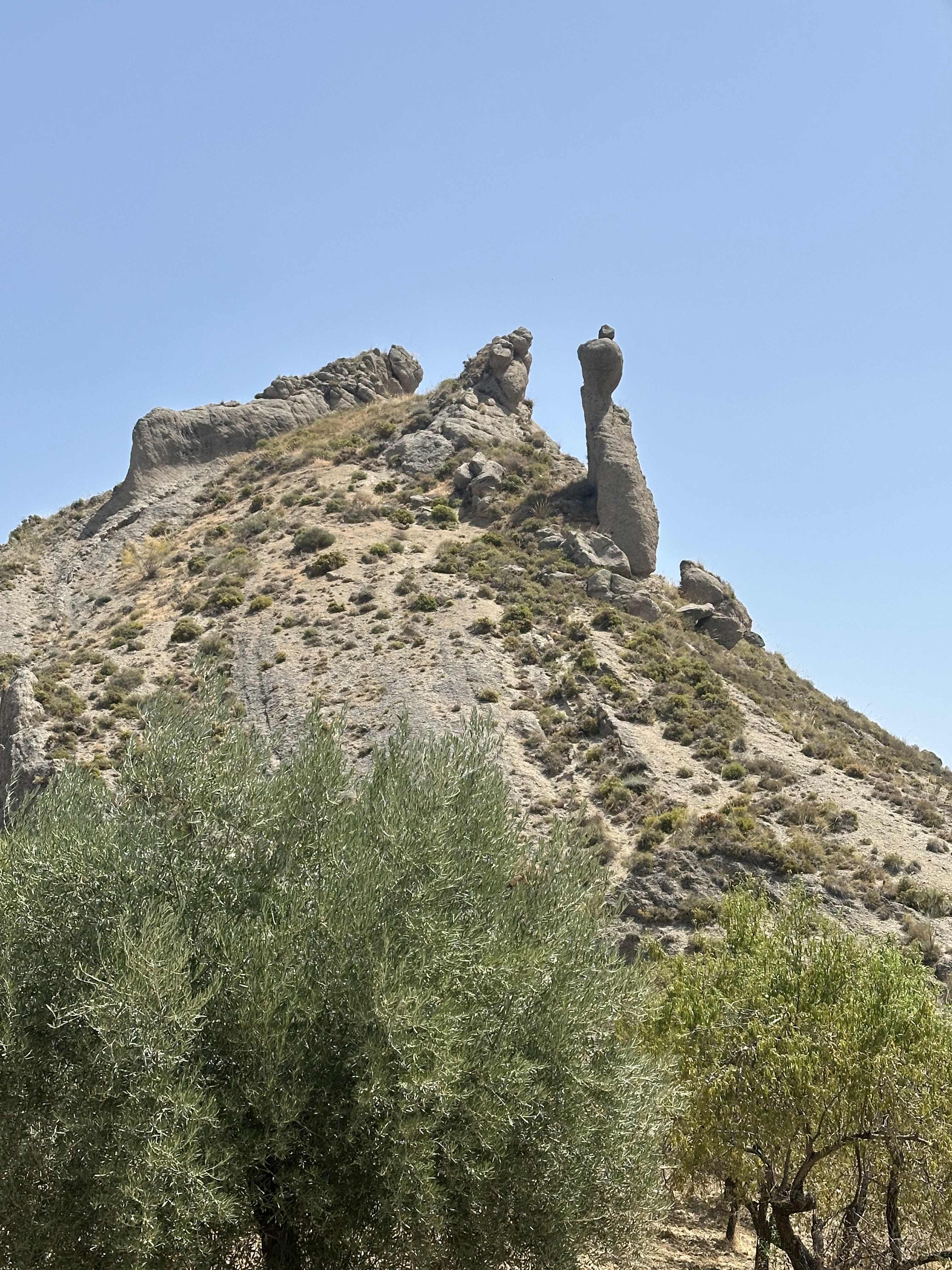 «El fraile es la imagen más emblemática de Beas. Se trata de una roca calcarenita bioclástica que nos indica que la zona fue un mar cálido hace unos 6.000.000 de años. Marca el límite de la depresión de la cuenca de Granada. La erosión física ha modelado la roca hasta darle la característica forma.