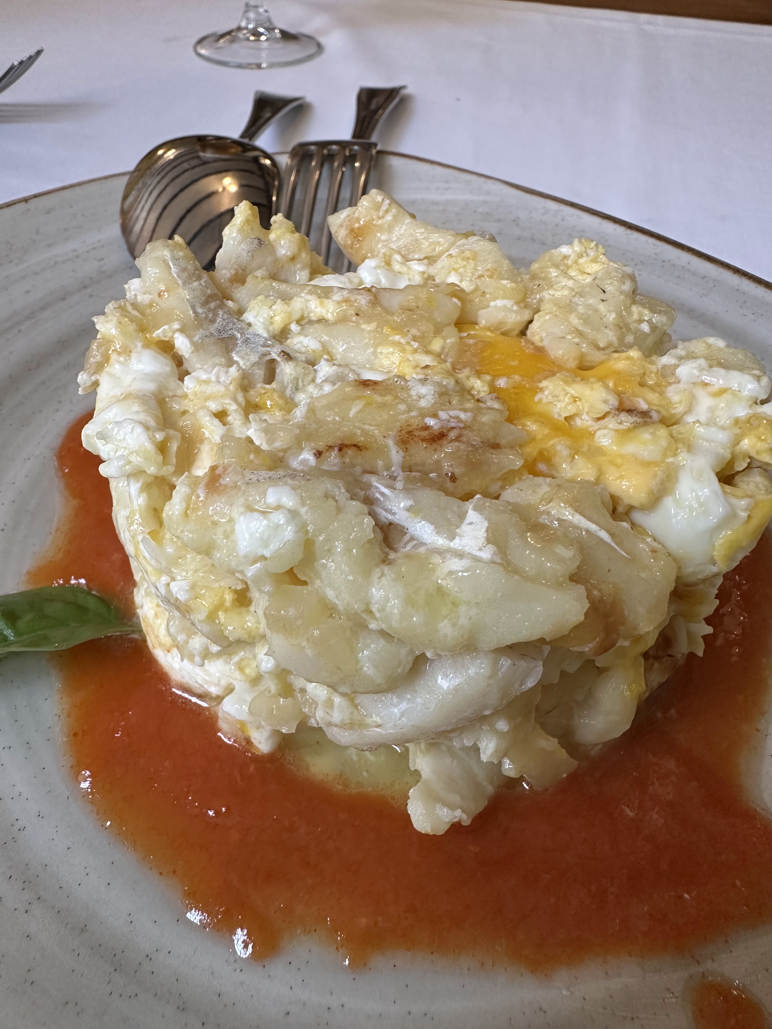 -Revuelto de bacalao. Se notaba éste bastante, nada de desmigao, no. Bueno también.