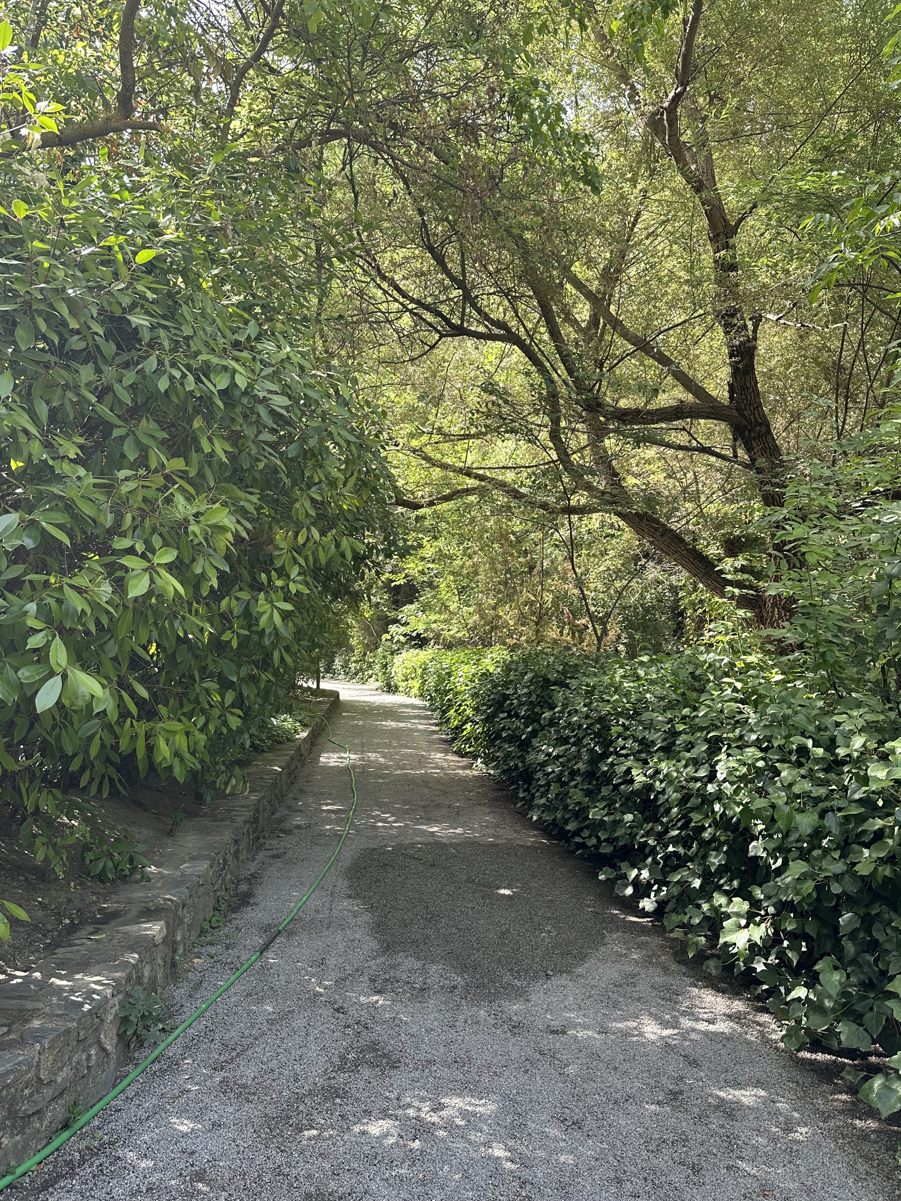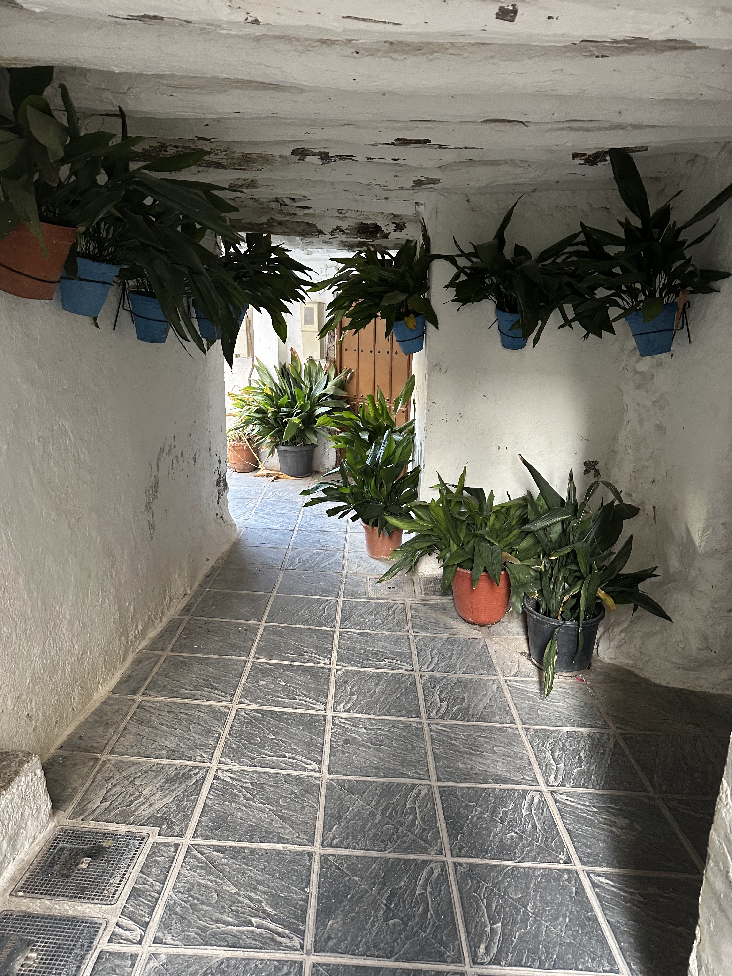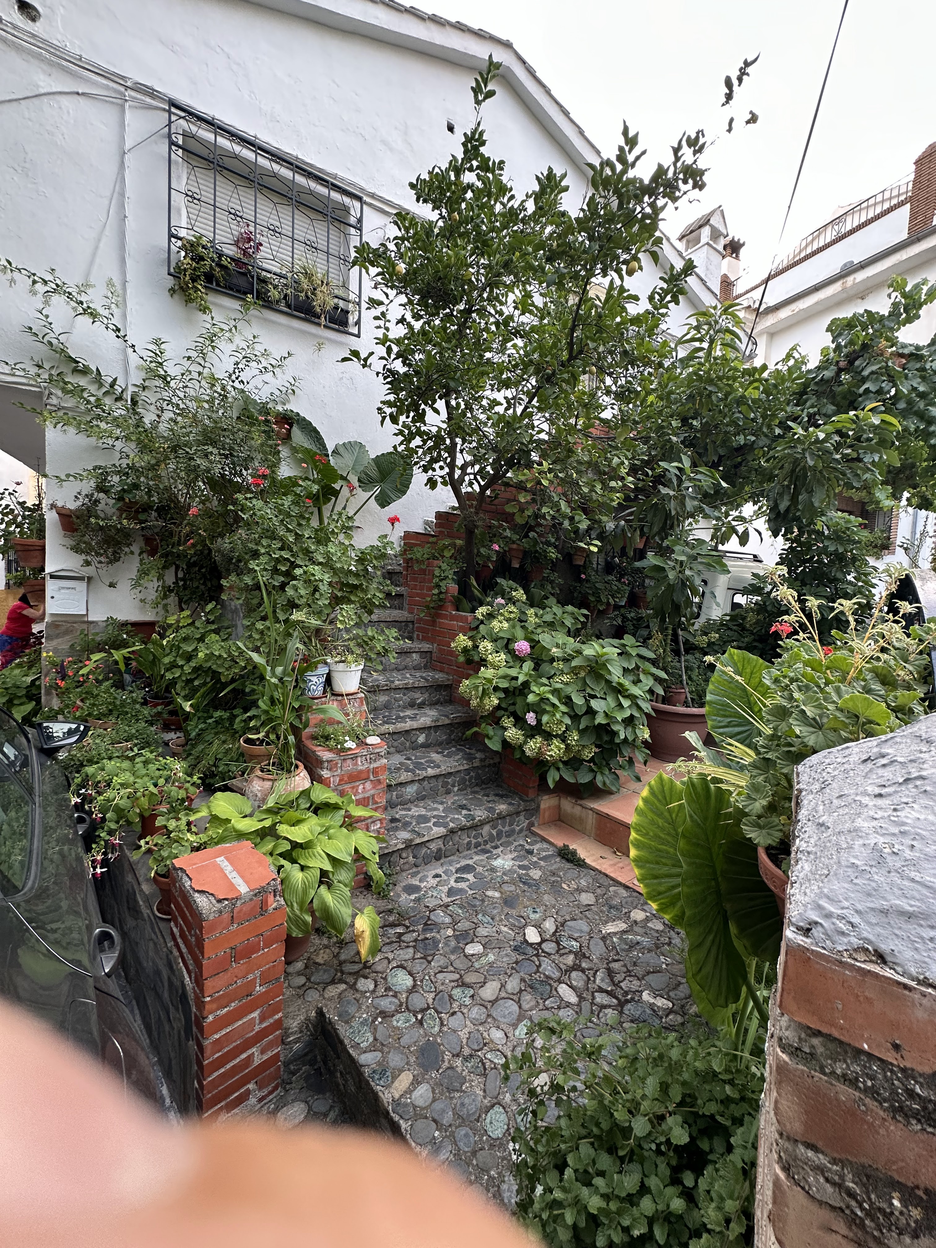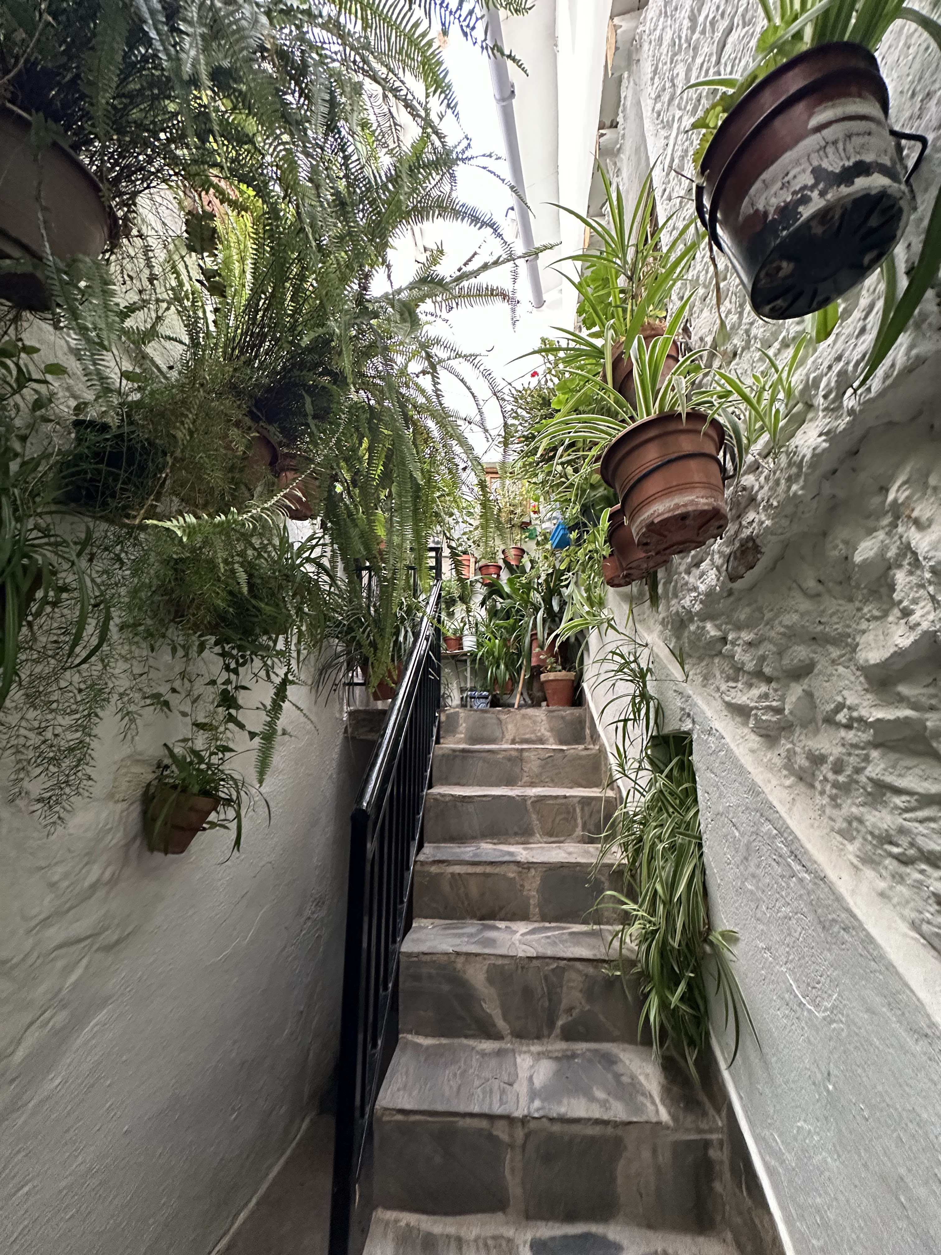 29/30 grados y toca callejear por algunas de las calles de Güejar Sierra. Existe una ruta de las flores, ahora con más plantas que flores, pero igualmente con el atractivo de ver lo bonitas que los vecinos las conservan entre laberínticos pasos de unas a otras.