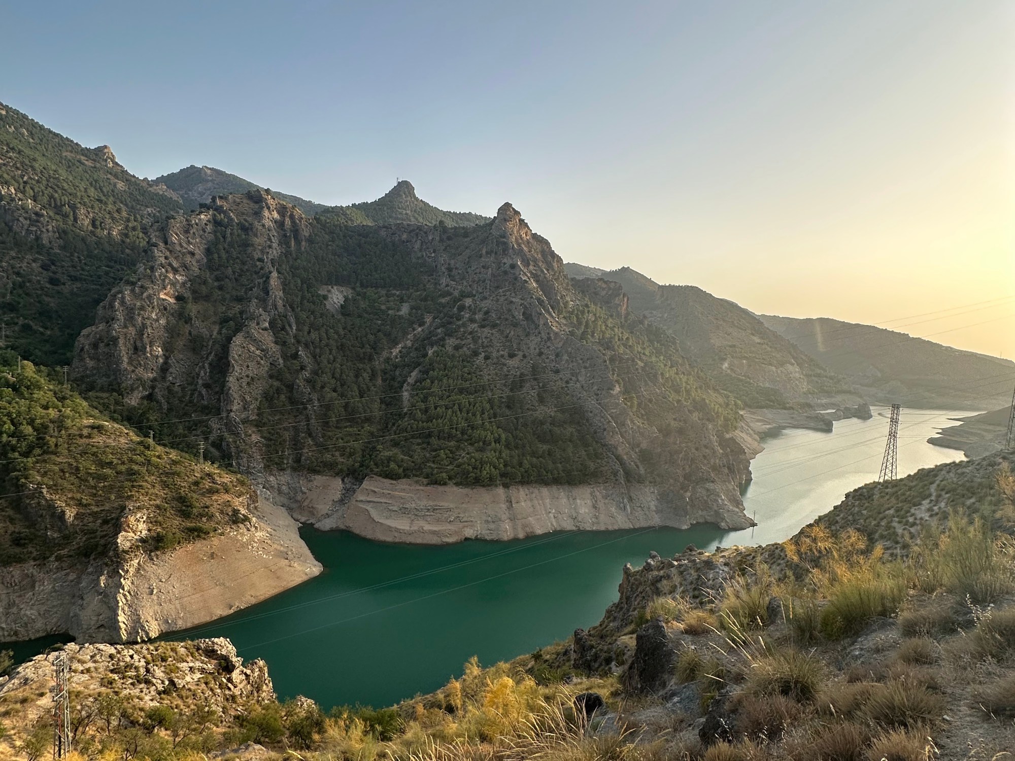 Si seguís un poco más adelante hasta una puerta casi en plena curva, ya en la ctra. GR-3200, podréis ver abajo/izqda. una bonita panorámica del embalse de Canales. (OjO al andar por allí, porque no hay ni arcén, mejor no aventurarse a seguir). La foto de portada pertenece a ésta.
