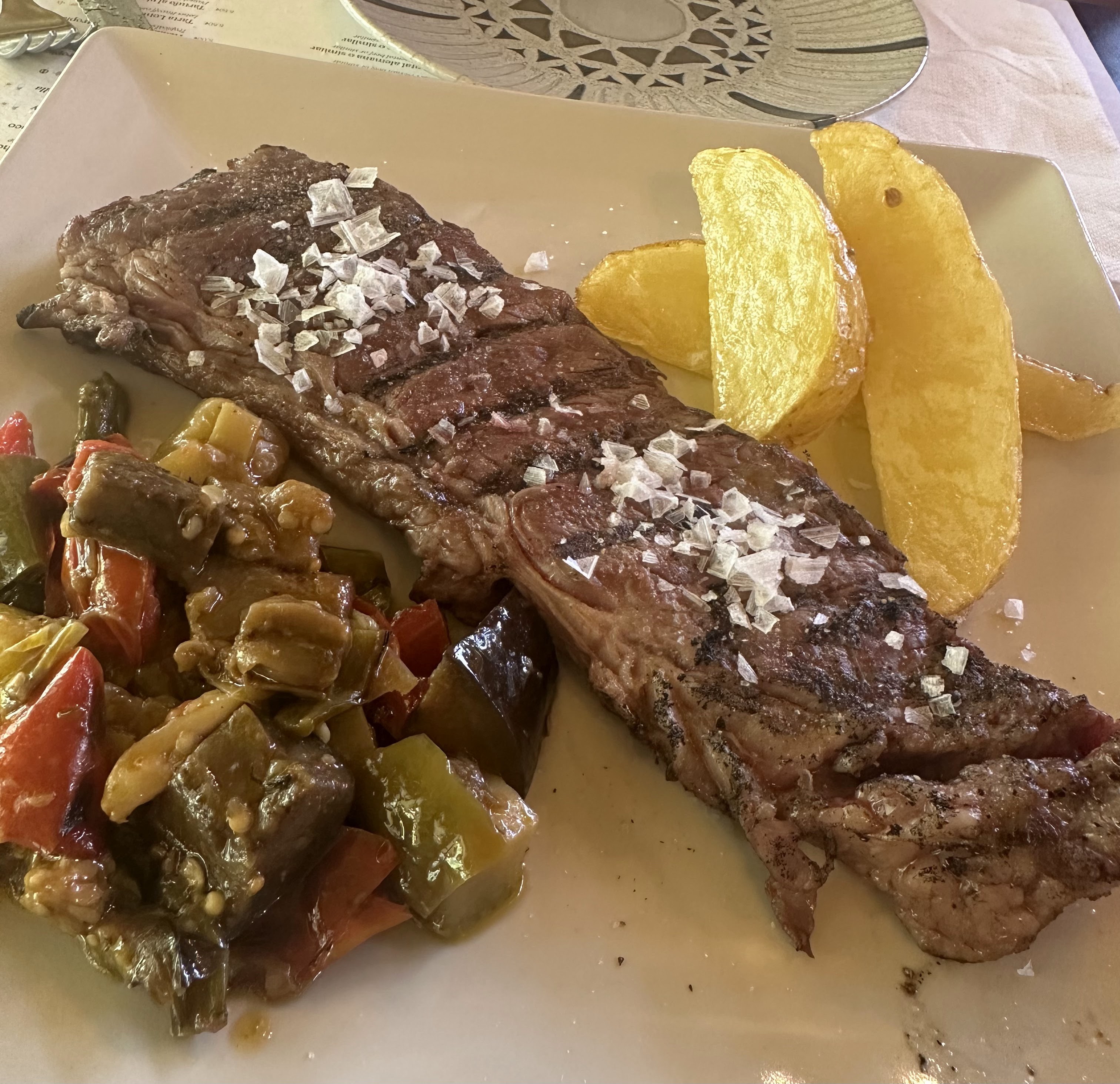 -Pluma salteada. Acompañada con patatas y verduras también salteadas. Buen punto la carne pero algo falto de sabor, creo que de sal.