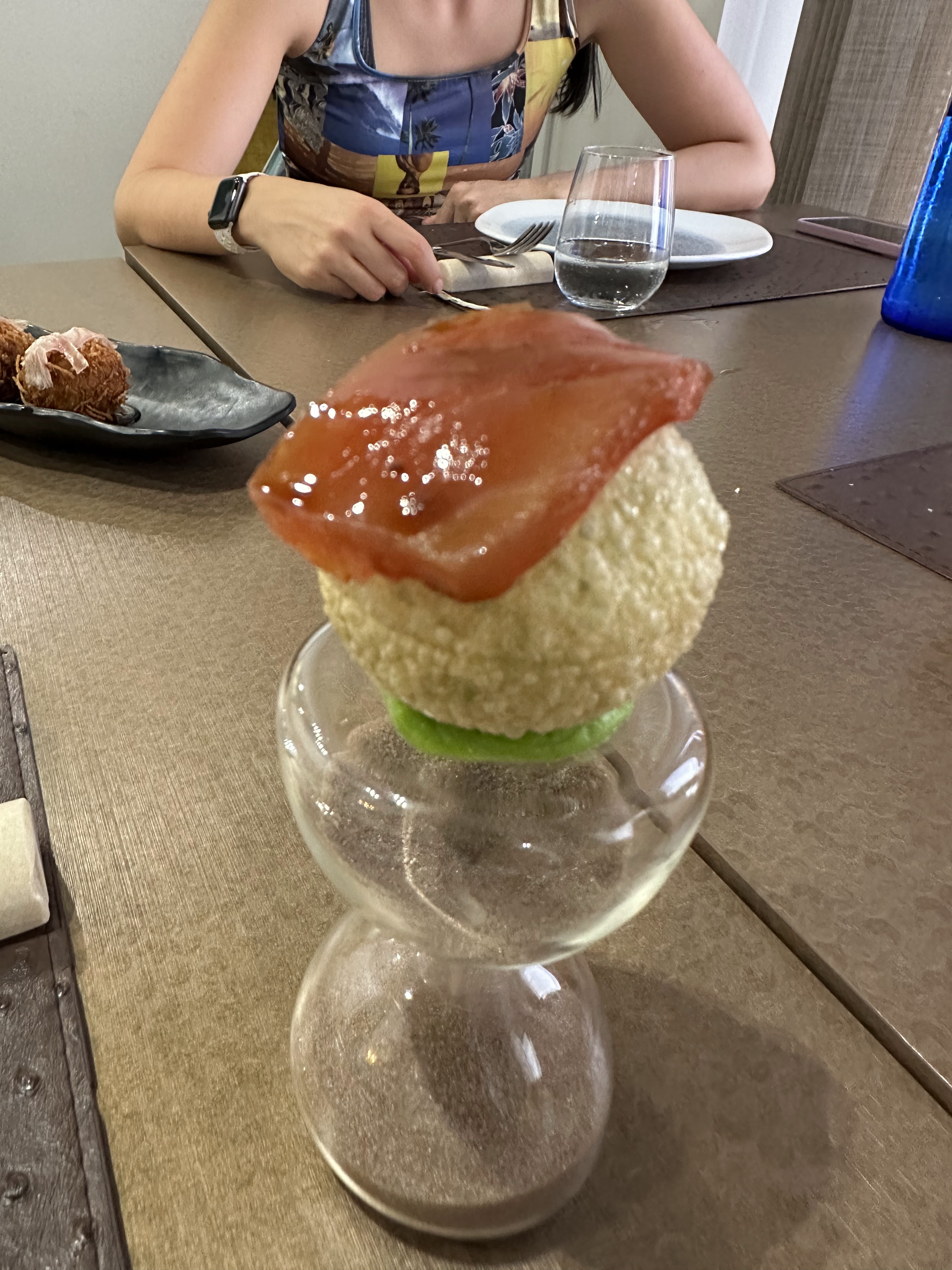 -Tomate con melva y aguacate. Refrescante de buena combinación, y el tomate a pesar de verlo normal, tenía sabor.