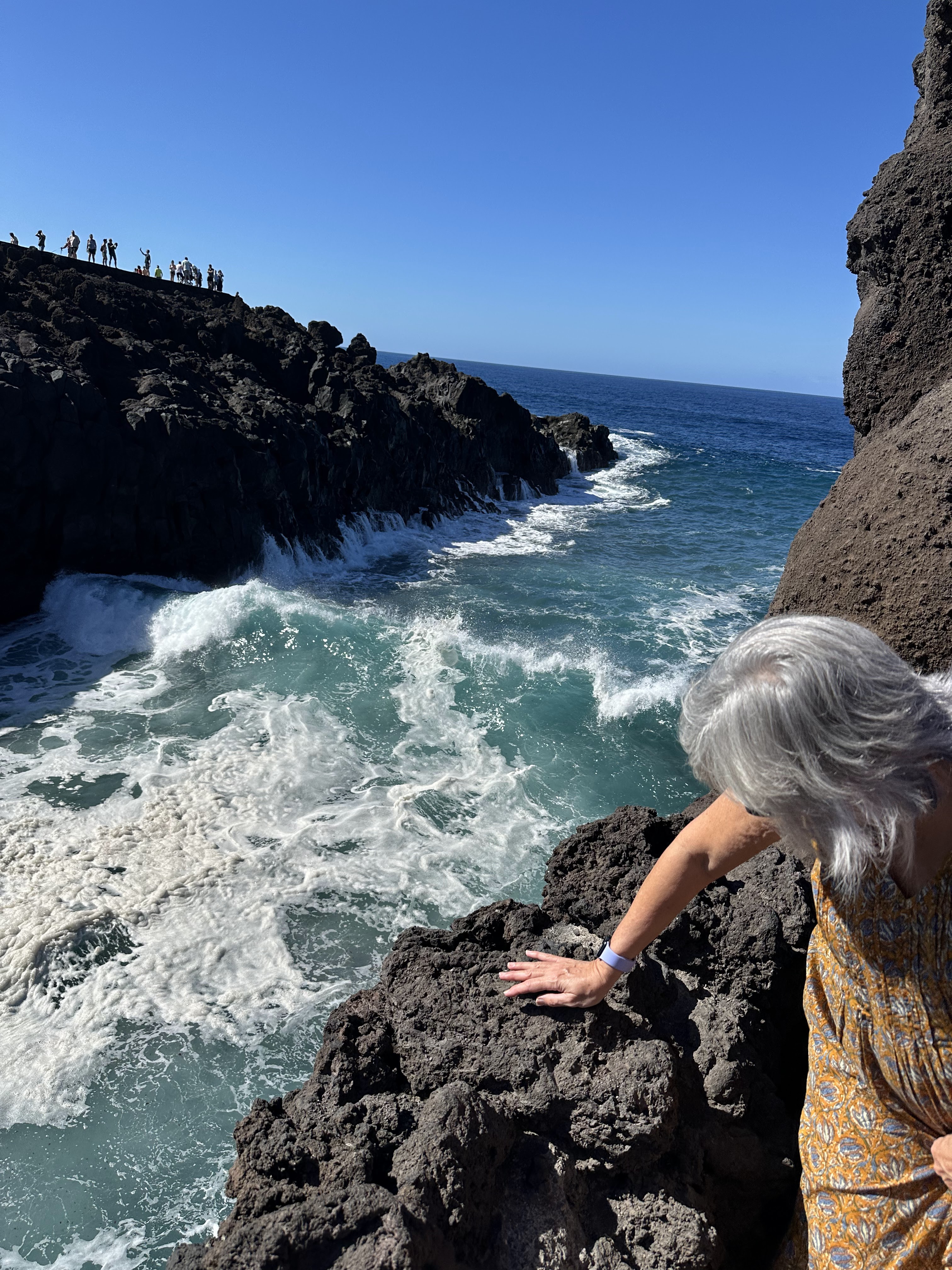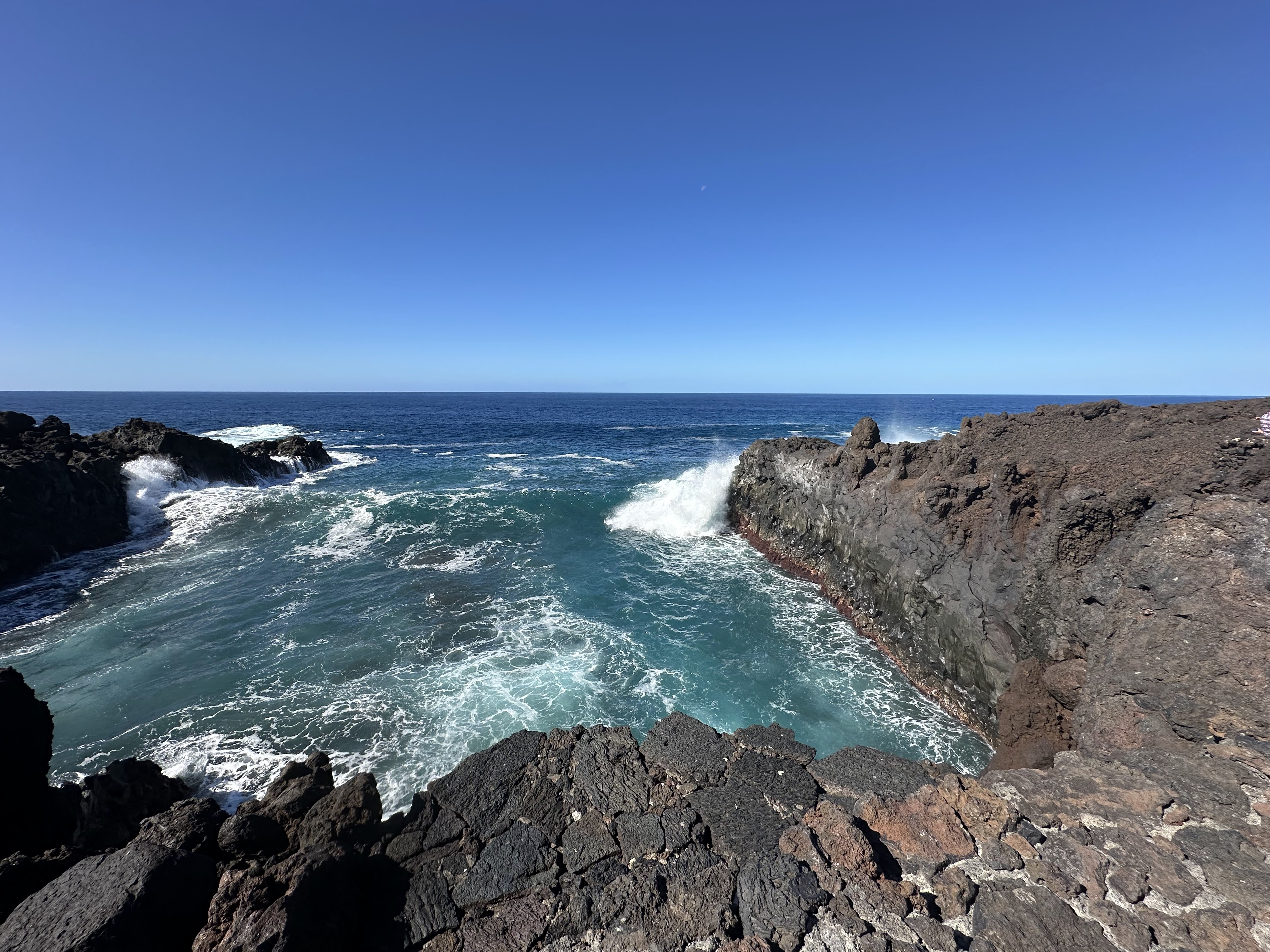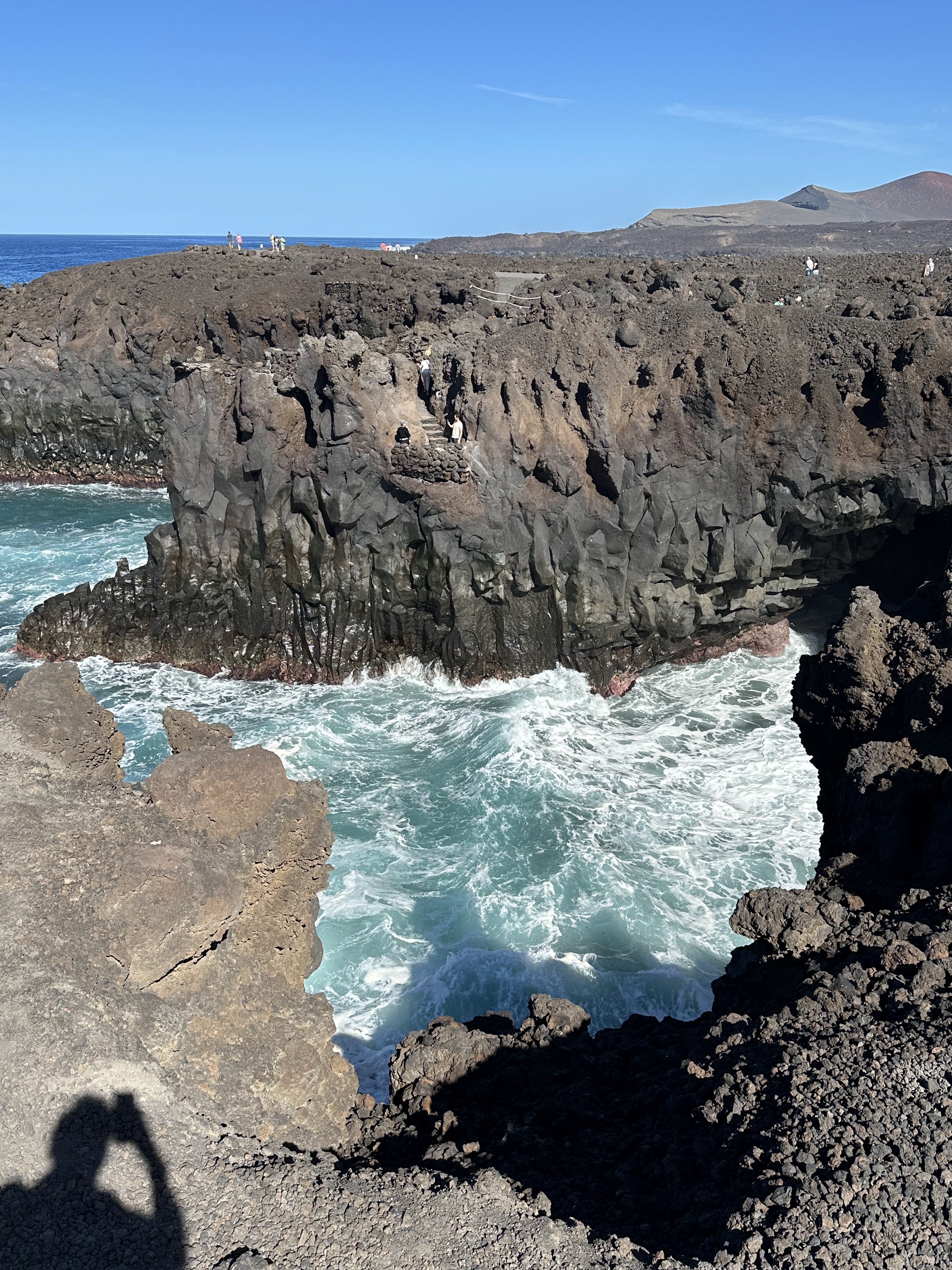 Lástima no pueda subir videos para apreciar realmente como rompían las olas (en los Hervideros), porque era impresionante. Aunque si os fijáis en las paredes mojadas, etc. y la espuma blanca del mar, se puede imaginar. Luego más abajo en el Golfo, también rompían y si pude coger alguna foto que se viera mejor.