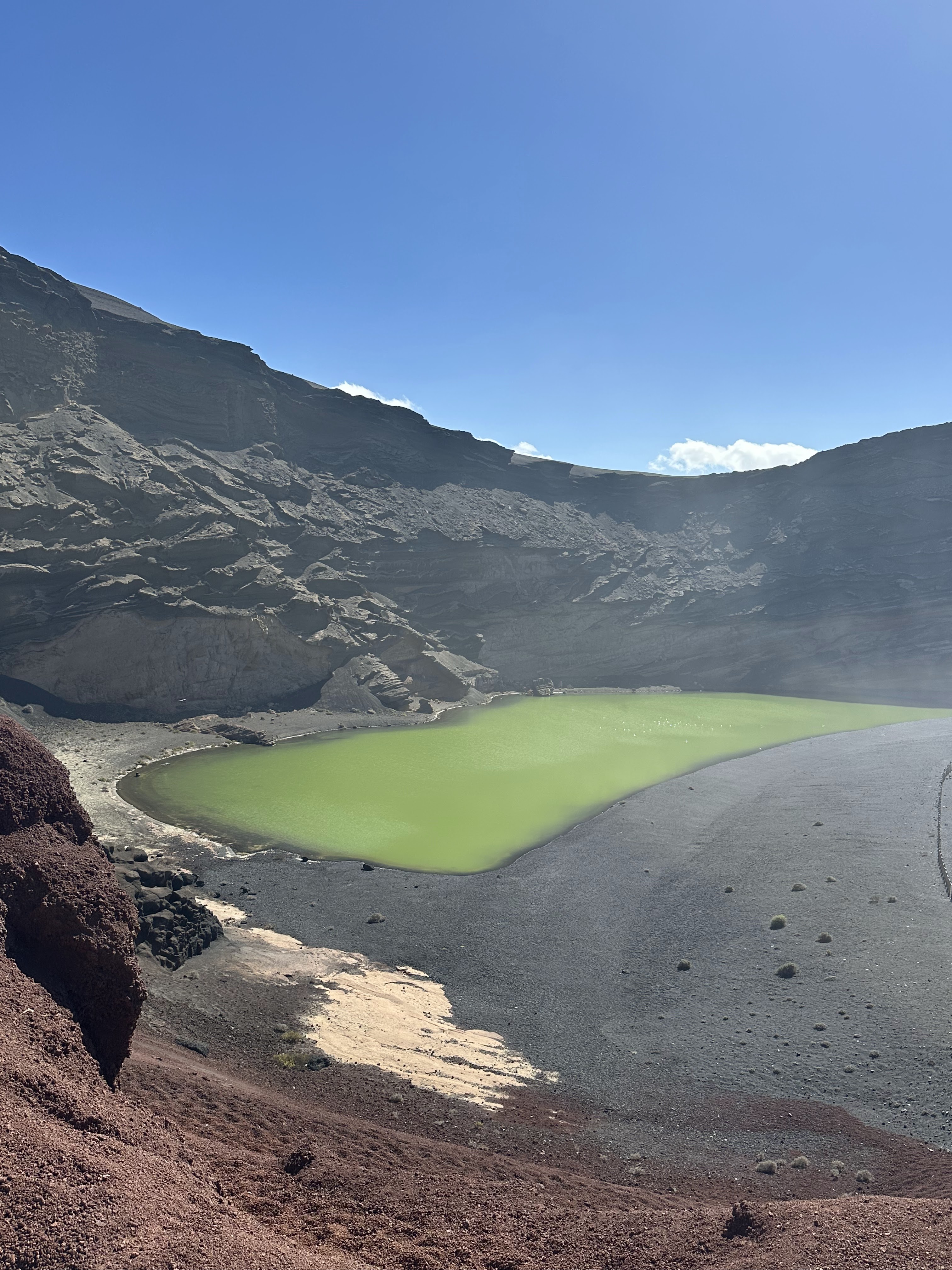 «Ubicada cerca del pueblo de El Golfo en Lanzarote, es una playa impresionante y menos conocida que ofrece un entorno natural espectacular. Con su arena negra volcánica y su ubicación junto a la Montaña Bermeja, esta playa es ideal para aquellos que buscan una experiencia auténtica y serena en la isla.