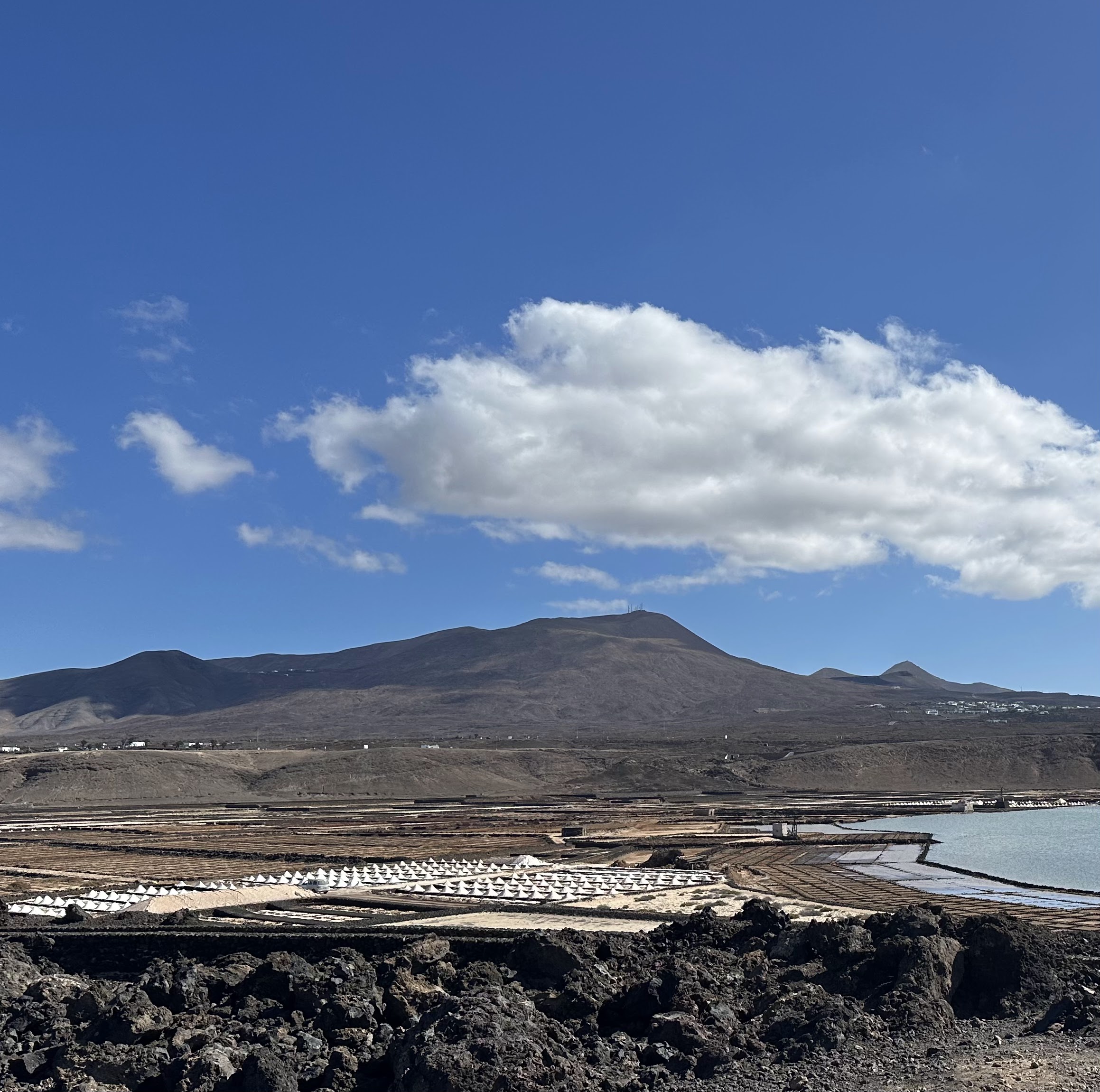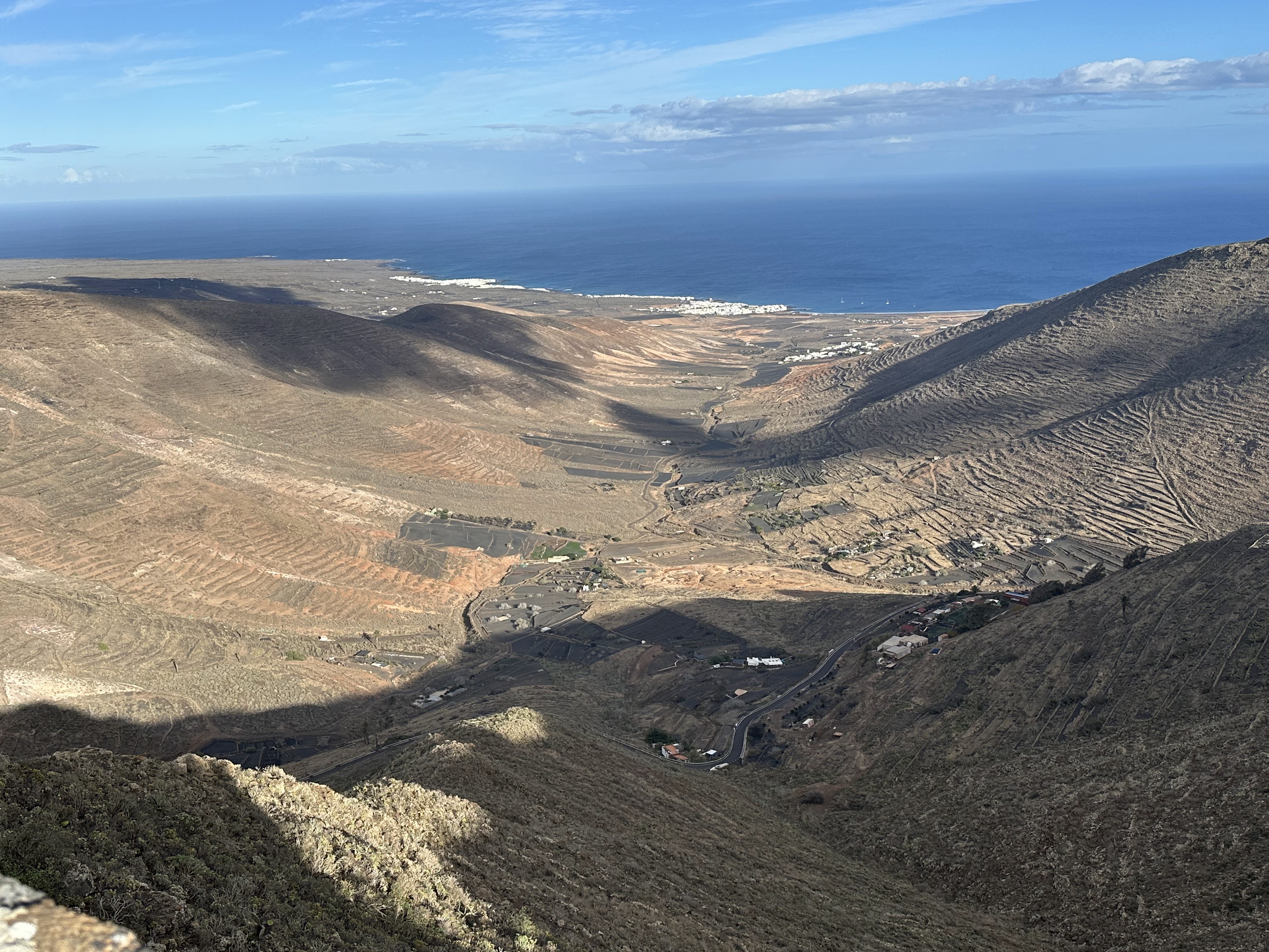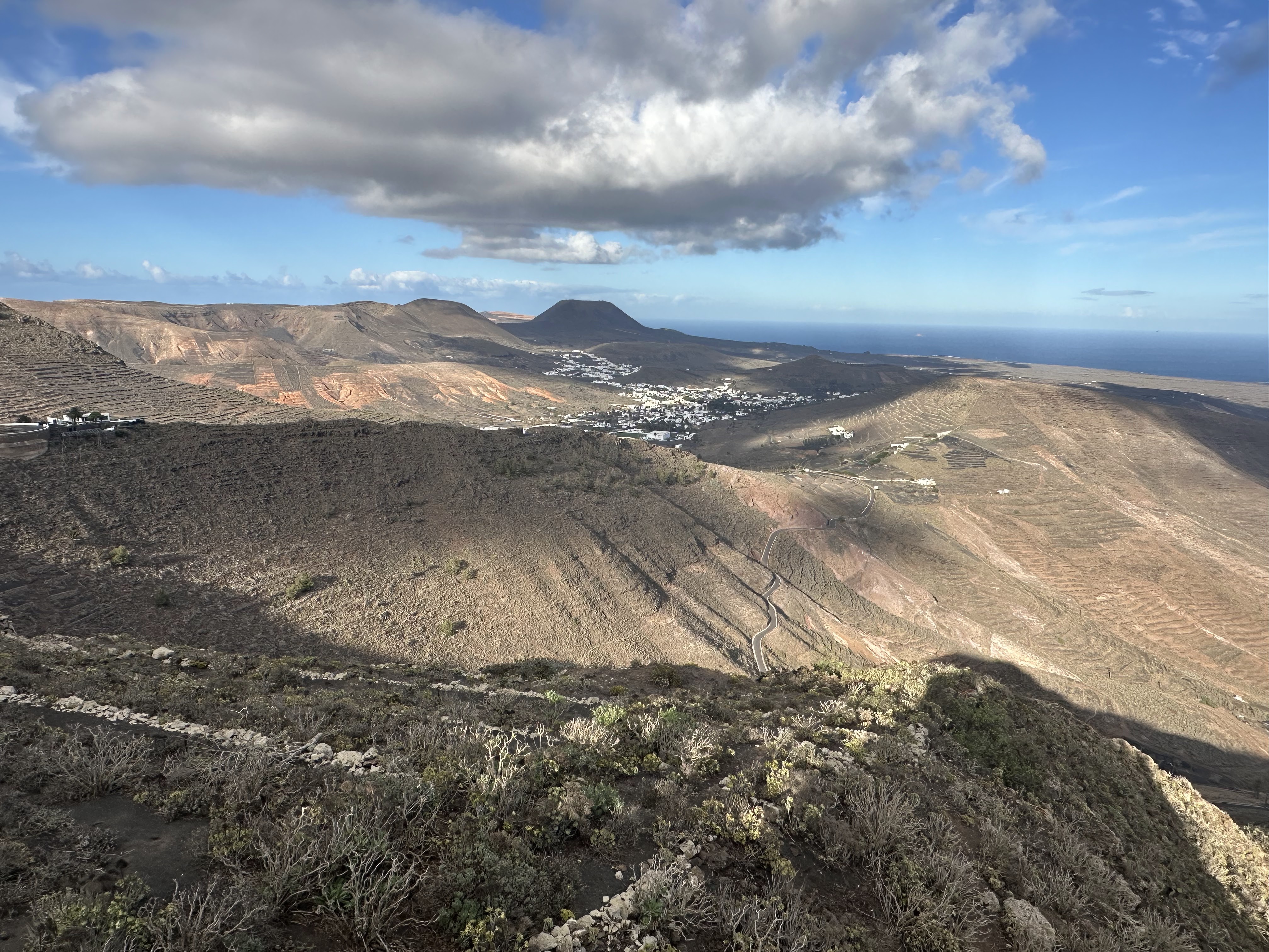 «Situado a 557 metros sobre el nivel del mar, es un balcón natural que ofrece una de las vistas más espectaculares del norte de Lanzarote. Desde este enclave privilegiado, se domina el pintoresco pueblo de Haría y el emblemático Valle de las 10.000 Palmeras, un paisaje verde y frondoso que contrasta con la aridez volcánica de la isla. Hacia el este, la panorámica se extiende sobre el Valle de Temisa, el encantador pueblo de Tabayesco y la costa oriental de Lanzarote, abarcando las localidades de Arrieta y Mala, cuyos perfiles se dibujan sobre el azul del océano Atlántico.»