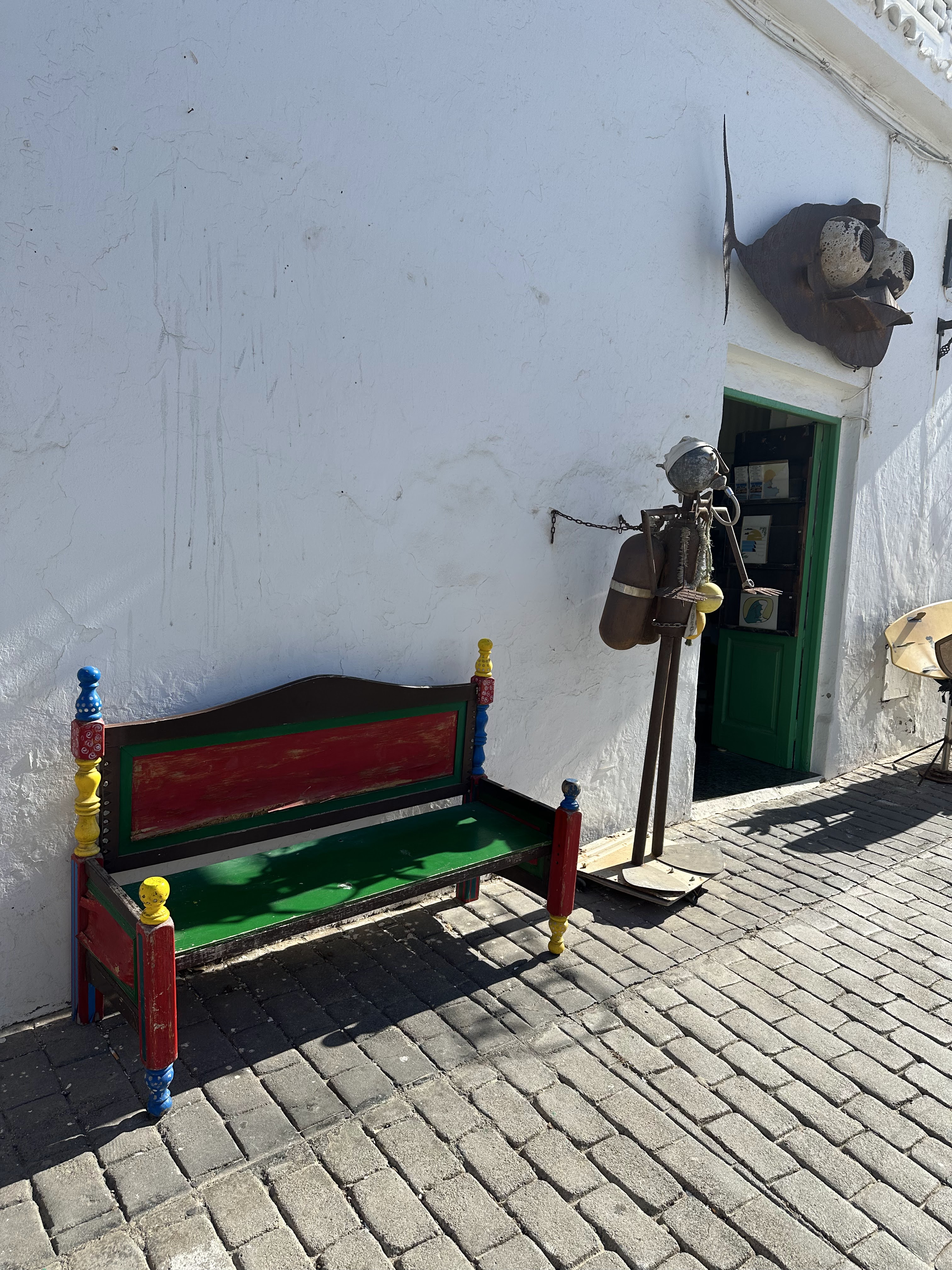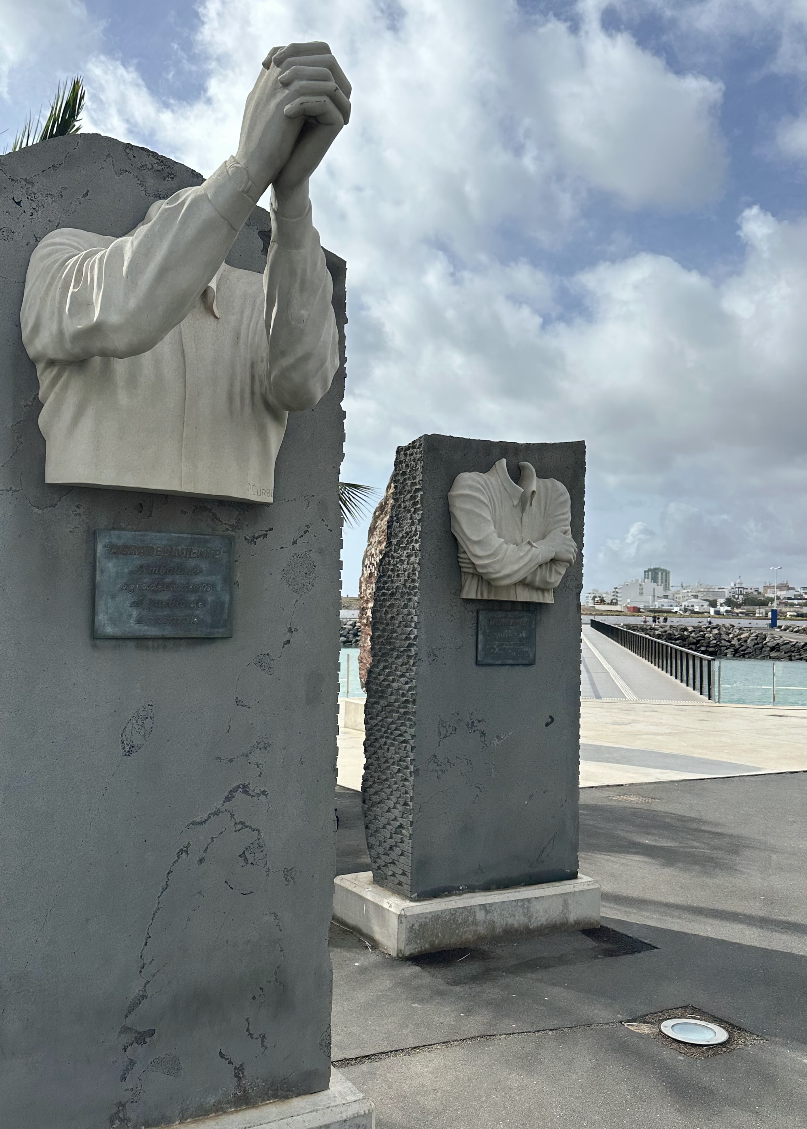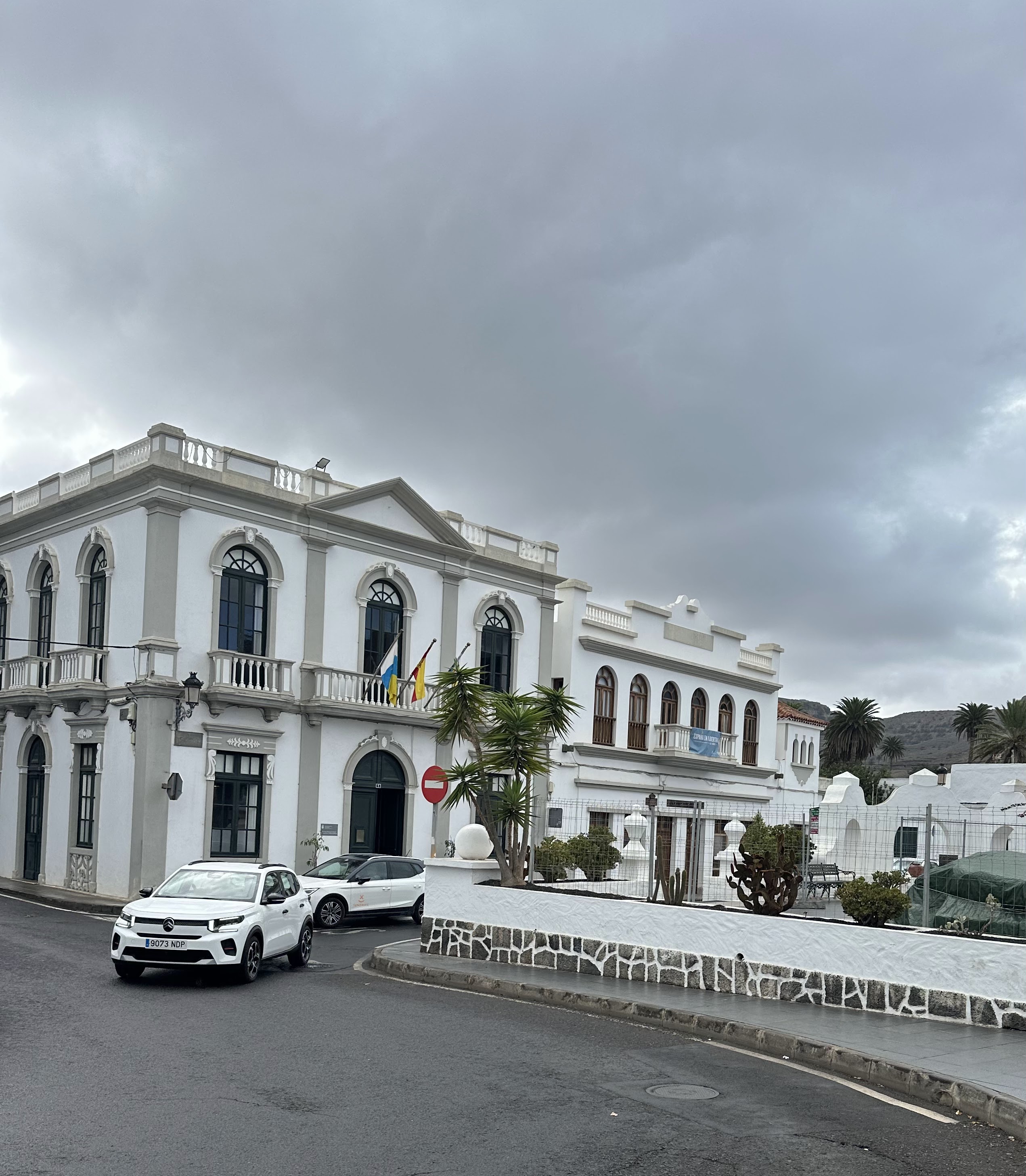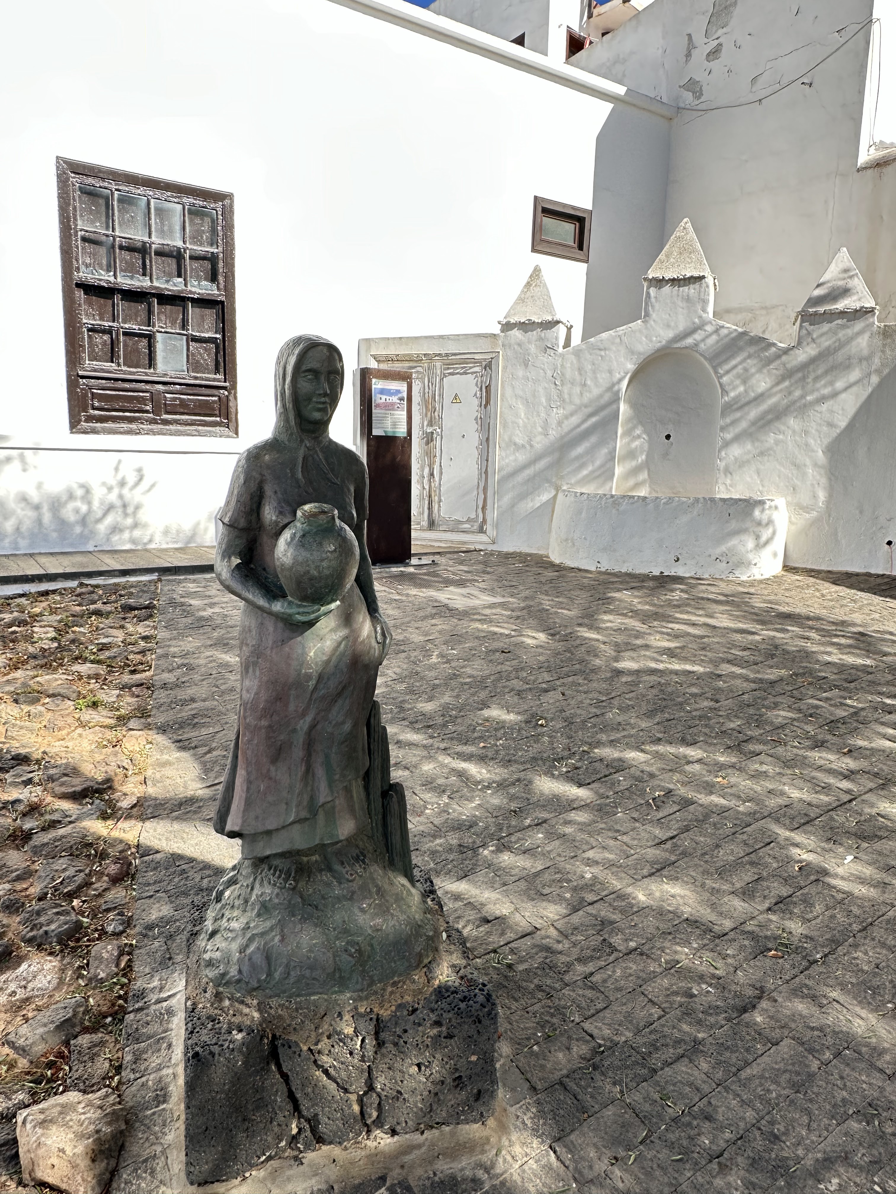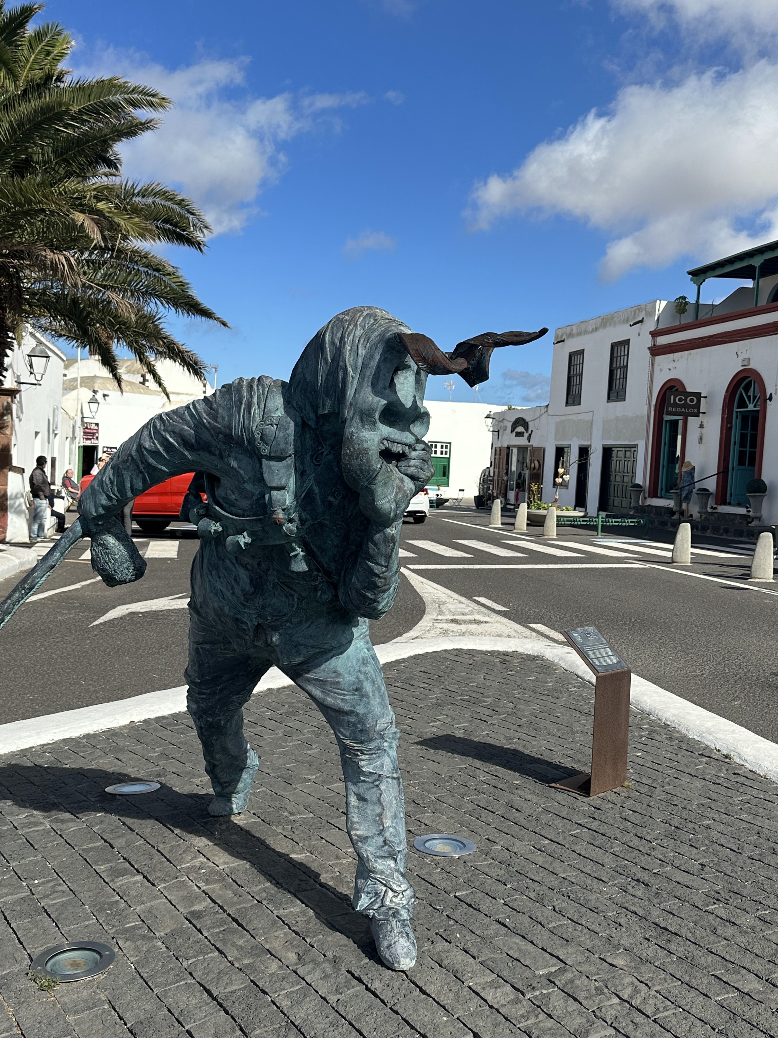 El pueblo decían merecía la pena un pequeño pateo por su zona centro y/o ver la Casa-Museo de César Manrique, pero no hubo tiempo nada más que tirar 2/3 fotos al Ayto., a dicha plaza y a una escultura El Mudo de Haría-Ladislao Rguez. Bonilla; que por cierto me saluda desde su casa y me dice que el de esa estatua es él.
